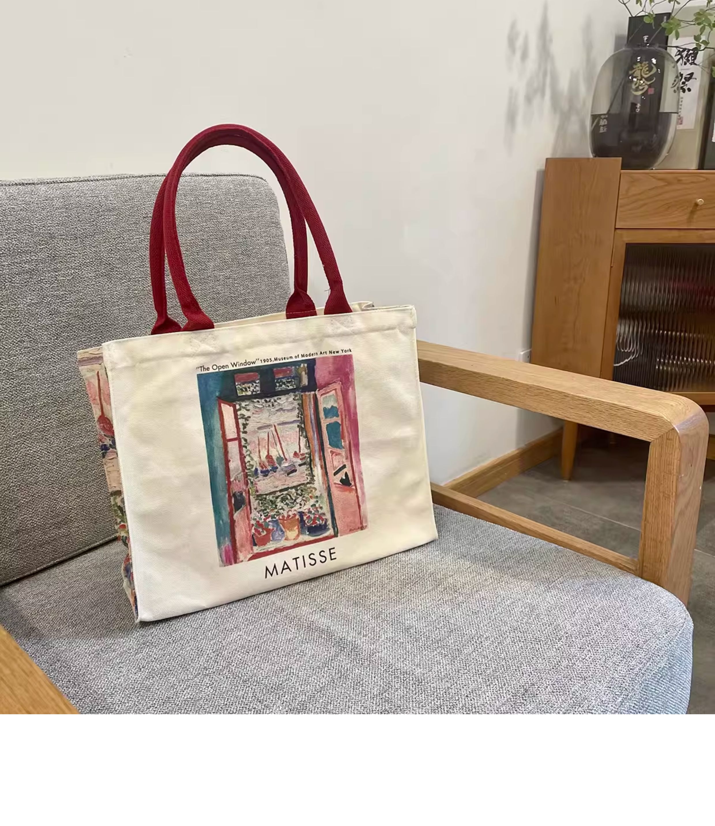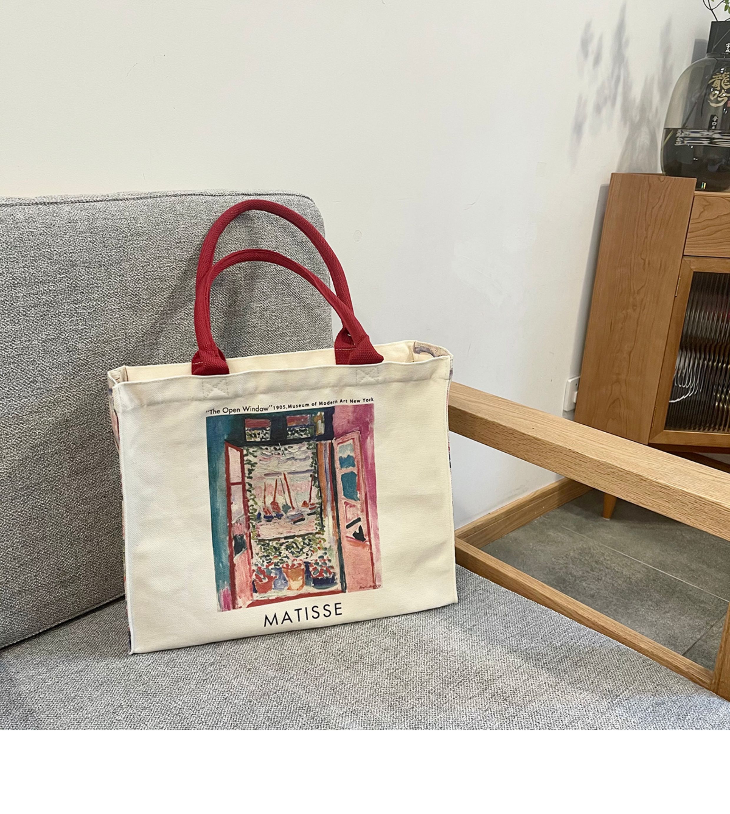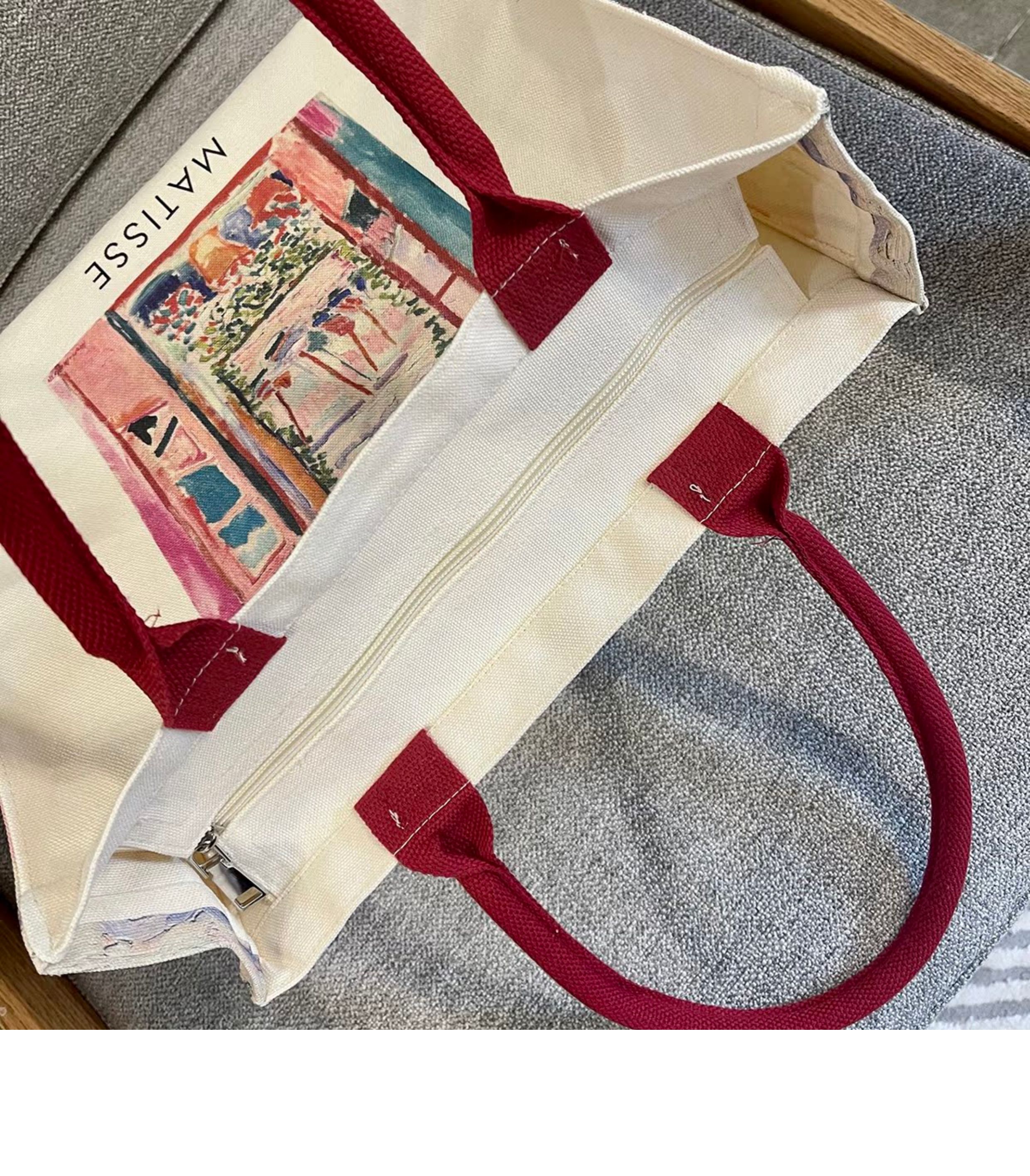 Matisse's "Open Window" Oil Painting Canvas Bag, Shoulder Zipper Shopping Bag, Casual and Personalized Computer Bag