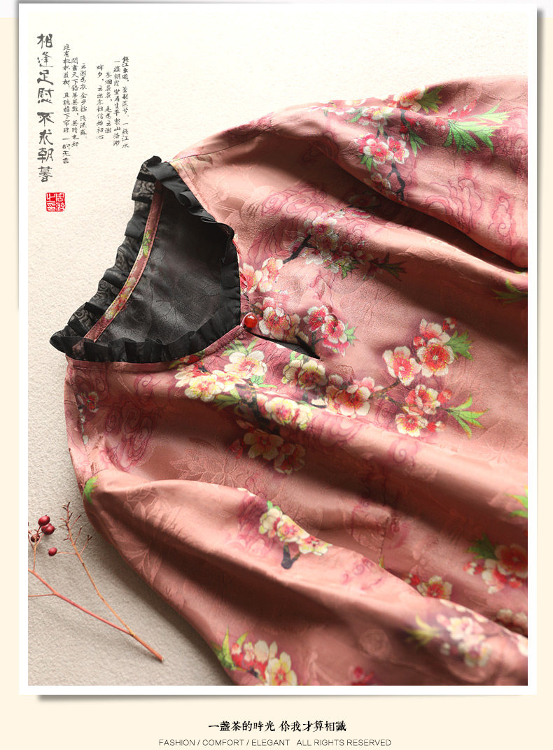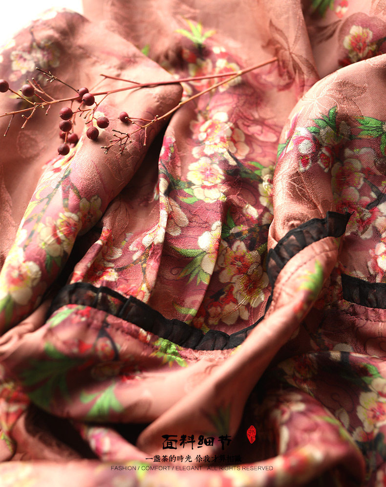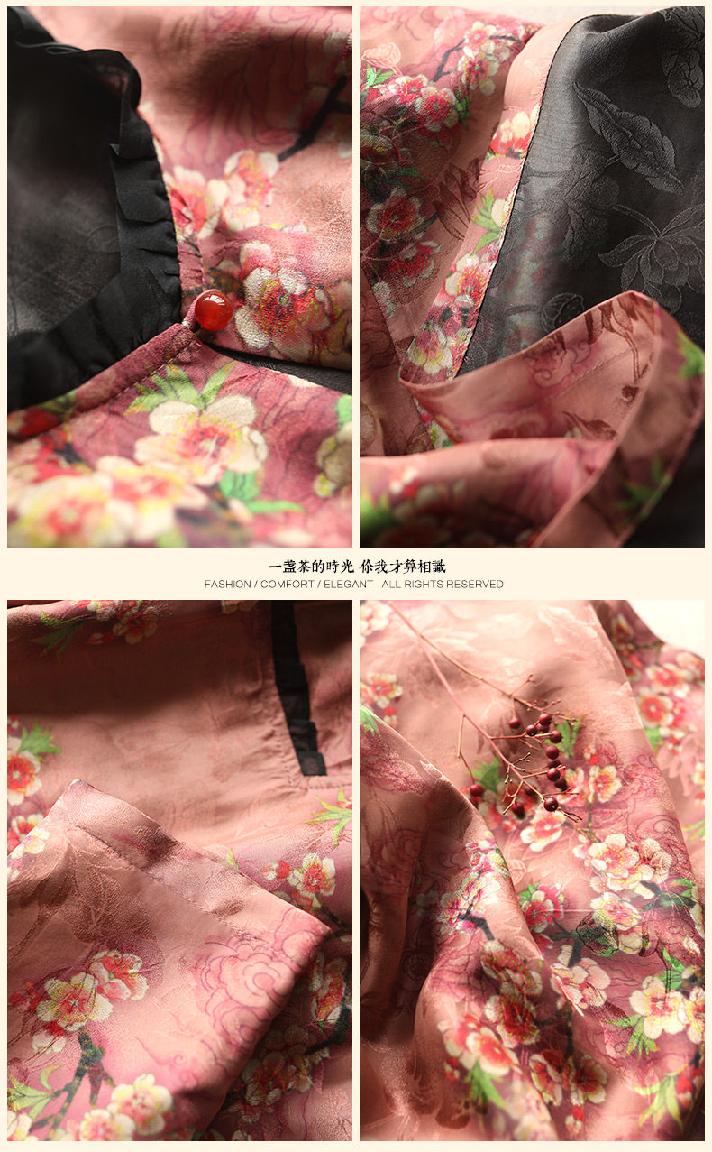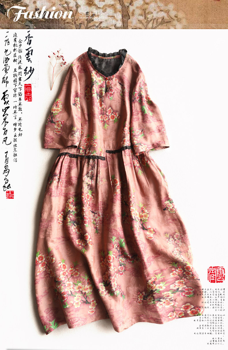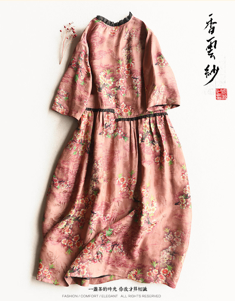 Yunshu Original Interwoven Jacquard Xiangyun Silk Mid-Sleeve Dress Printed A-Line Dress Pullover Loose A-Line Dress for Women Summer