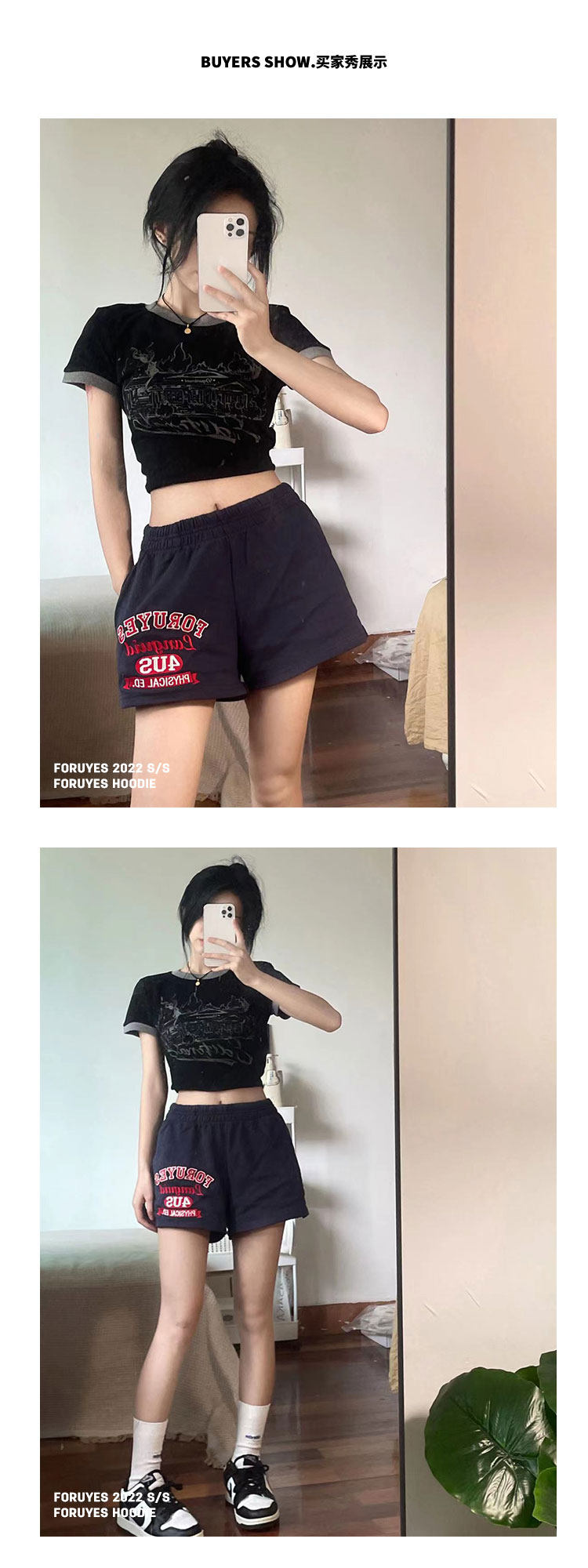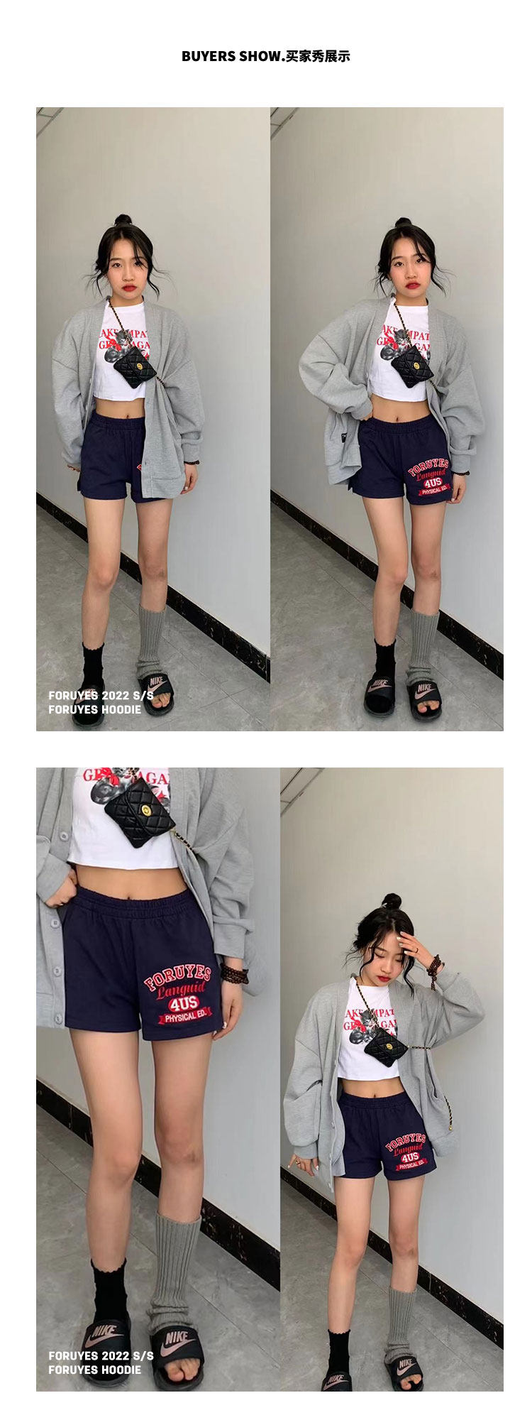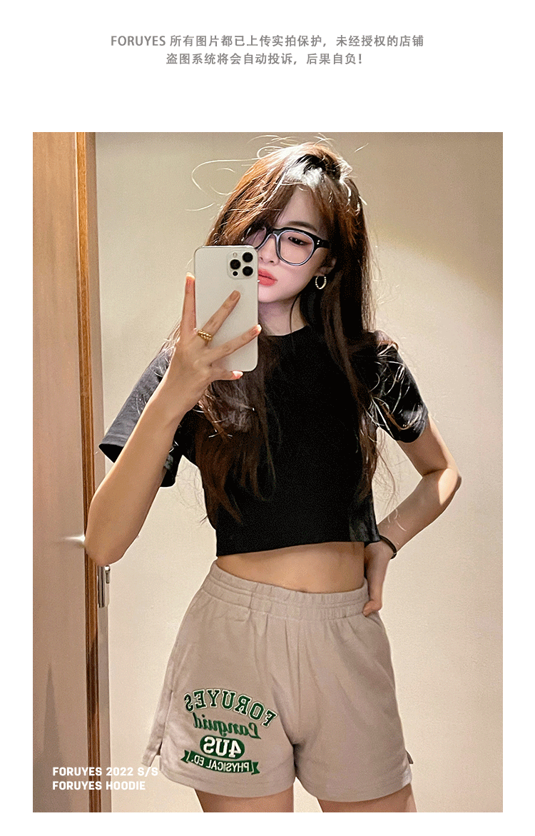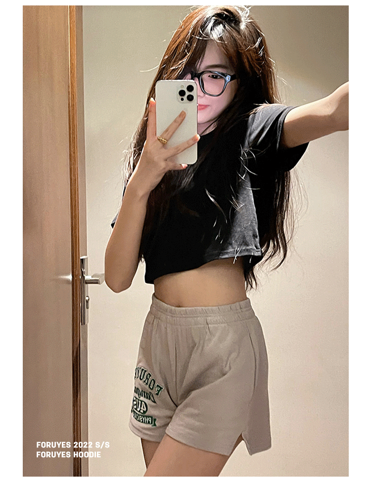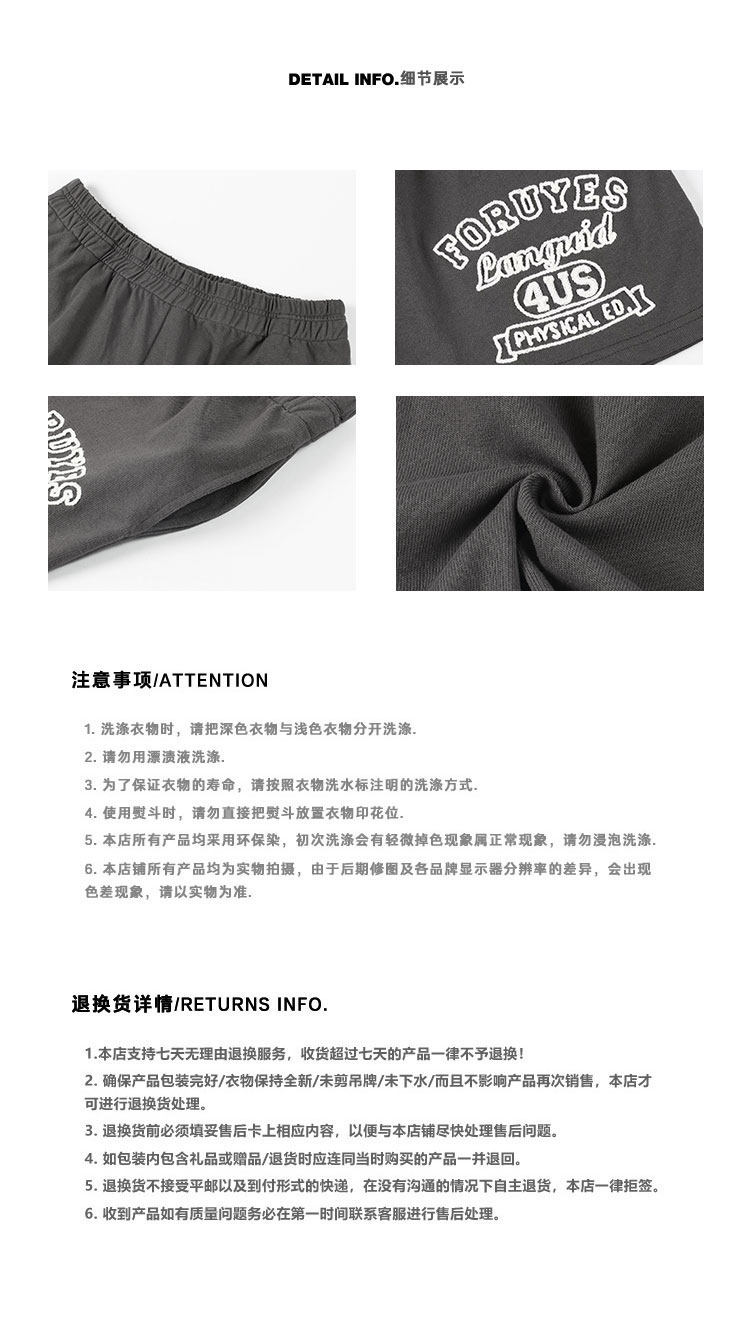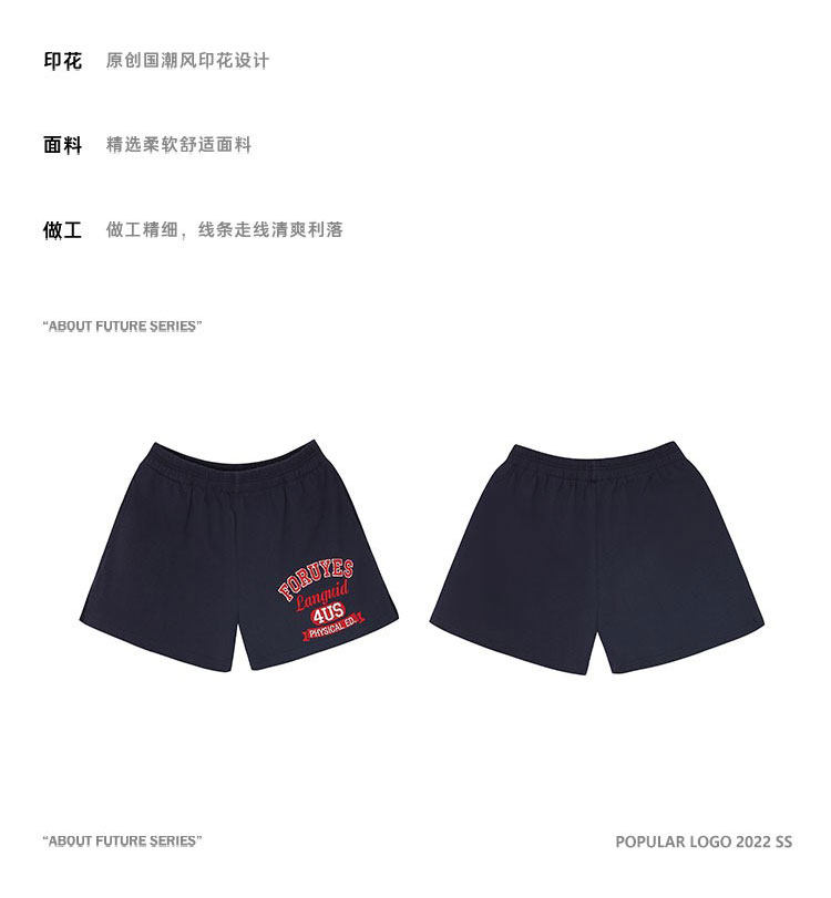 Foruyes Official Store American Retro Campus Style Slogan Logo National Trend Versatile Slim Casual Shorts