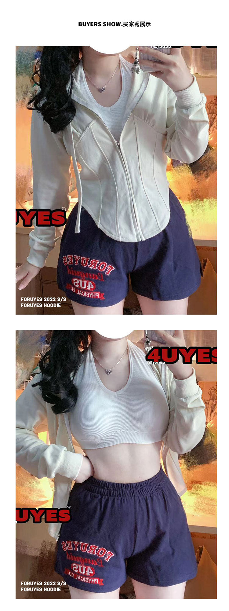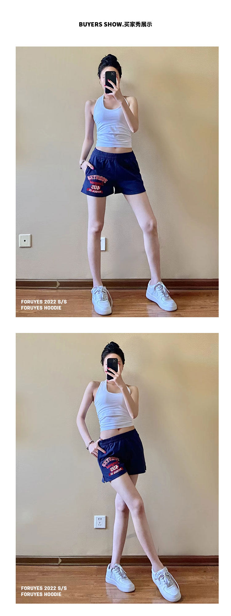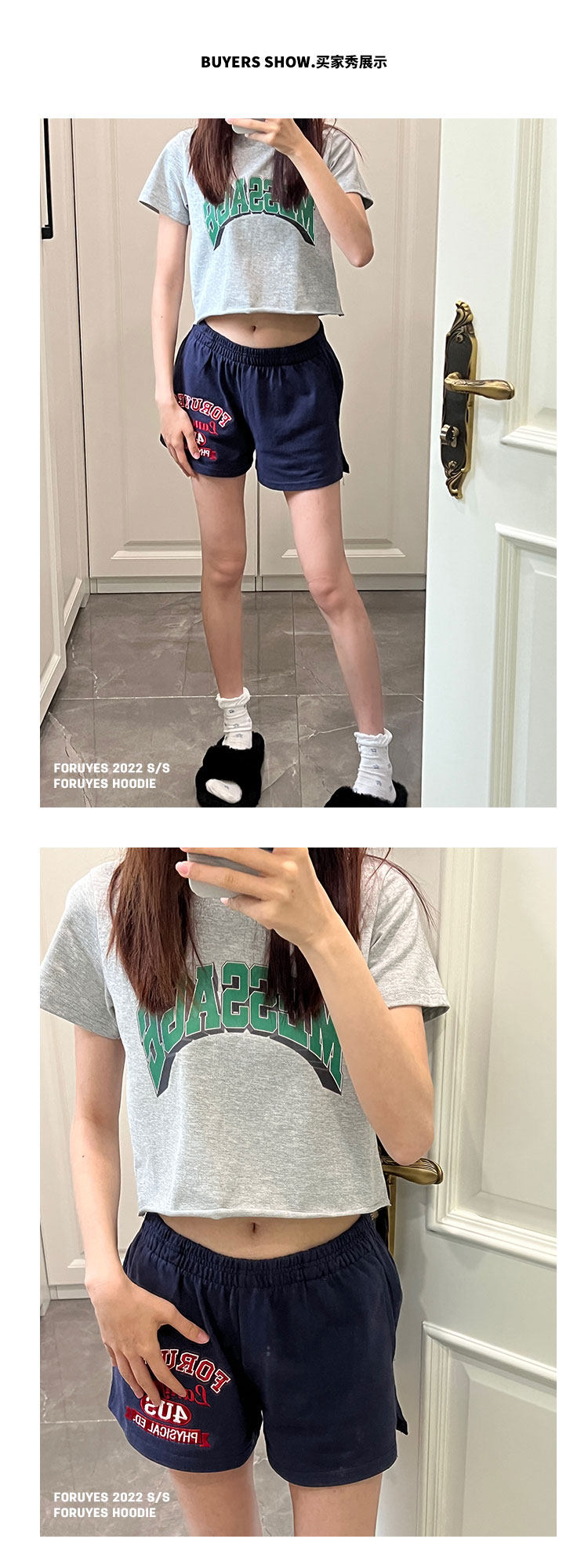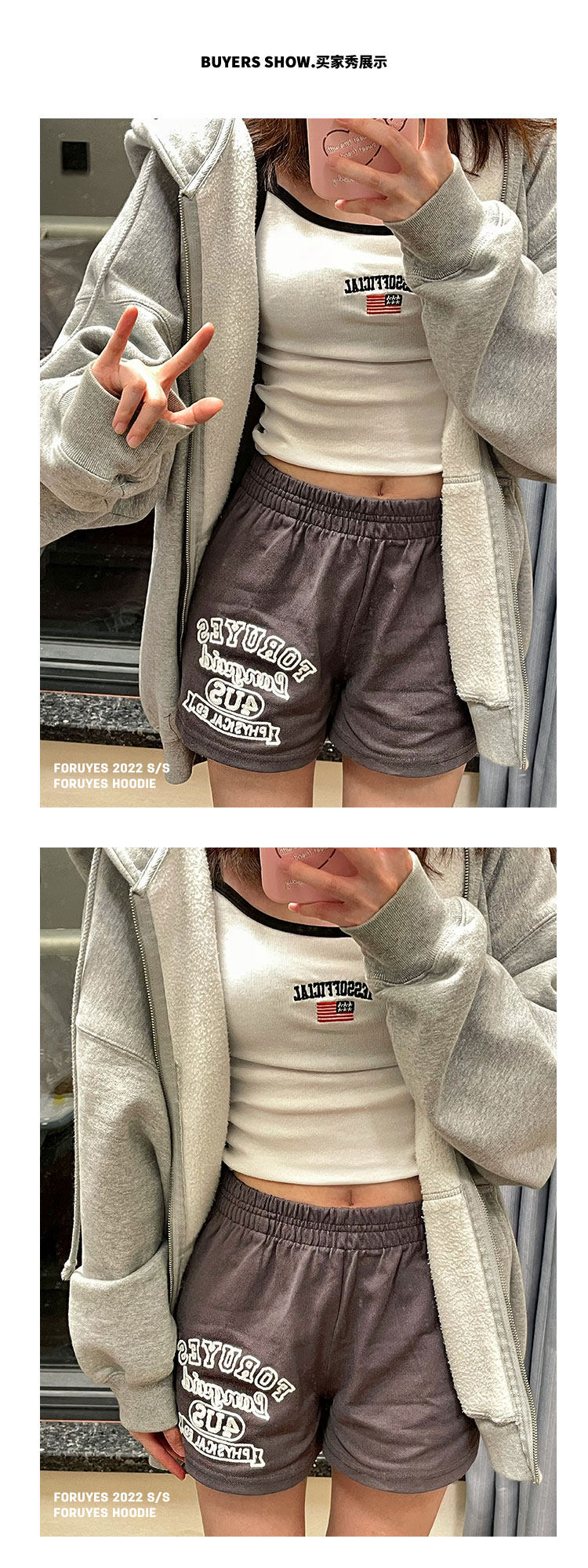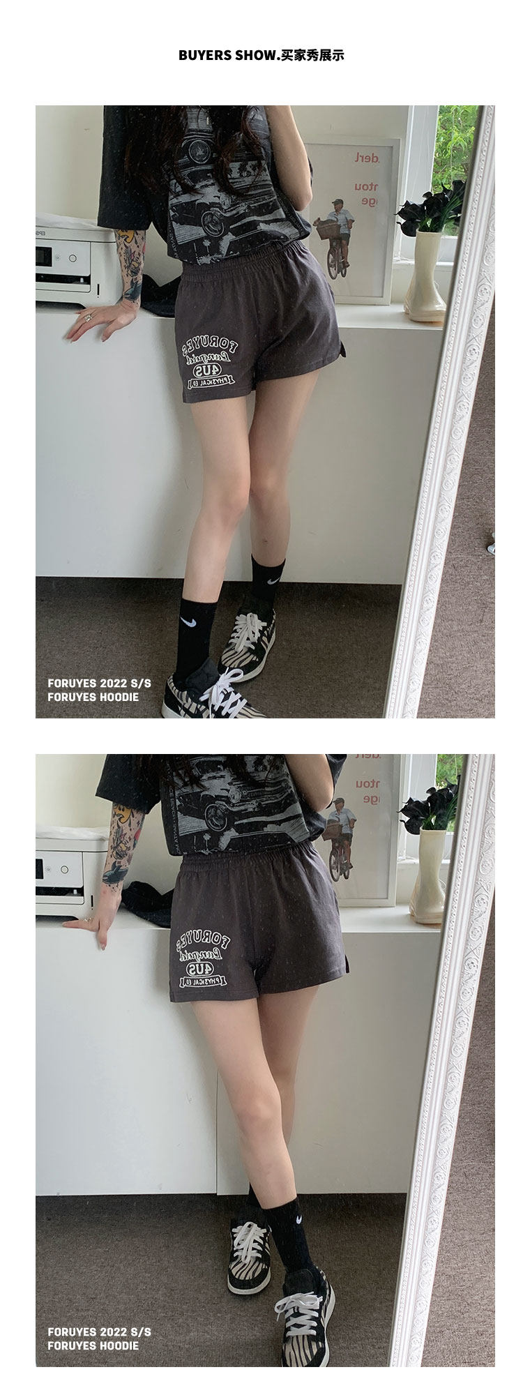 Foruyes Official Store American Retro Campus Style Slogan Logo National Trend Versatile Slim Casual Shorts