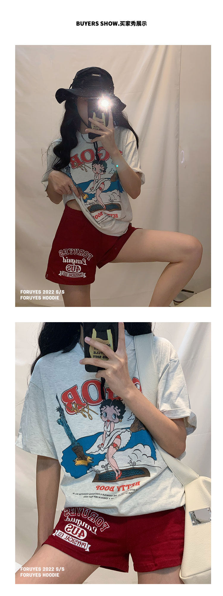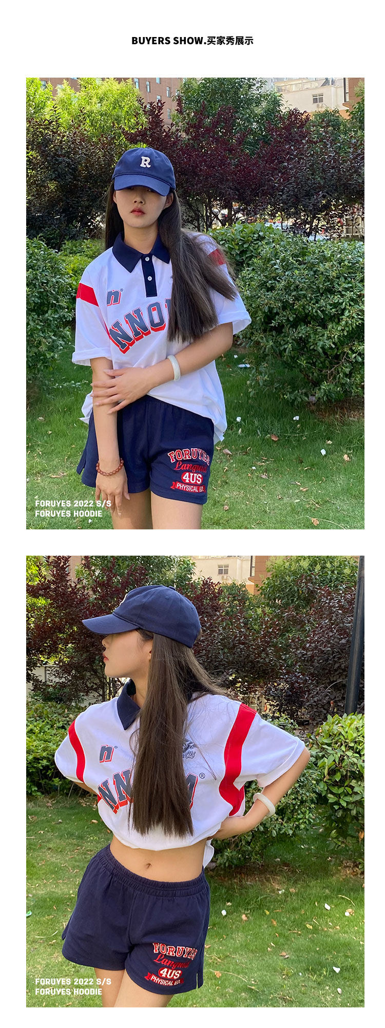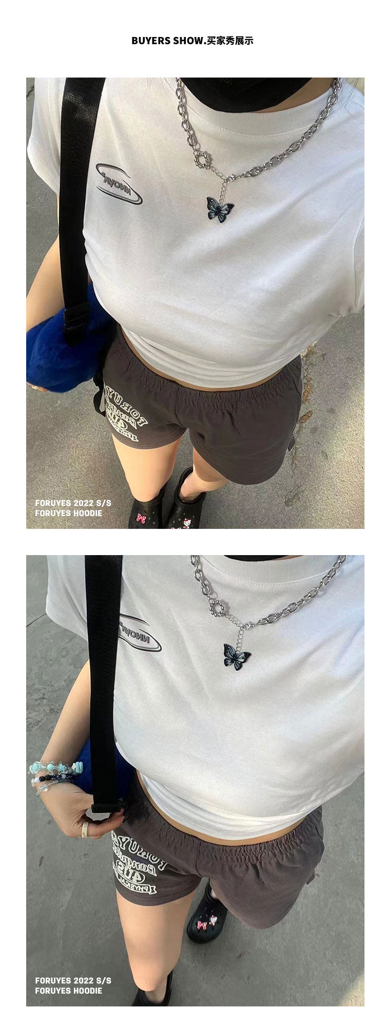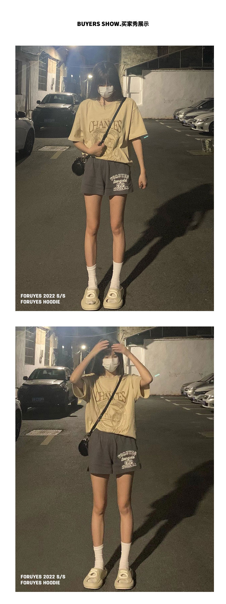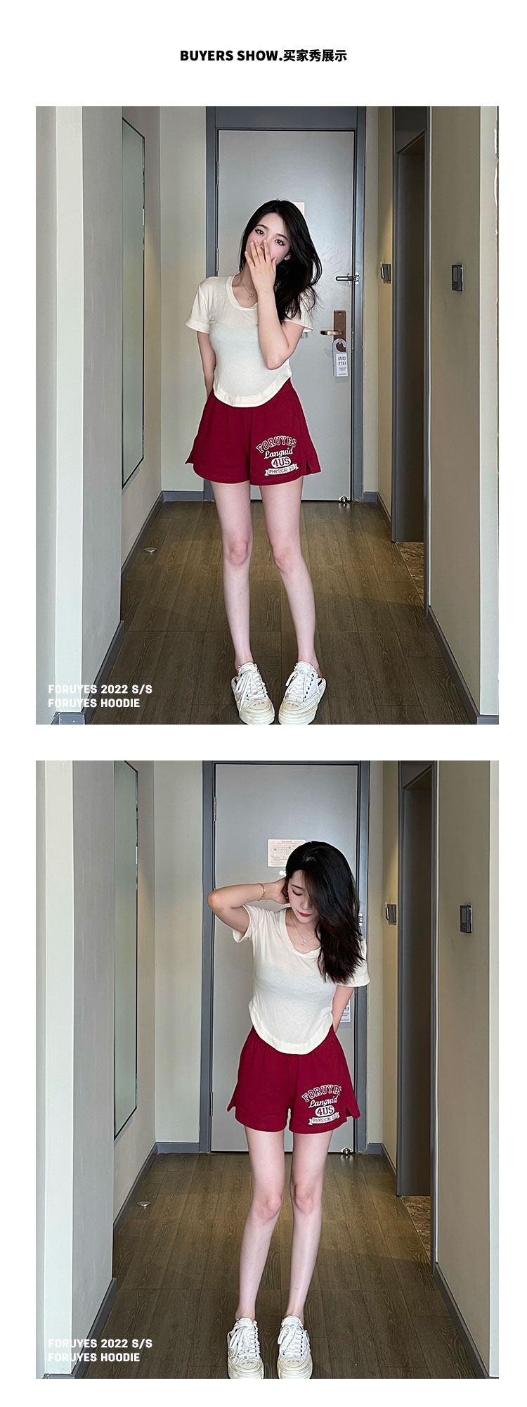 Foruyes Official Store American Retro Campus Style Slogan Logo National Trend Versatile Slim Casual Shorts