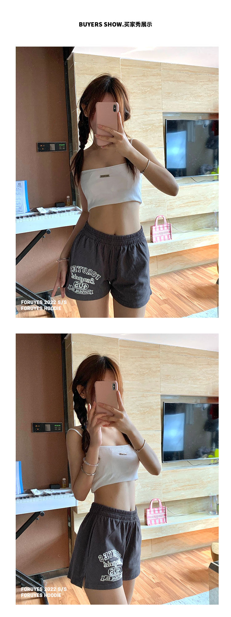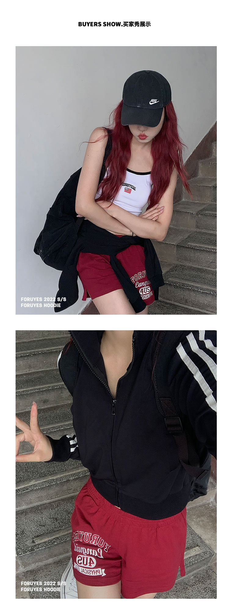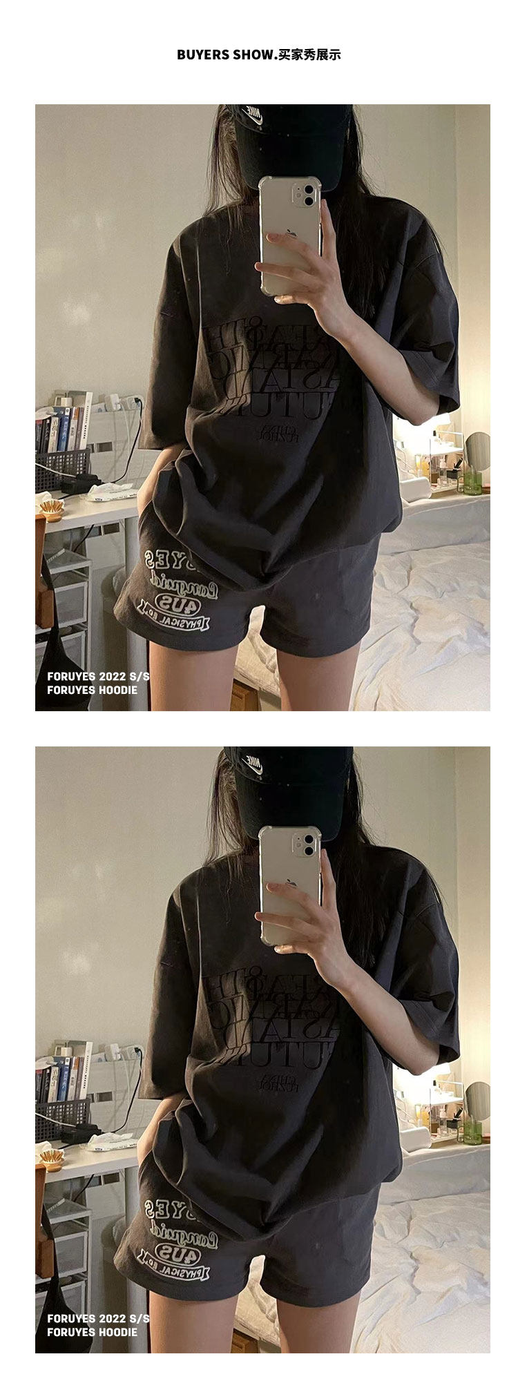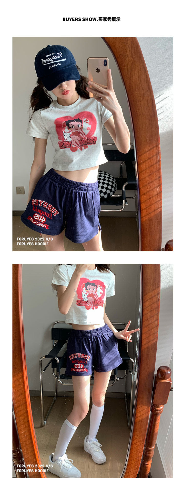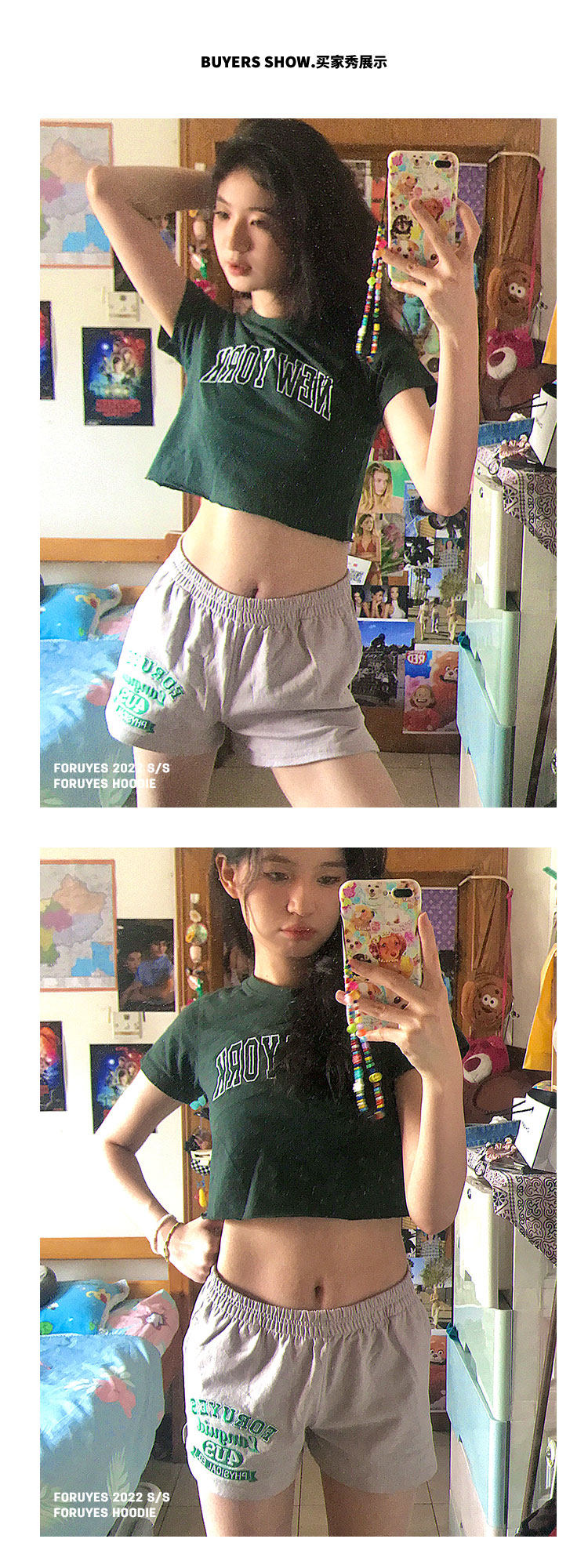 Foruyes Official Store American Retro Campus Style Slogan Logo National Trend Versatile Slim Casual Shorts