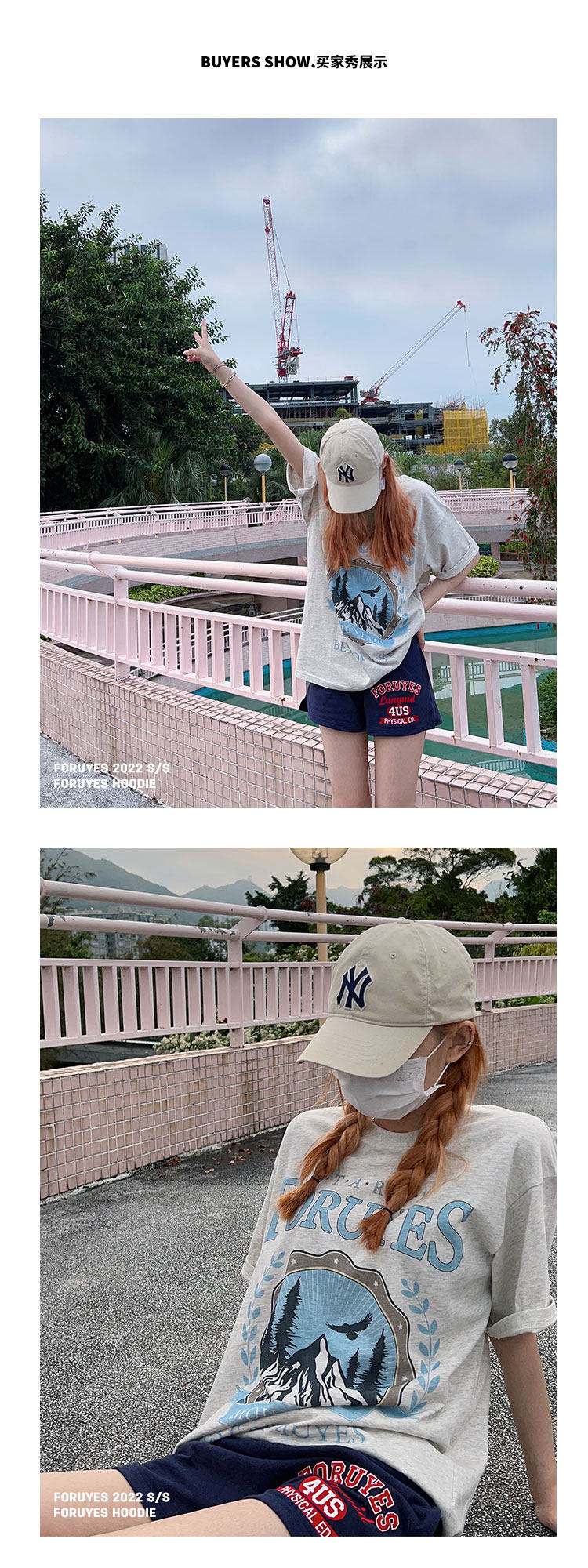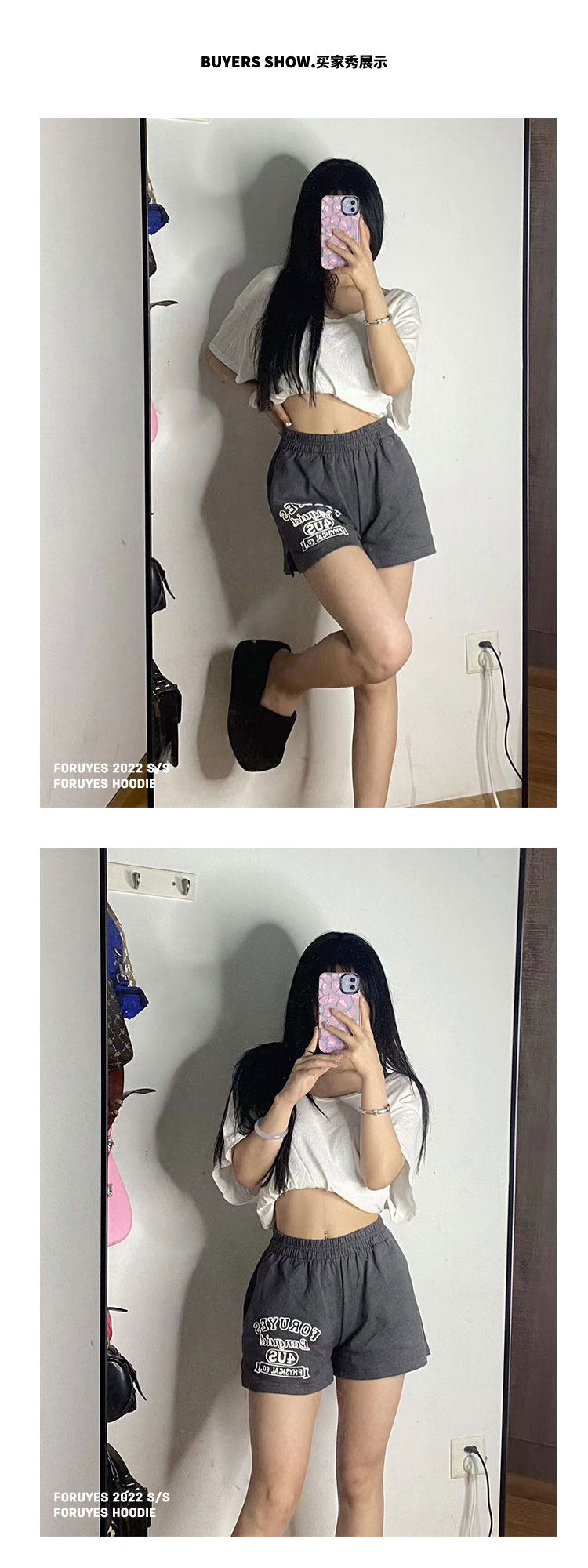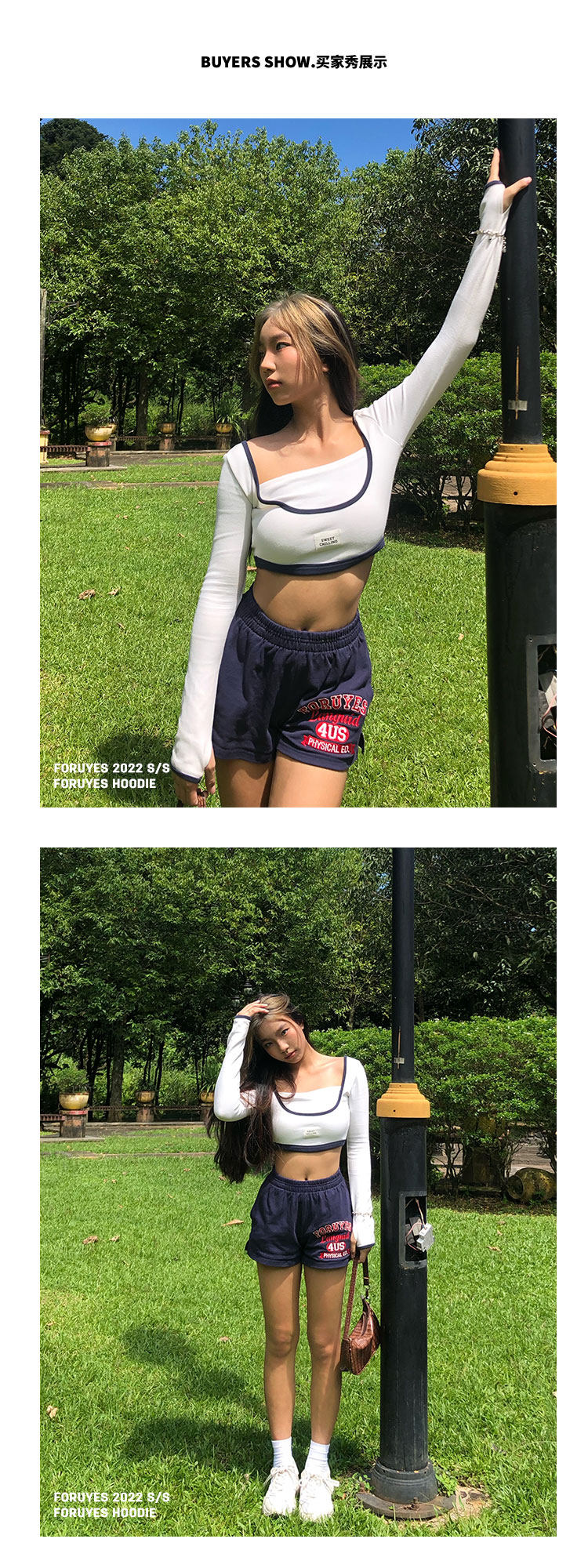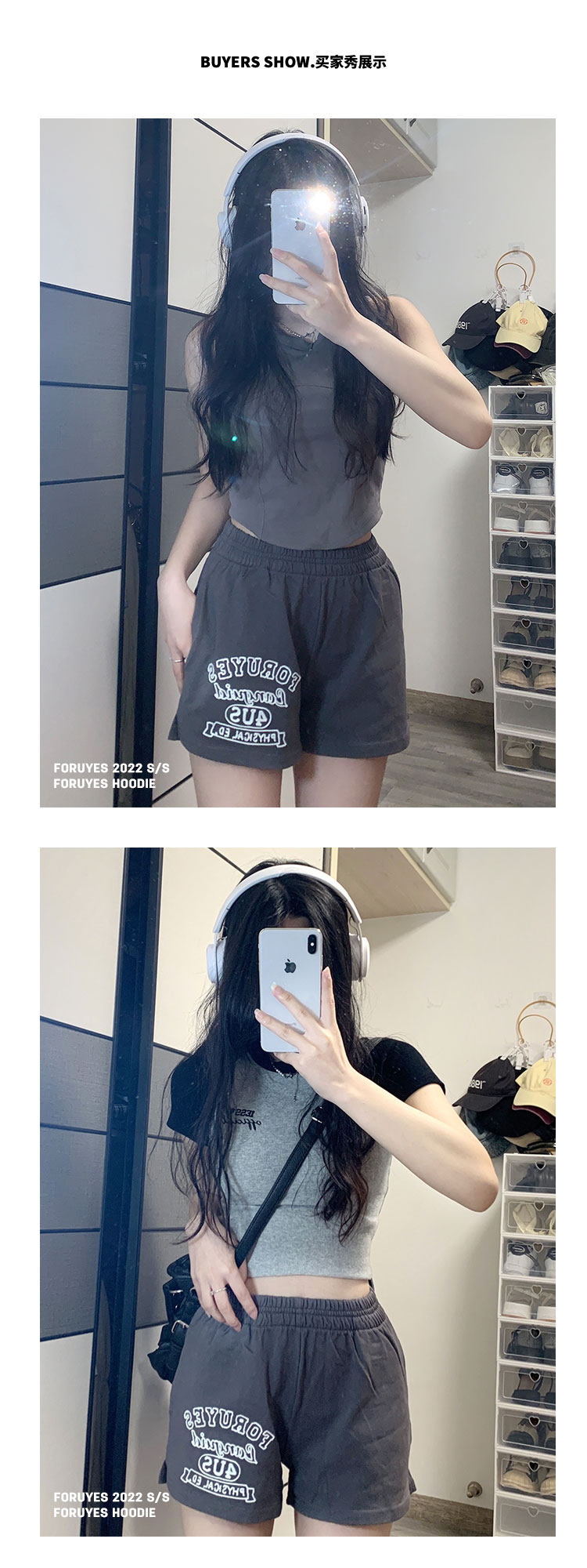 Foruyes Official Store American Retro Campus Style Slogan Logo National Trend Versatile Slim Casual Shorts