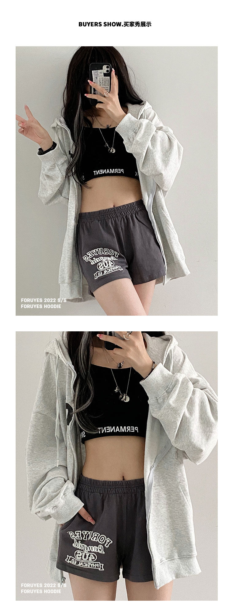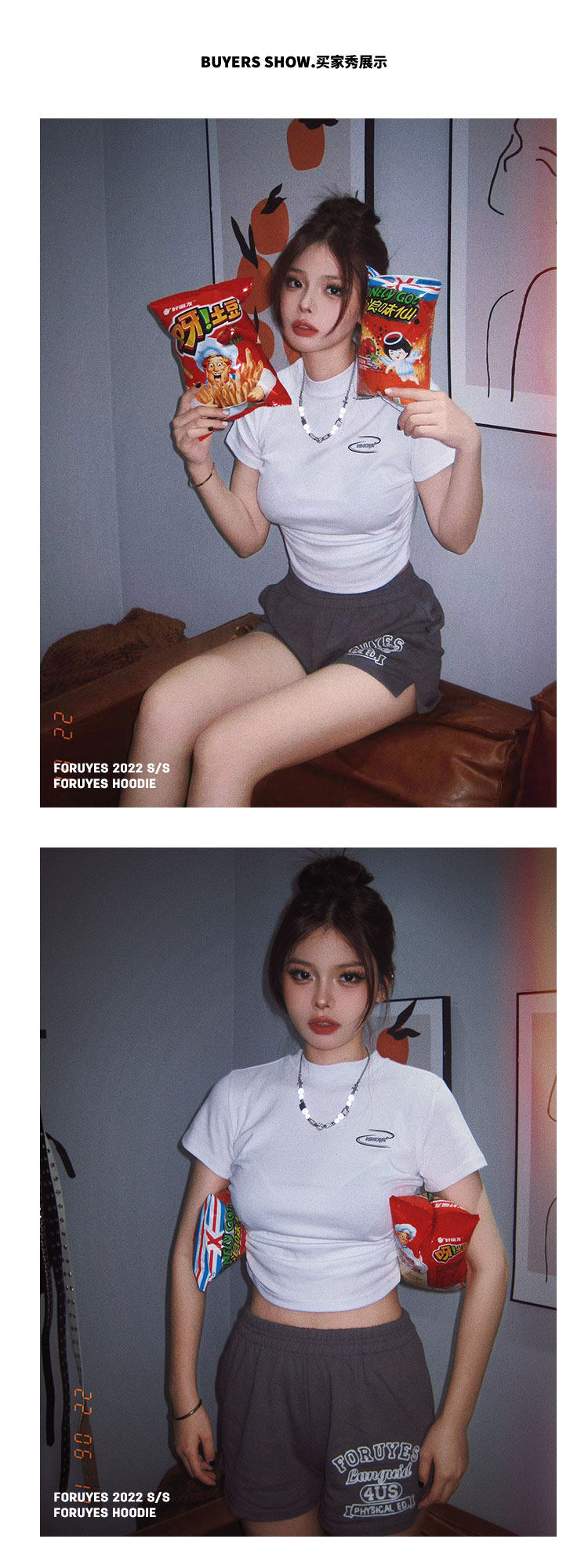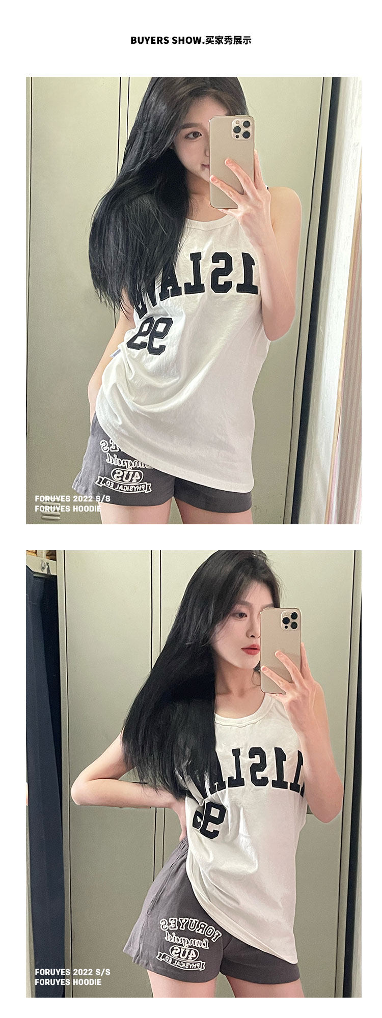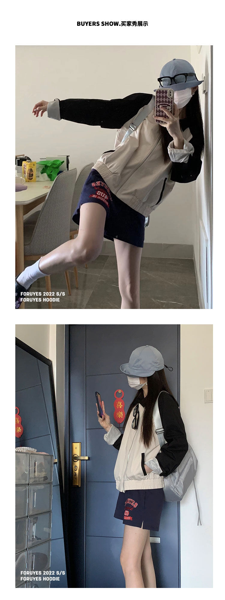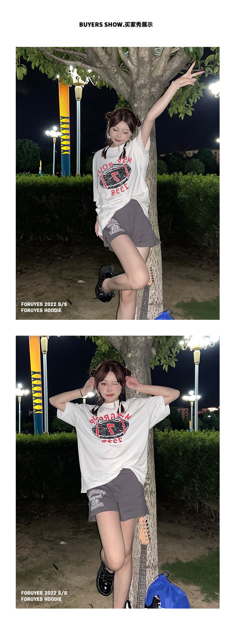 Foruyes Official Store American Retro Campus Style Slogan Logo National Trend Versatile Slim Casual Shorts