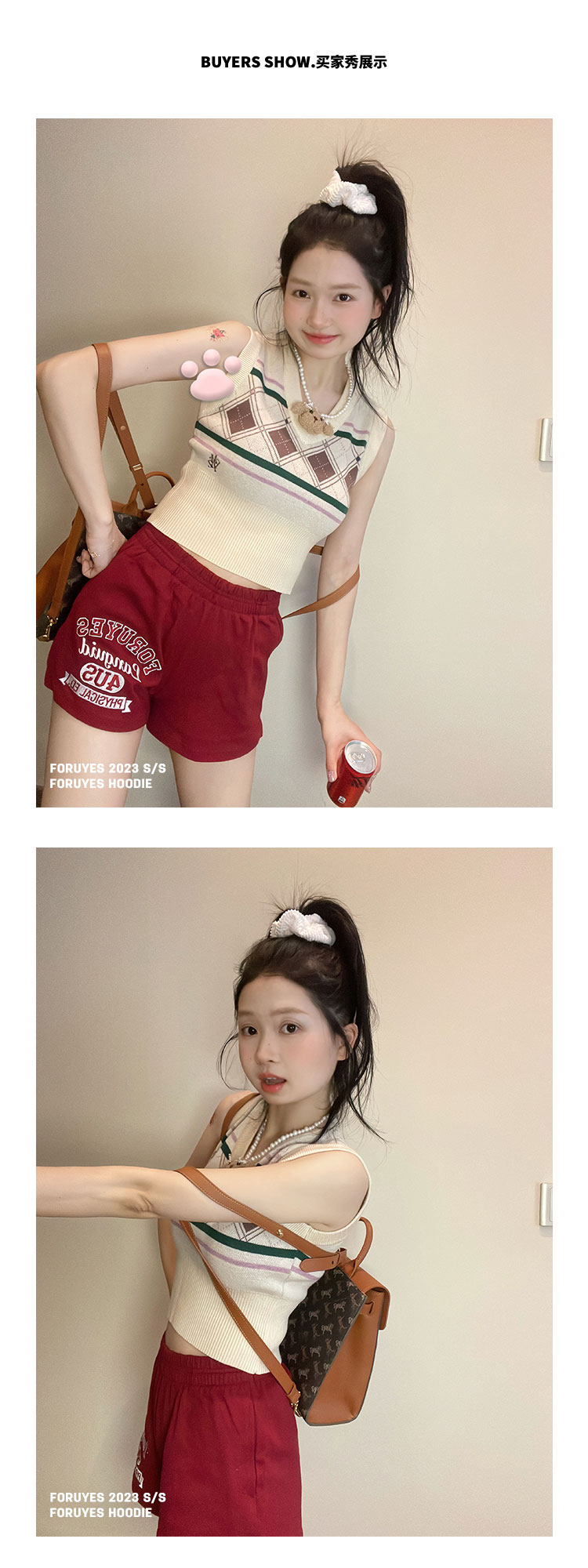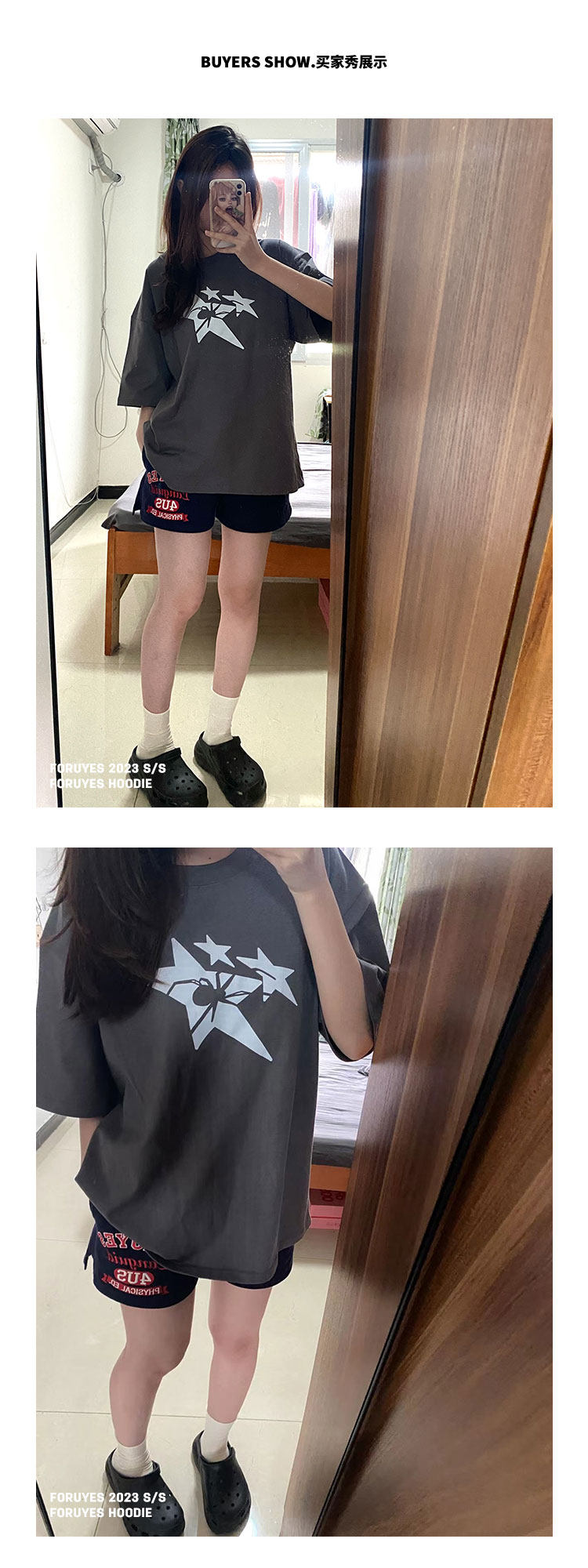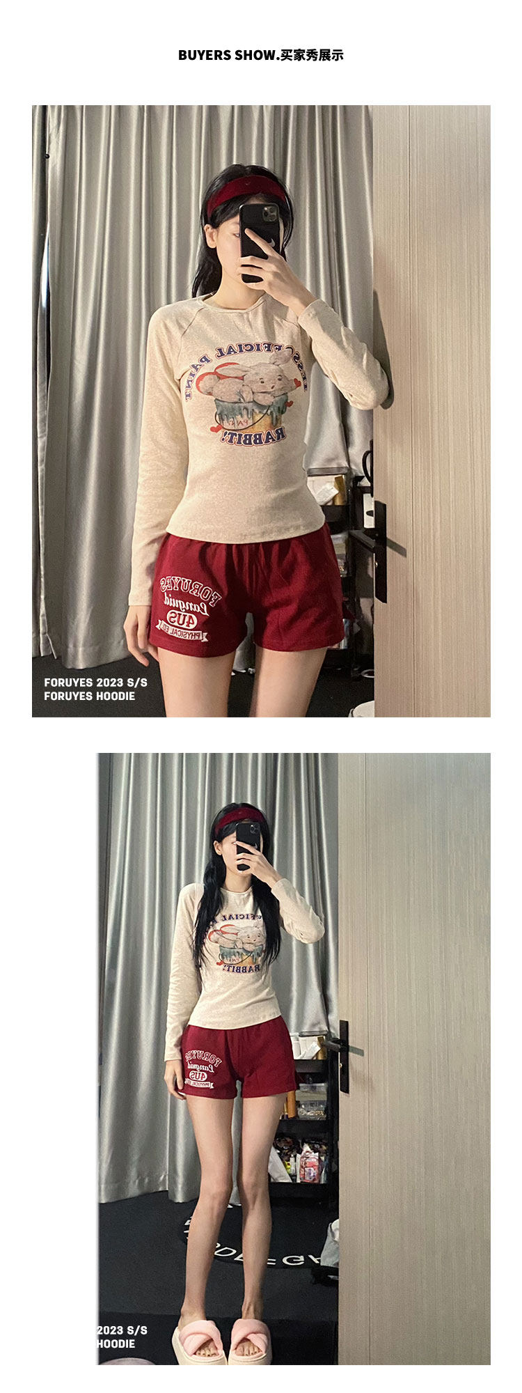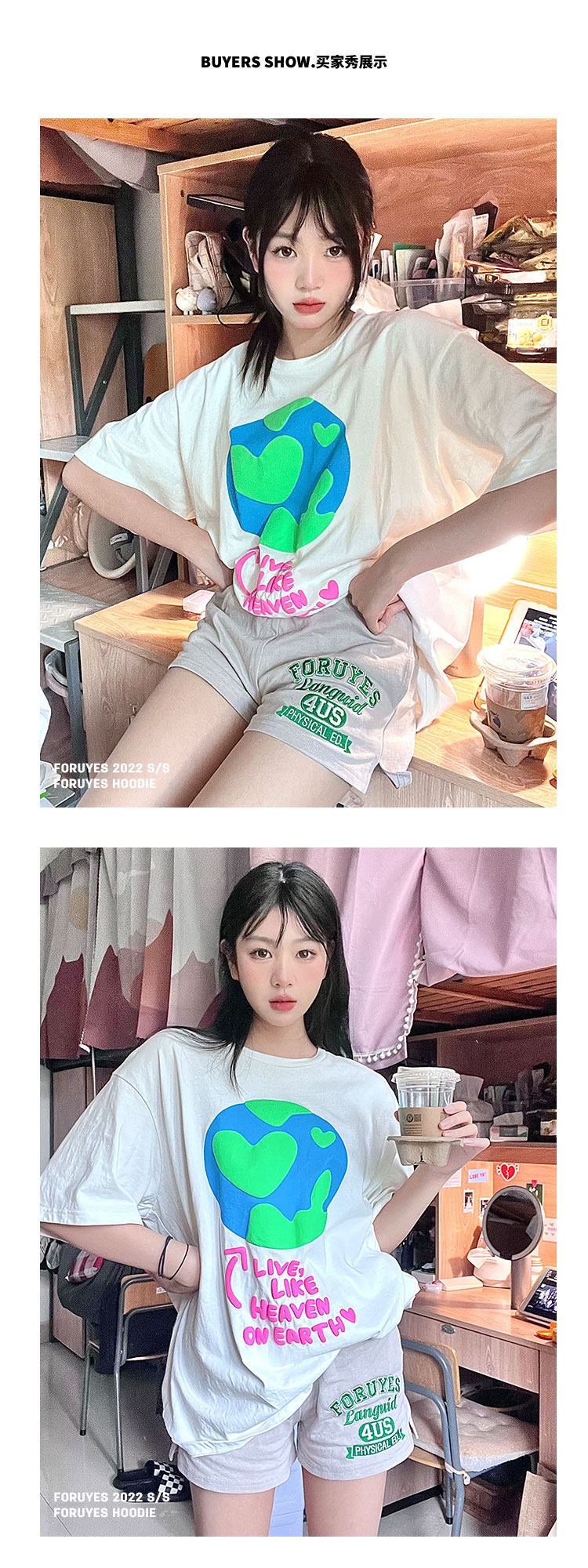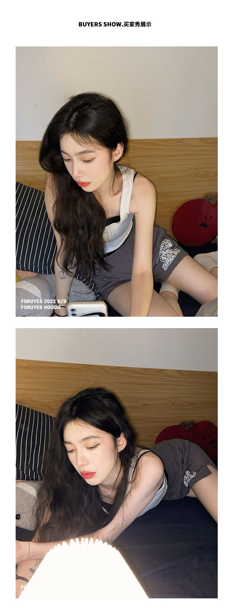 Foruyes Official Store American Retro Campus Style Slogan Logo National Trend Versatile Slim Casual Shorts