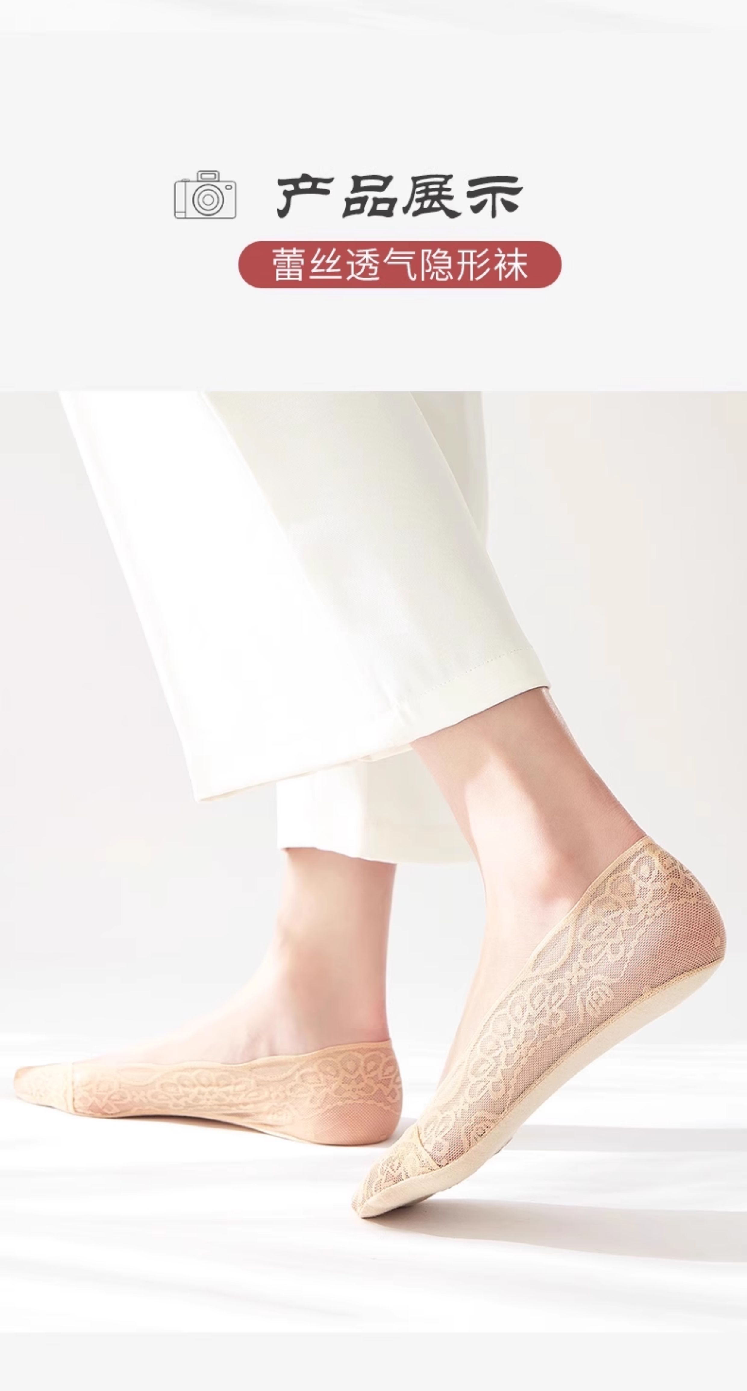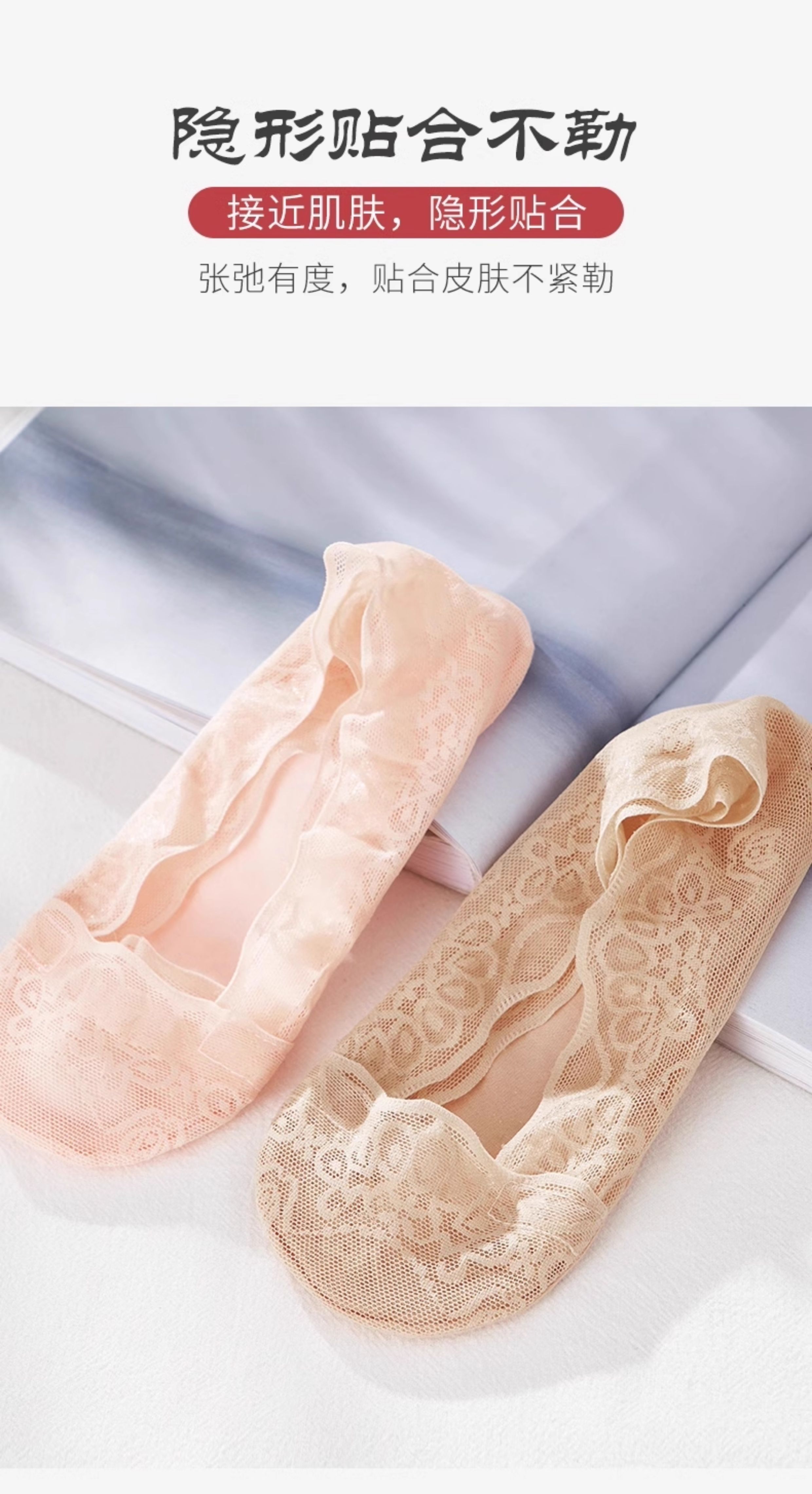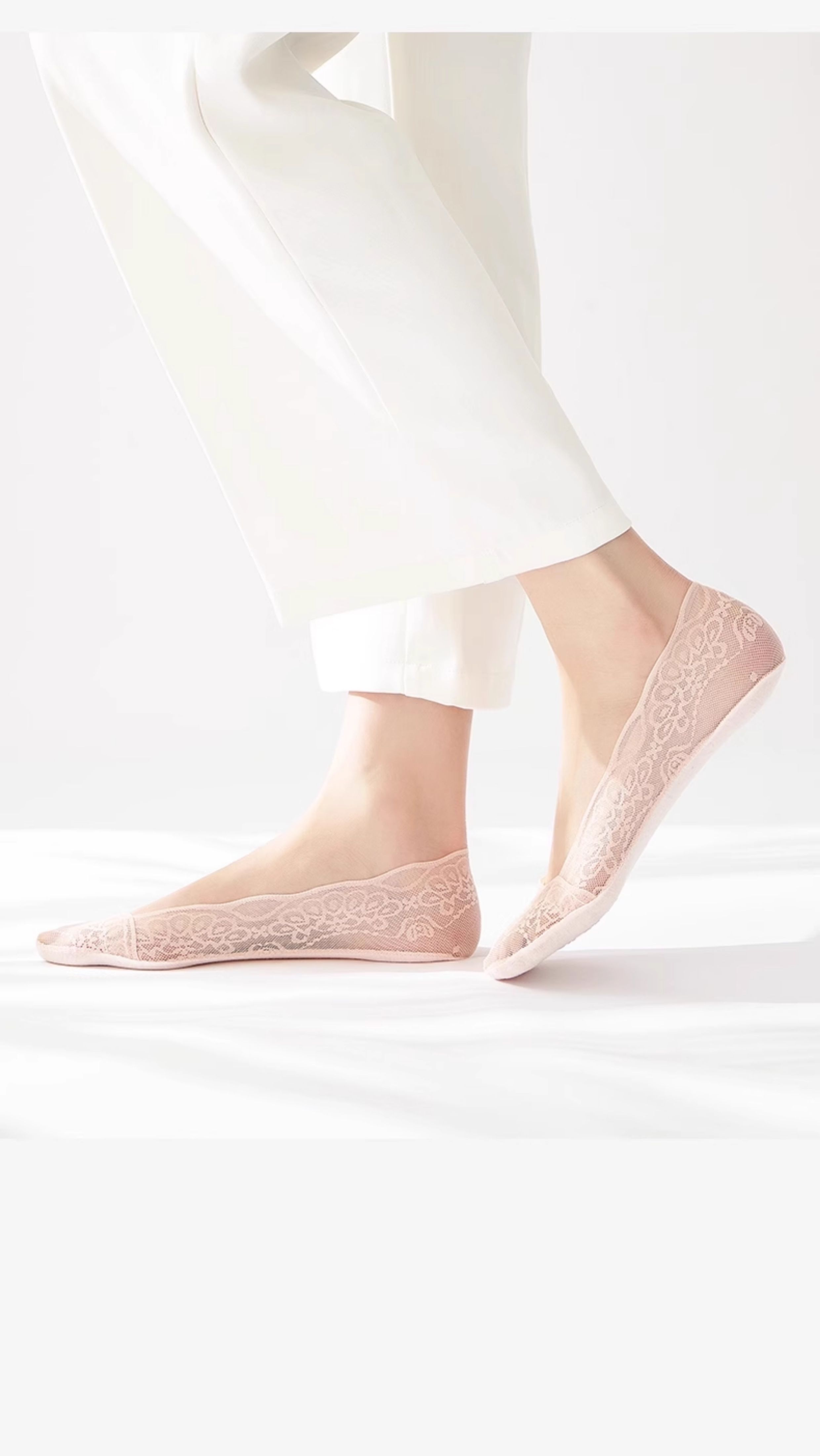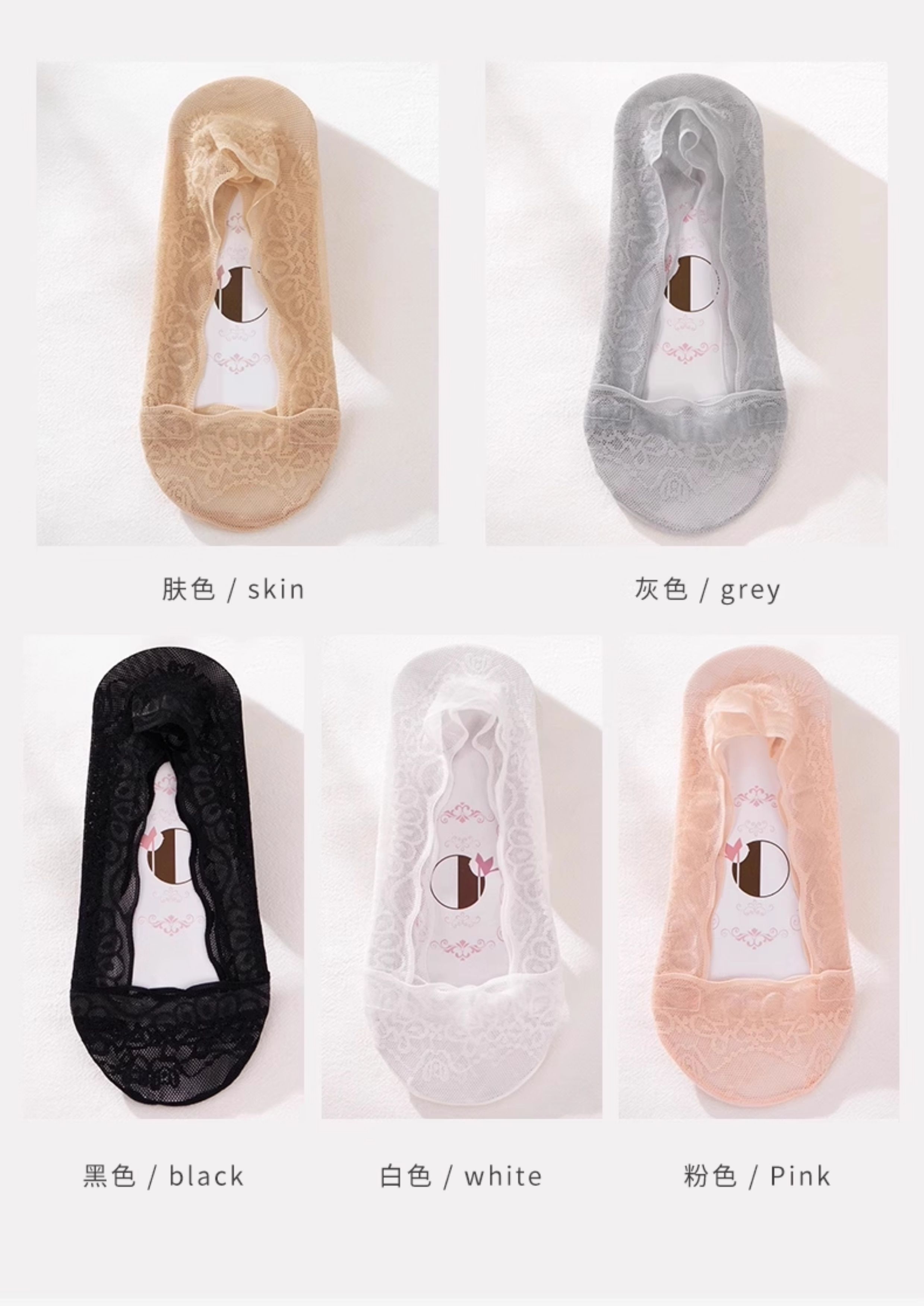 Women's Invisible Boat Socks, Summer Thin Pure Cotton Socks with Lace, Shallow Cut, Non-Slip, No-Show, Suitable for Summer Flats