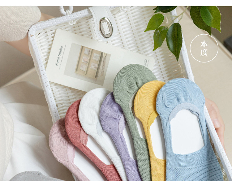 Pure Cotton No-Show Socks for Women, Summer Thin Short Socks, Low-Cut Silicone Non-Slip, Non-Slip Heel, All-Cotton Breathable Invisible Socks, Seamless
