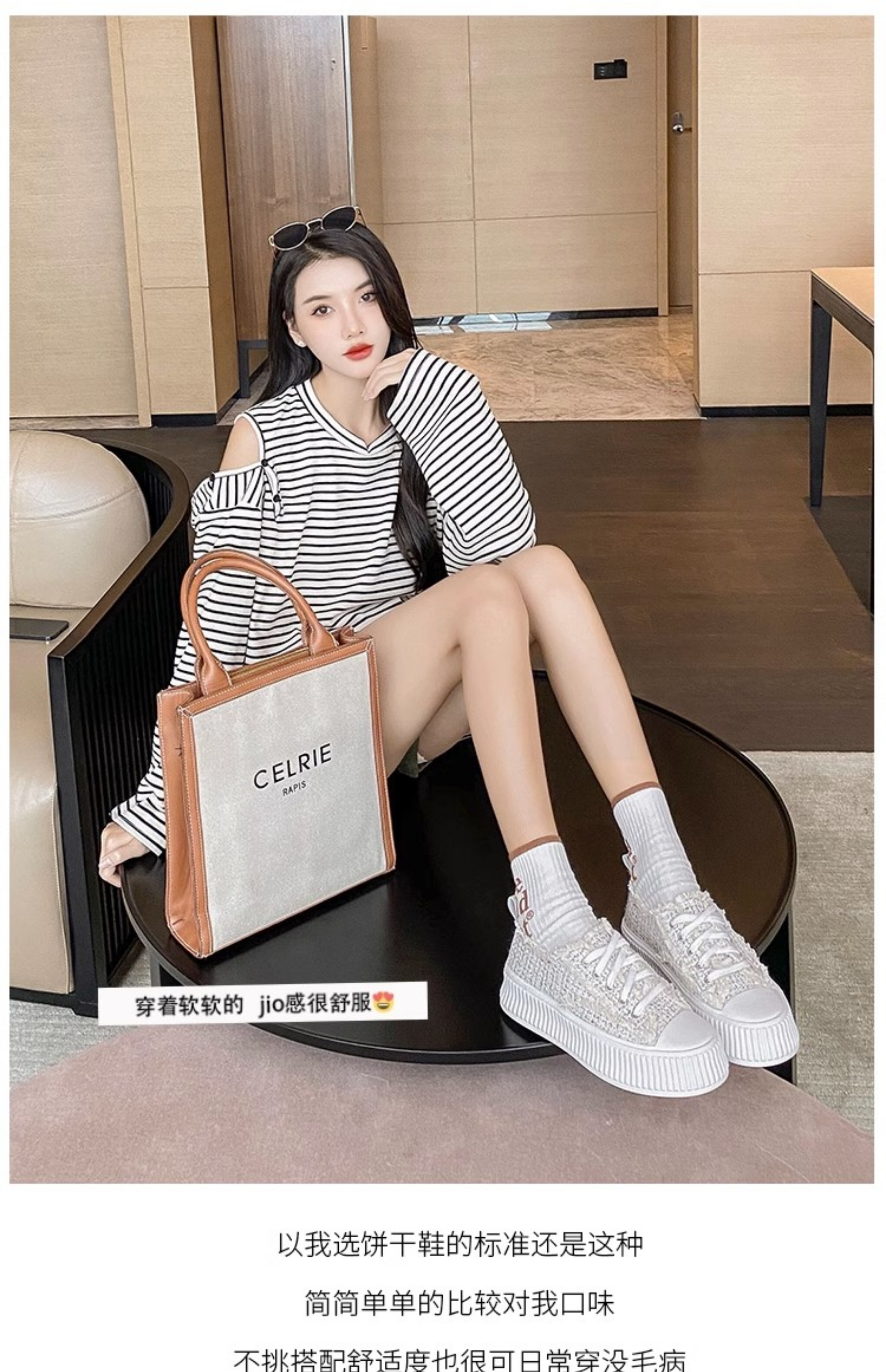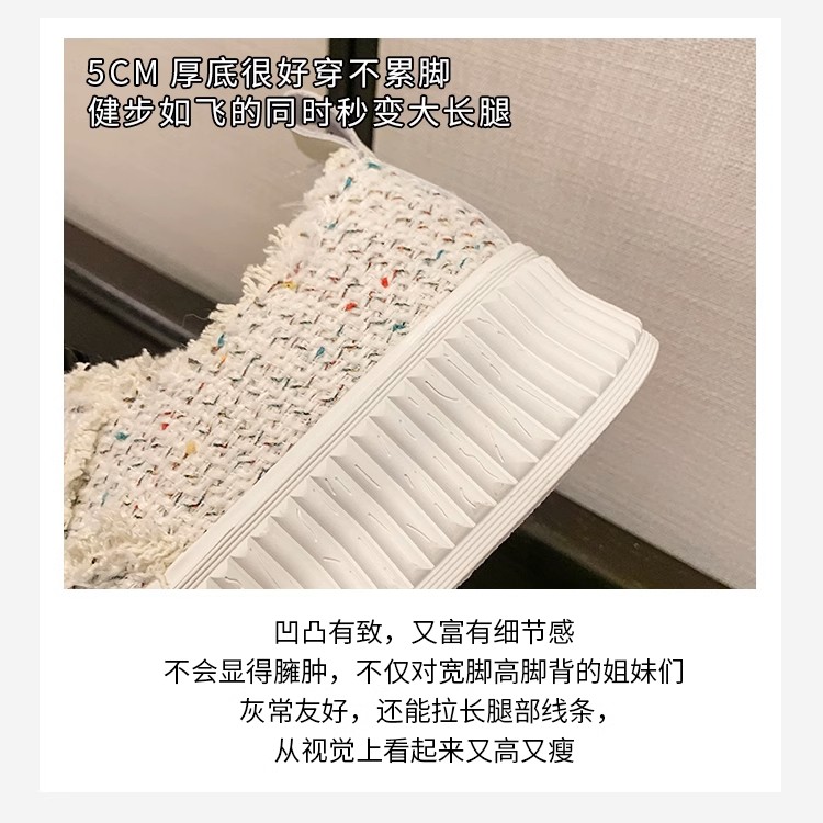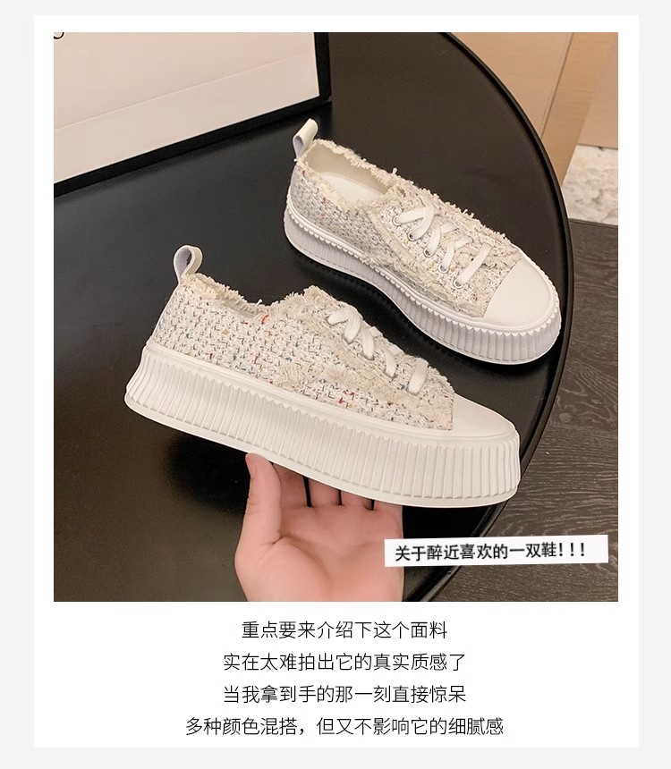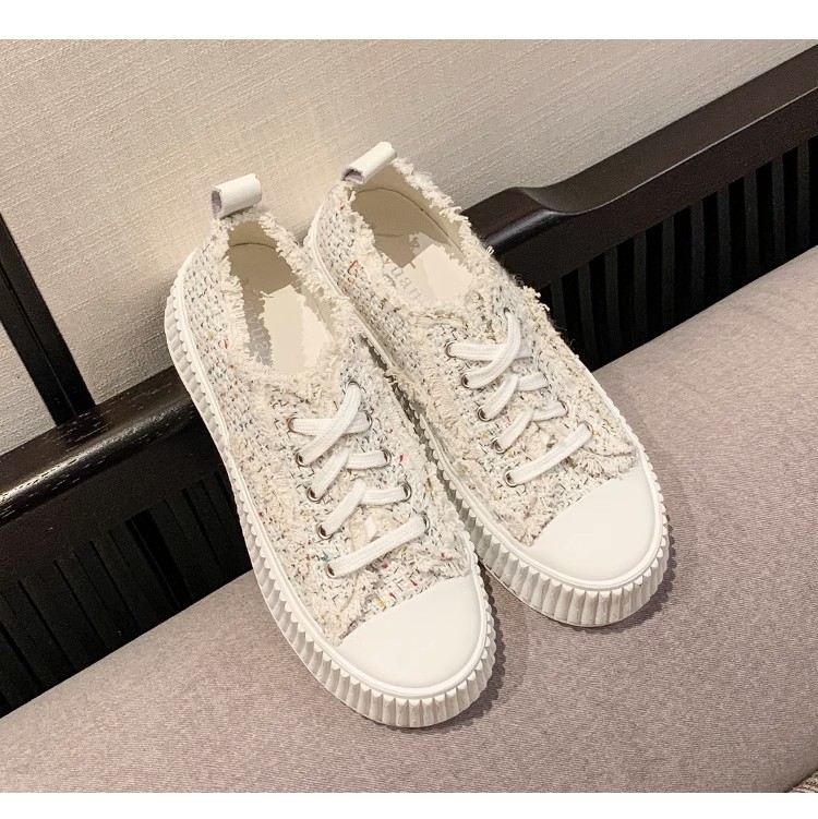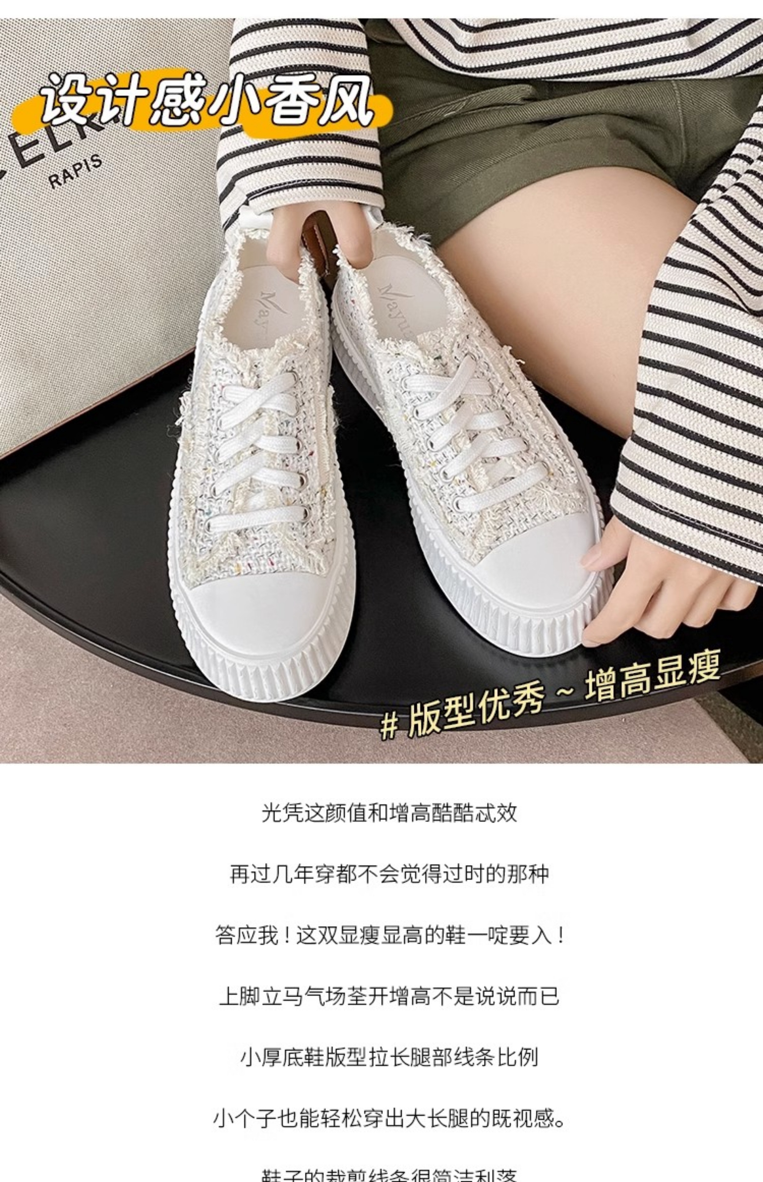 Hong Kong White Sneakers for Women 2025 Spring and Autumn New Style Chanel-Inspired Versatile Canvas Shoes Casual Single Shoes Thick-Soled Sneakers