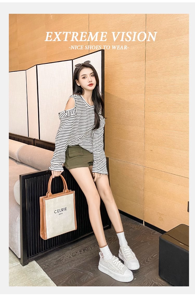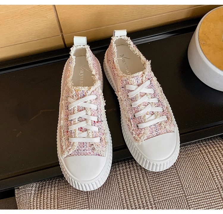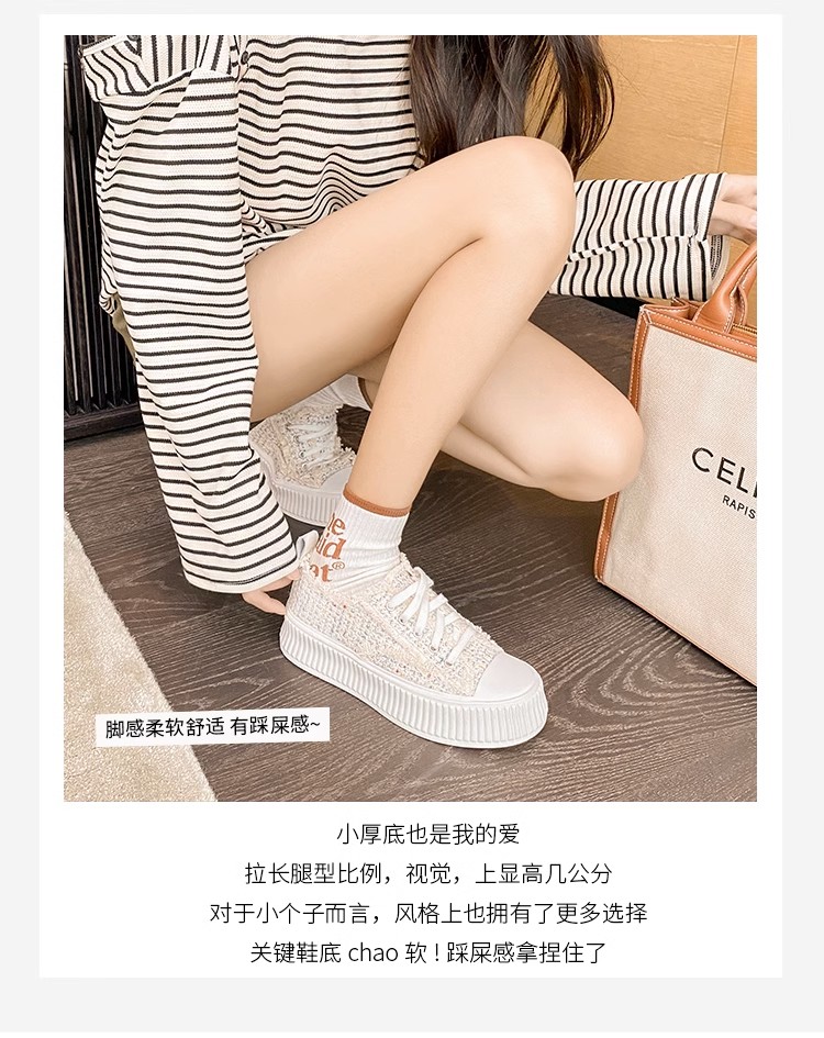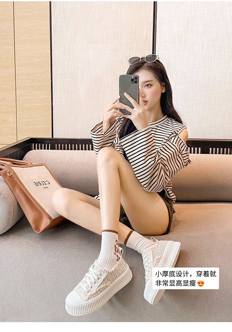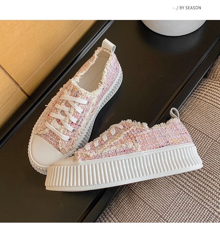 Hong Kong White Sneakers for Women 2025 Spring and Autumn New Style Chanel-Inspired Versatile Canvas Shoes Casual Single Shoes Thick-Soled Sneakers