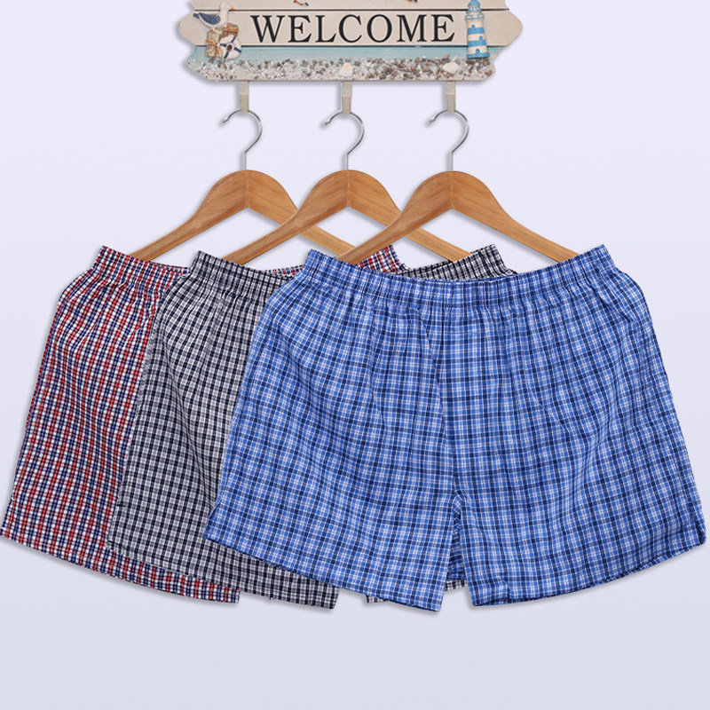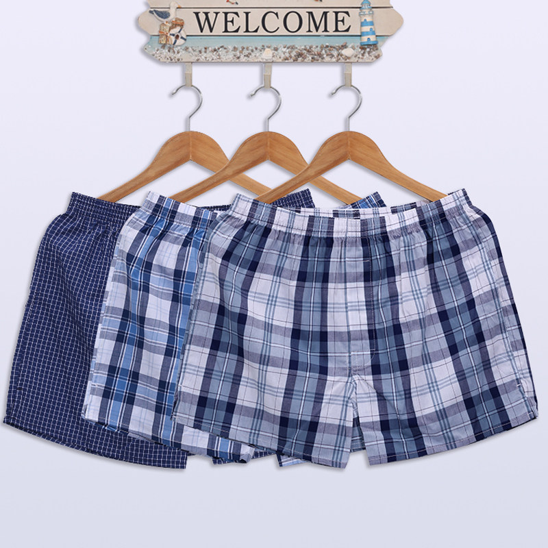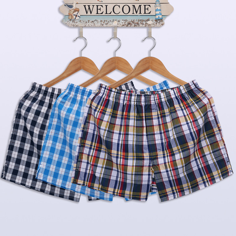 Three-Pack of Arrow Pants, Men's Pure Cotton Underwear, Loose and Breathable Plaid Youth Boxer Briefs, Antibacterial and Thin for Summer