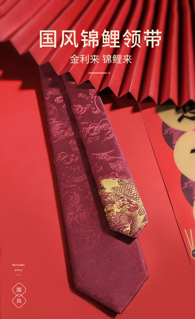 [Chinese Style] Goldlion Men's Tie with a High-End Feel, Koi Fish Design for the Year of Birth, Wedding Groom, Business Tie Gift Box Set