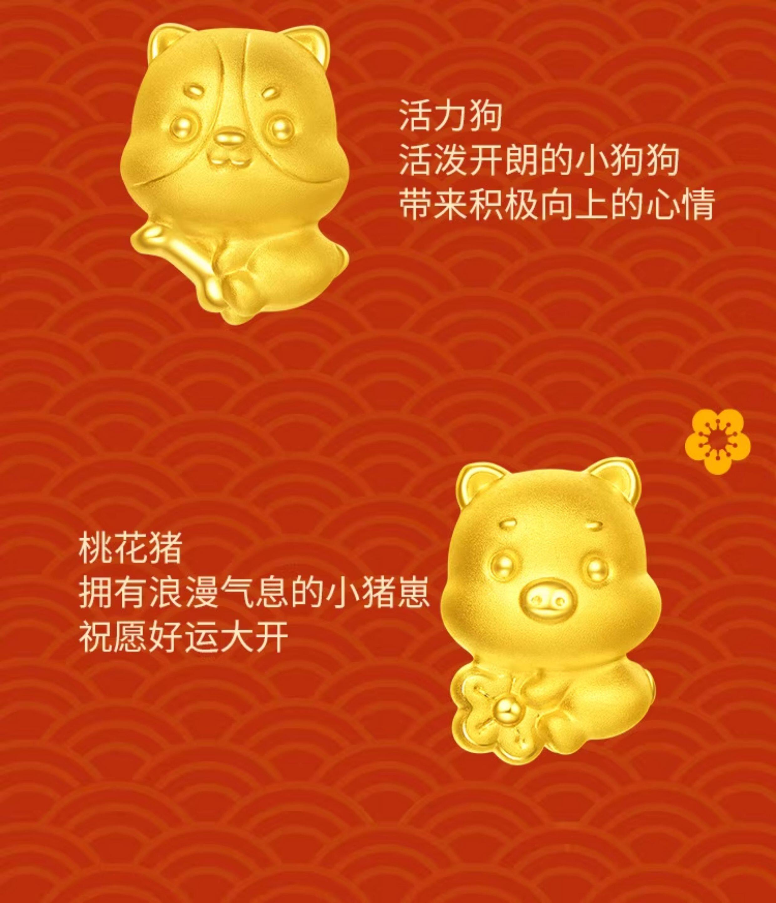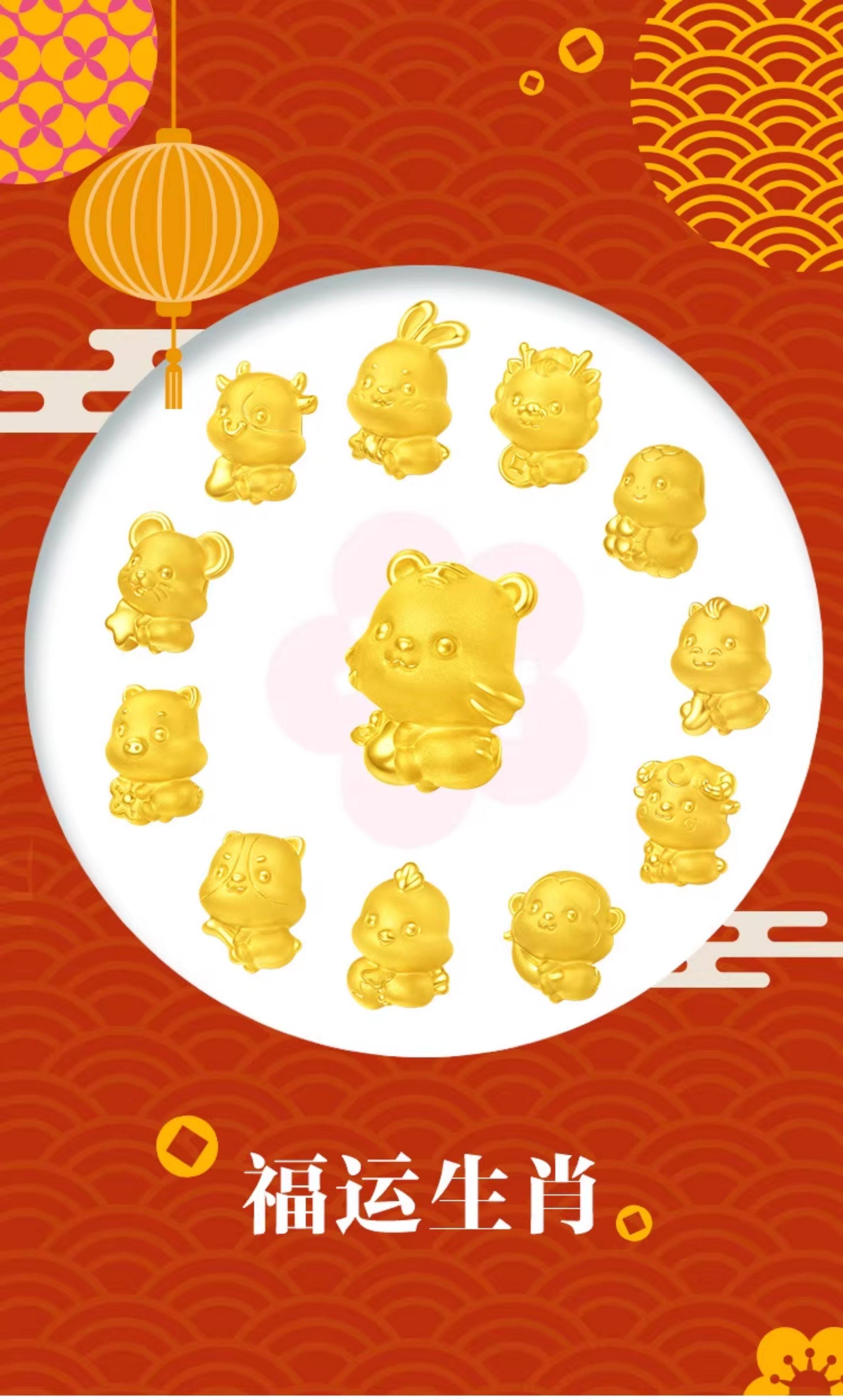 999 Pure Gold Twelve Zodiac Gold Fortune Beads Snake Bracelet for Women 3D Hard Gold Ox, Rabbit, Monkey, Chicken, Pig