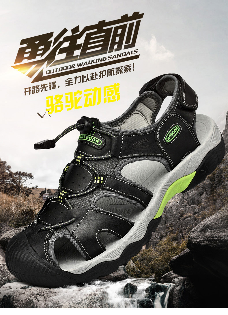 German Camel Dynamic Summer Breathable Water-Resistant Sandals for Men, Genuine Leather Men's Outdoor Sports and Leisure Beach Shoes