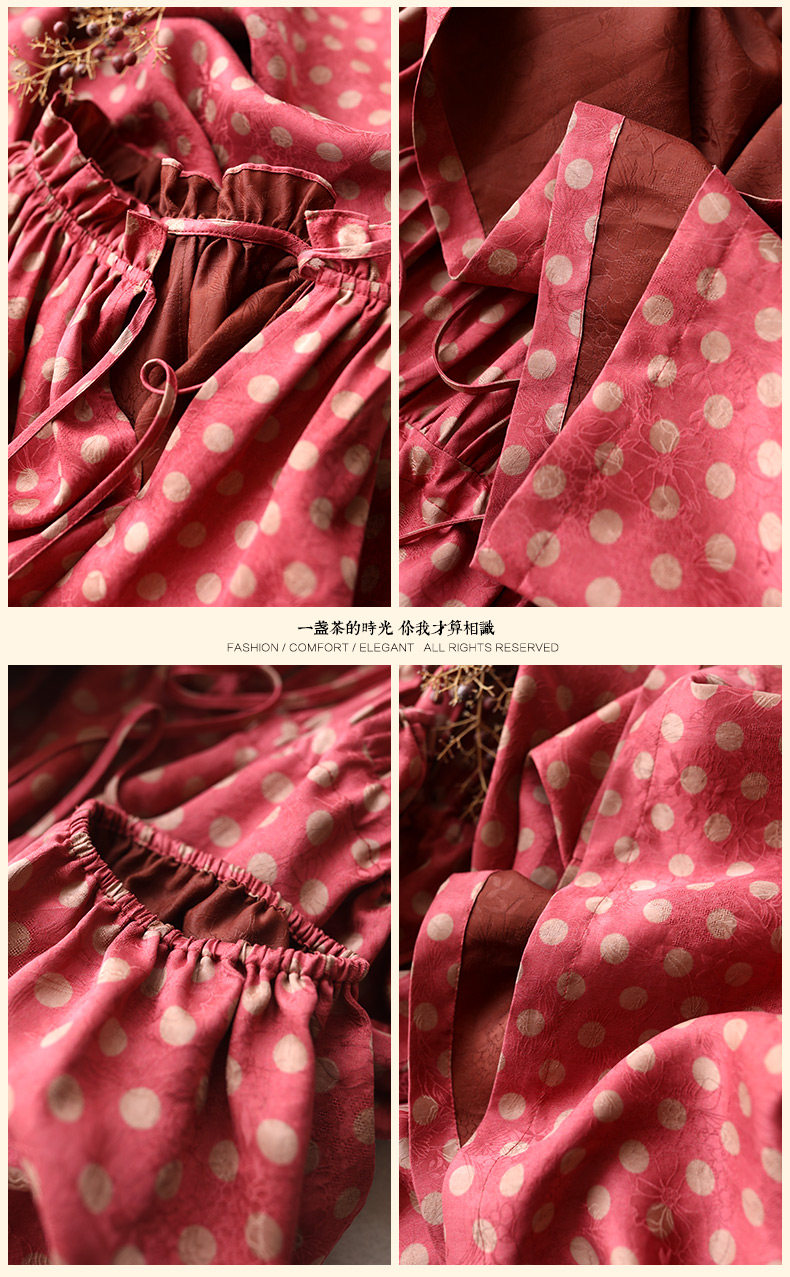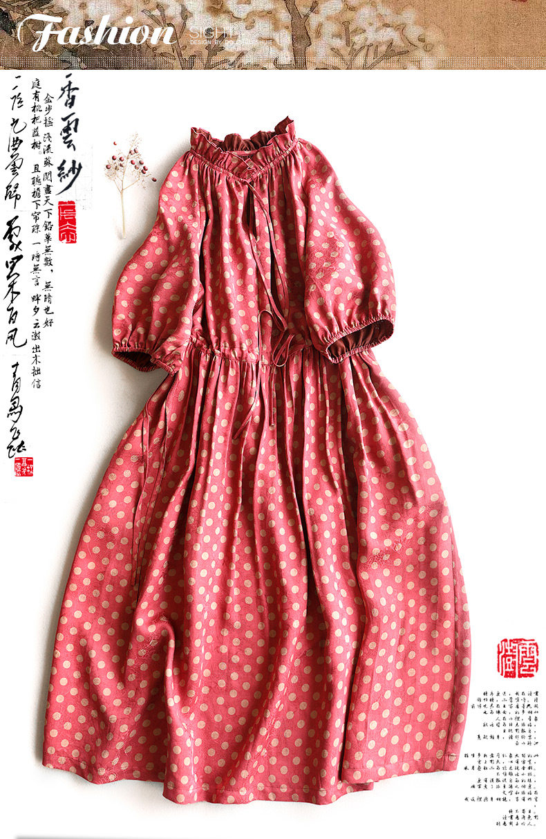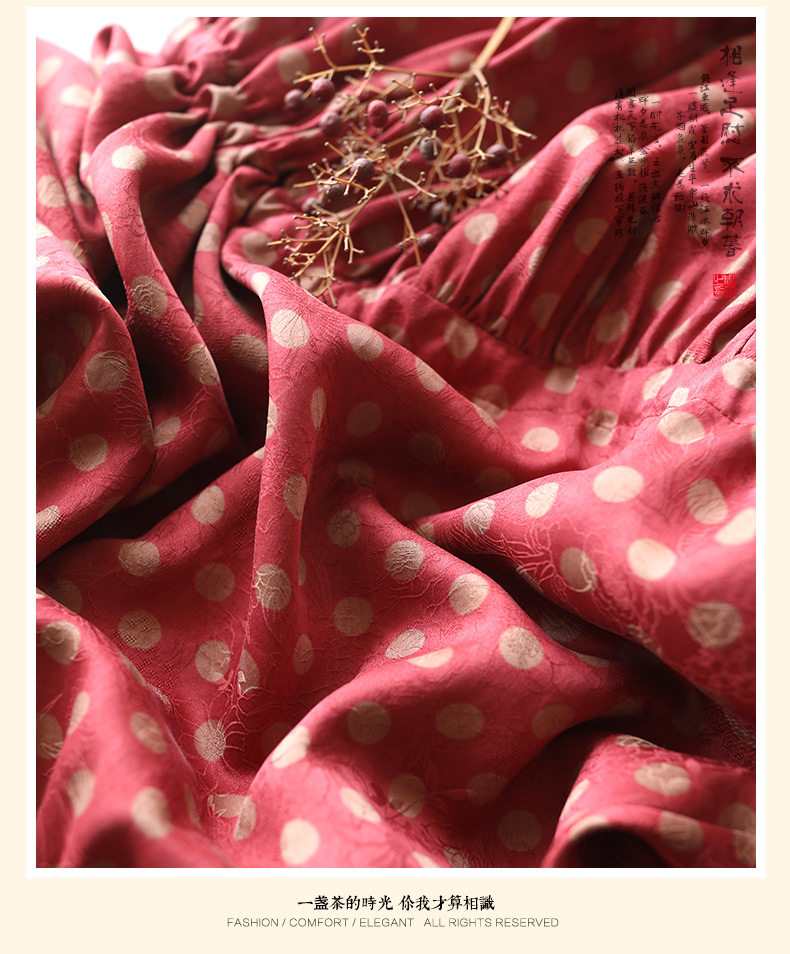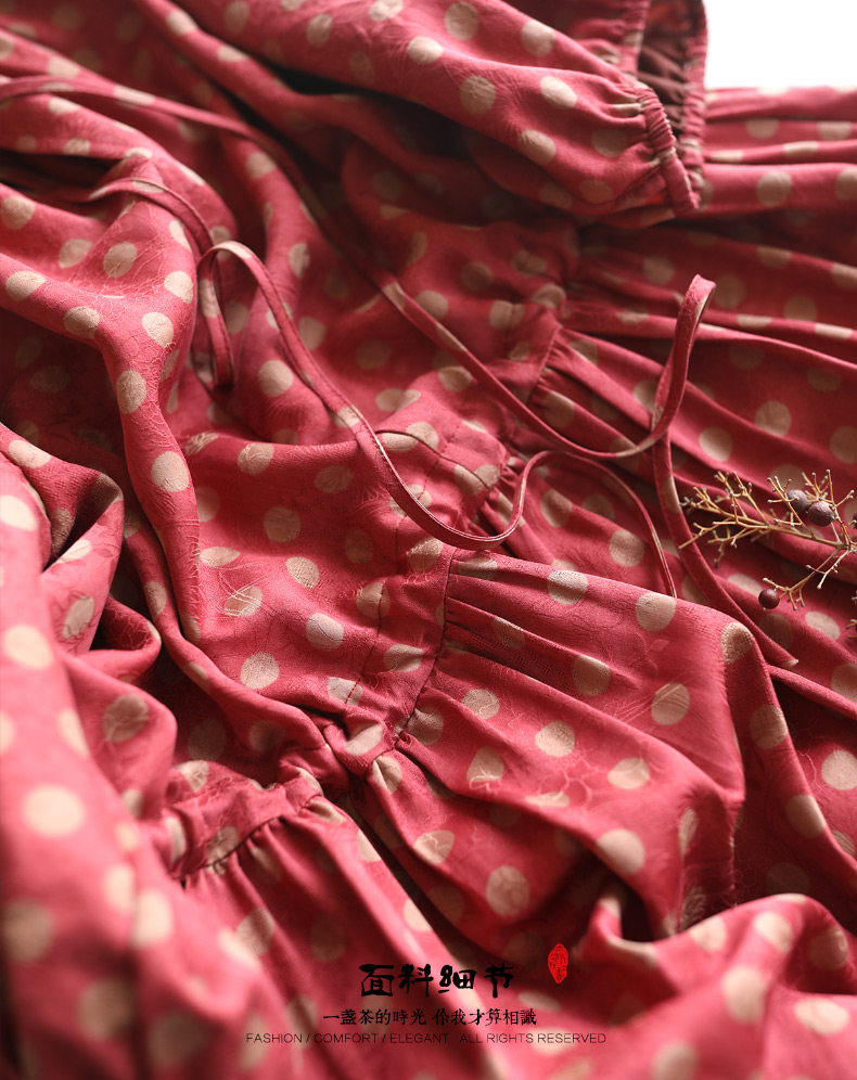 Yunshu Original Floral Fragrant Cloud Silk French Retro Polka Dot Flared Dress Summer Ruffled Collar Mulberry Silk Dress