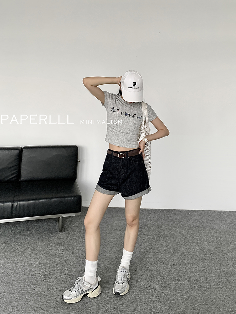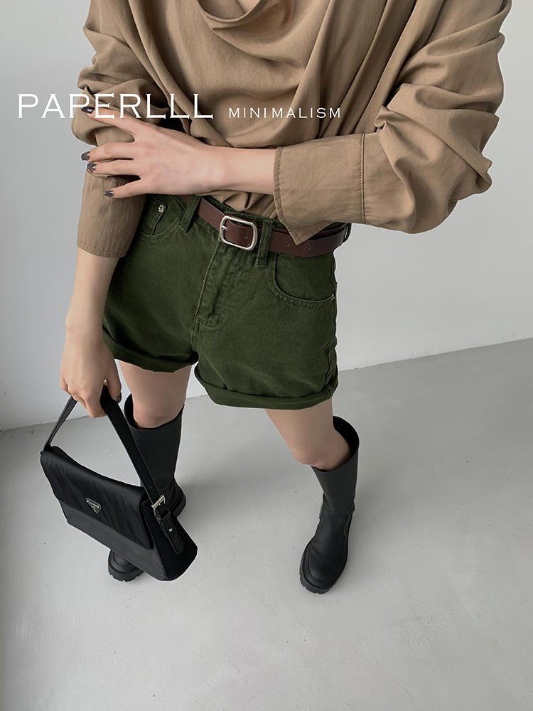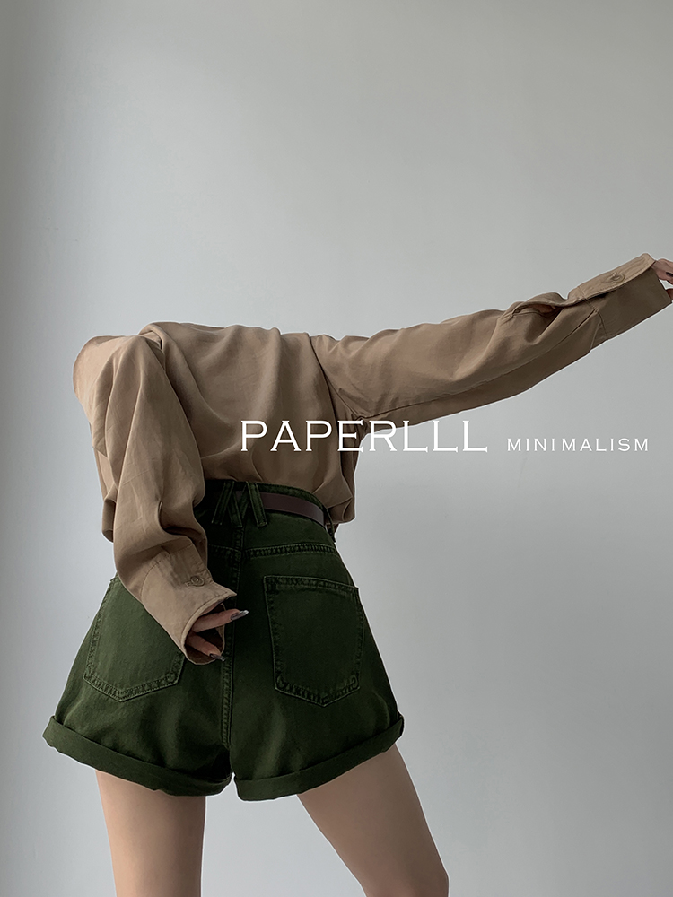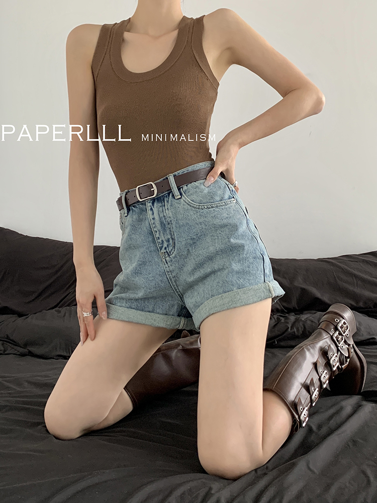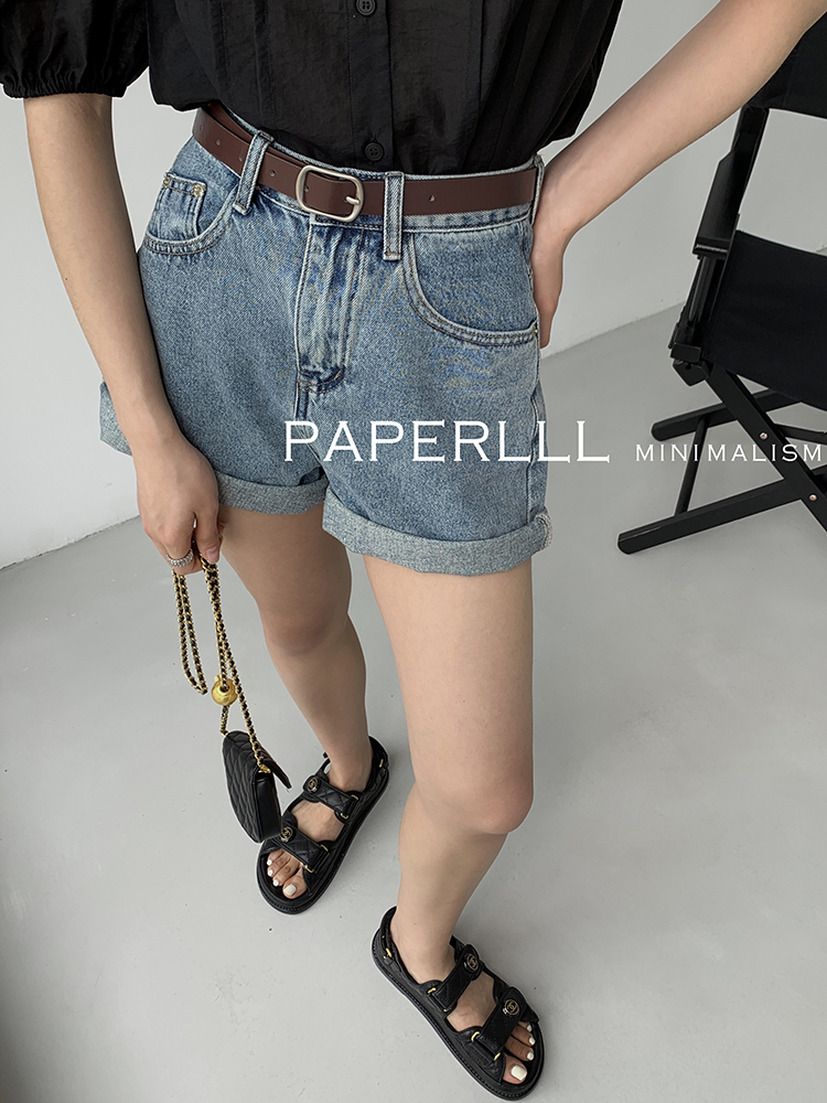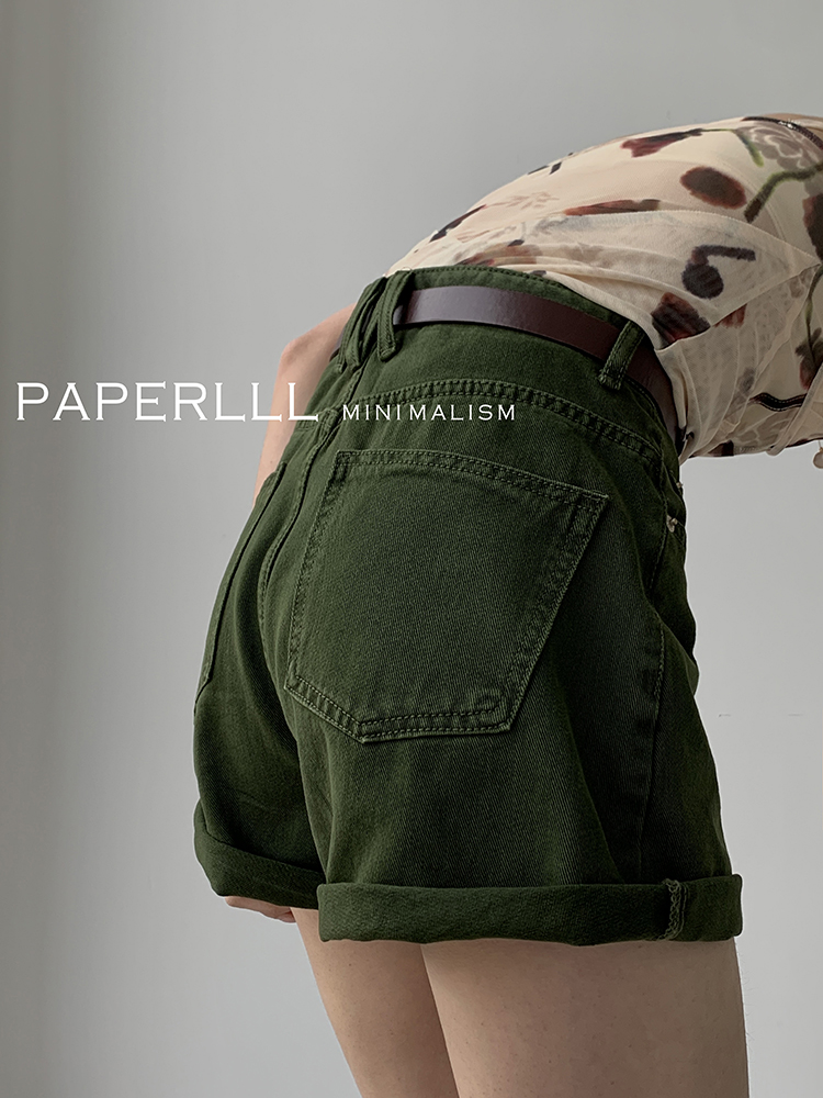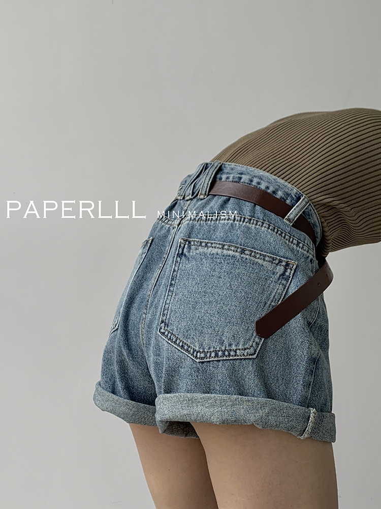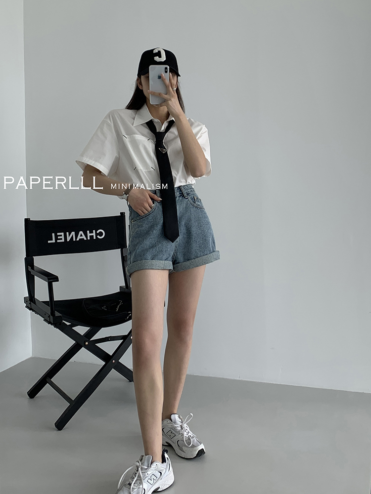 Paperlll Xinjian 2025 New A-Line Retro American High-Waisted Hot Pants Rolled Hem Denim Shorts for Women Summer
