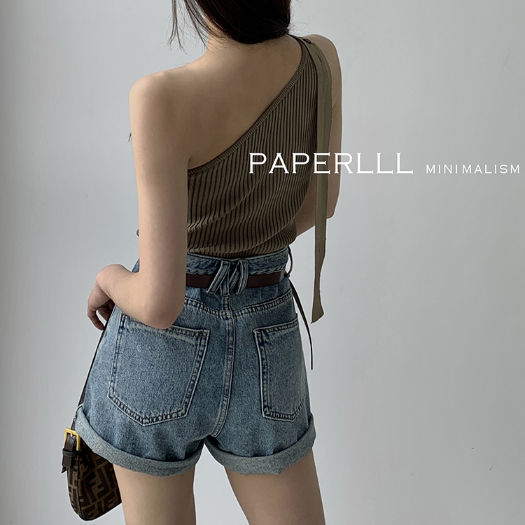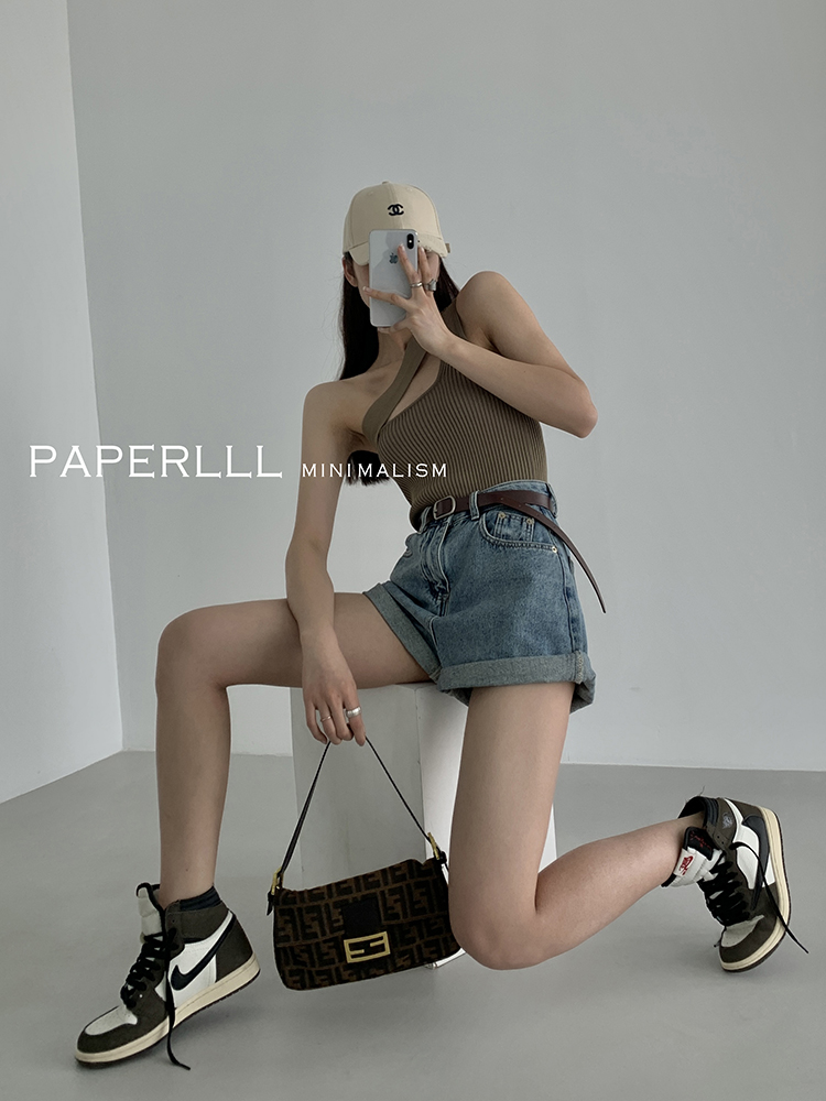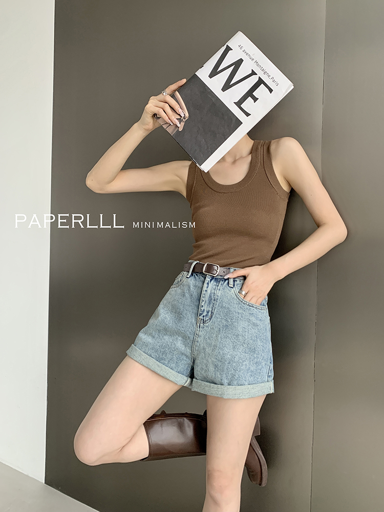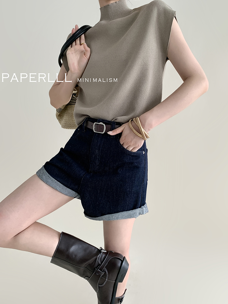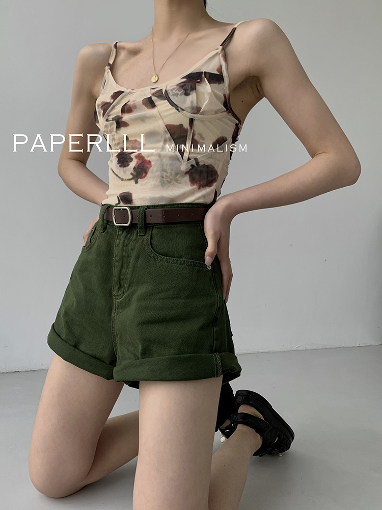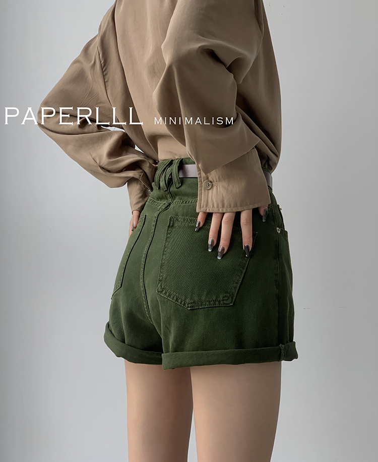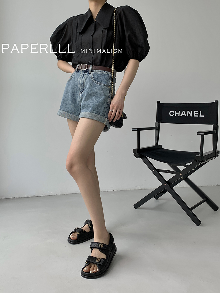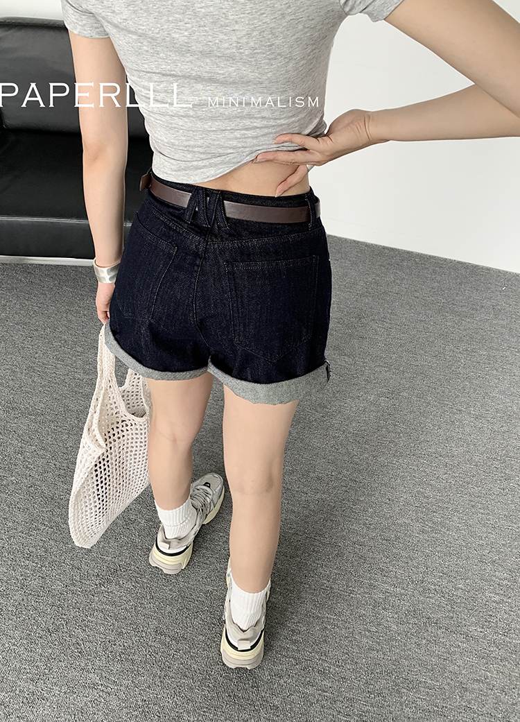 Paperlll Xinjian 2025 New A-Line Retro American High-Waisted Hot Pants Rolled Hem Denim Shorts for Women Summer