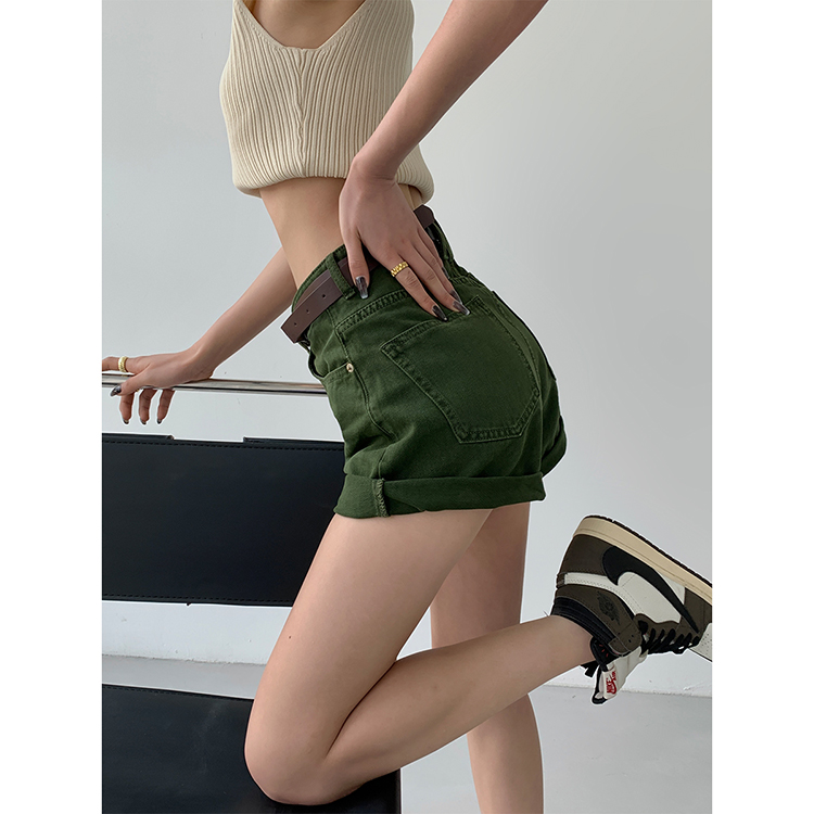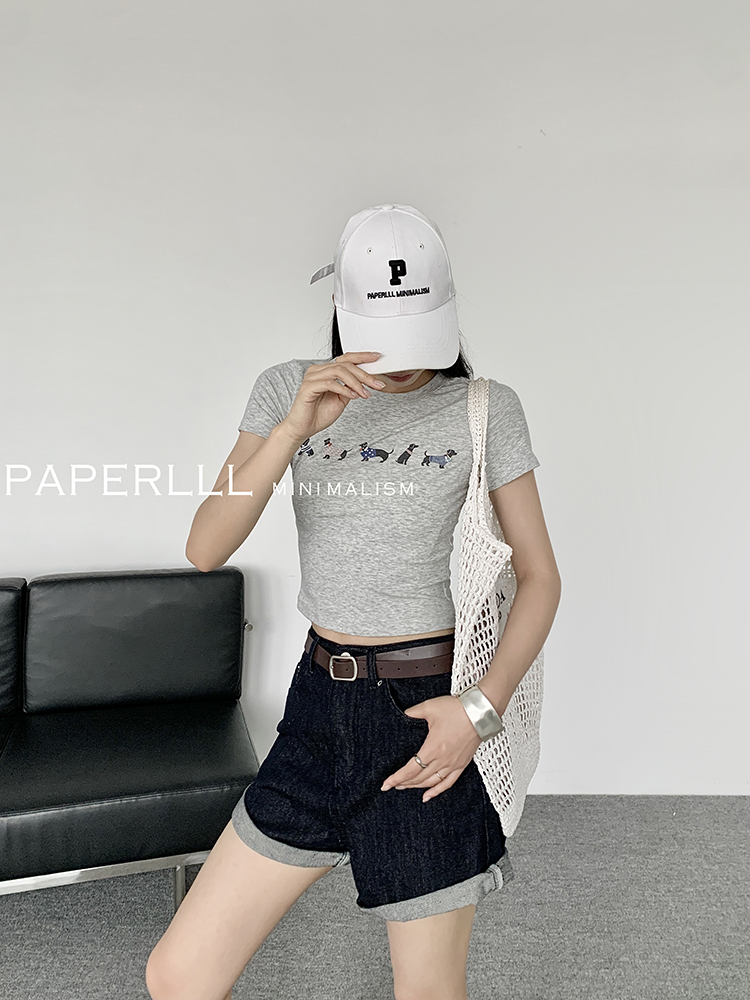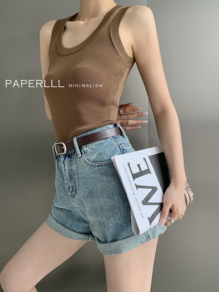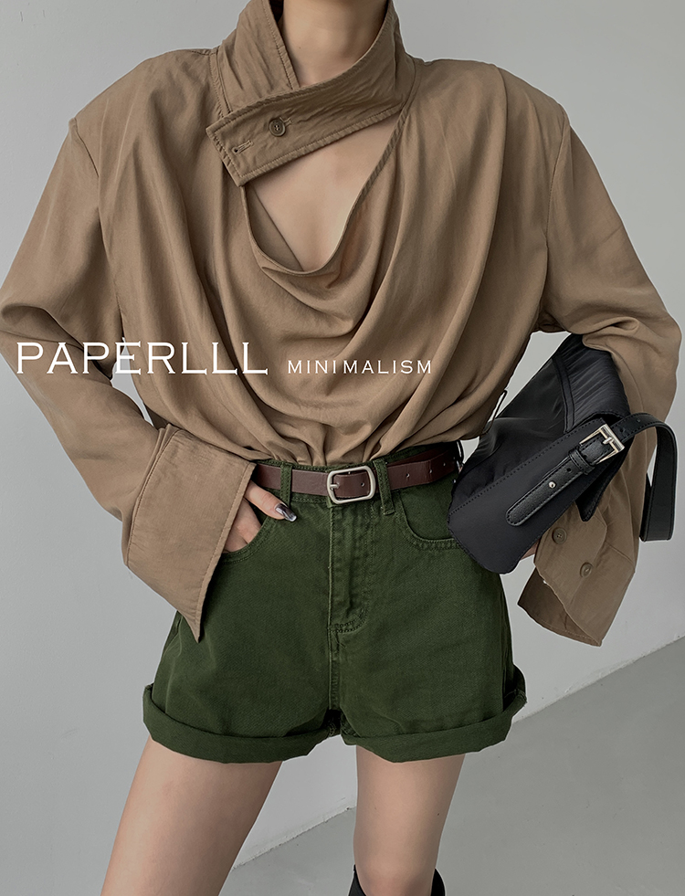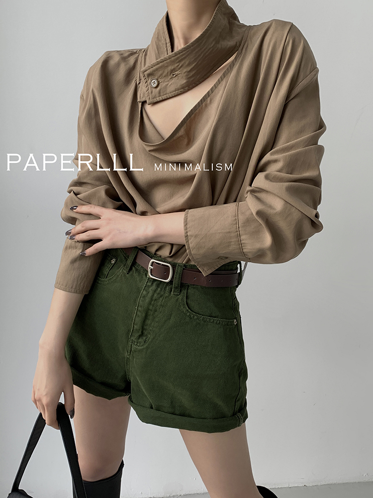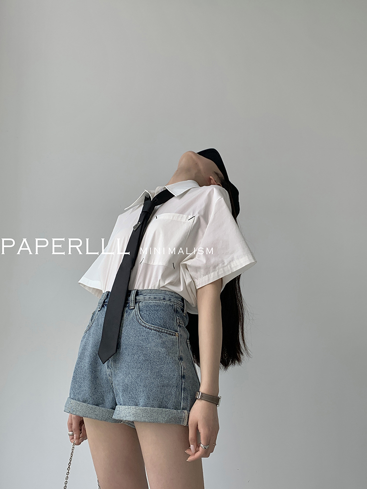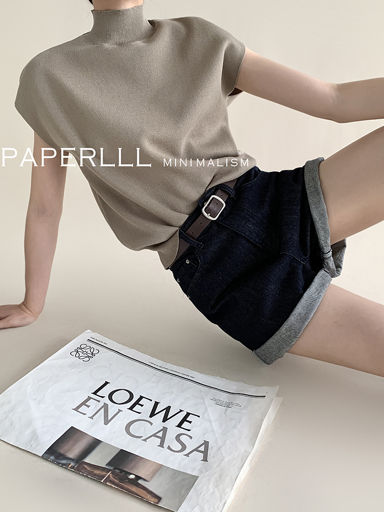 Paperlll Xinjian 2025 New A-Line Retro American High-Waisted Hot Pants Rolled Hem Denim Shorts for Women Summer