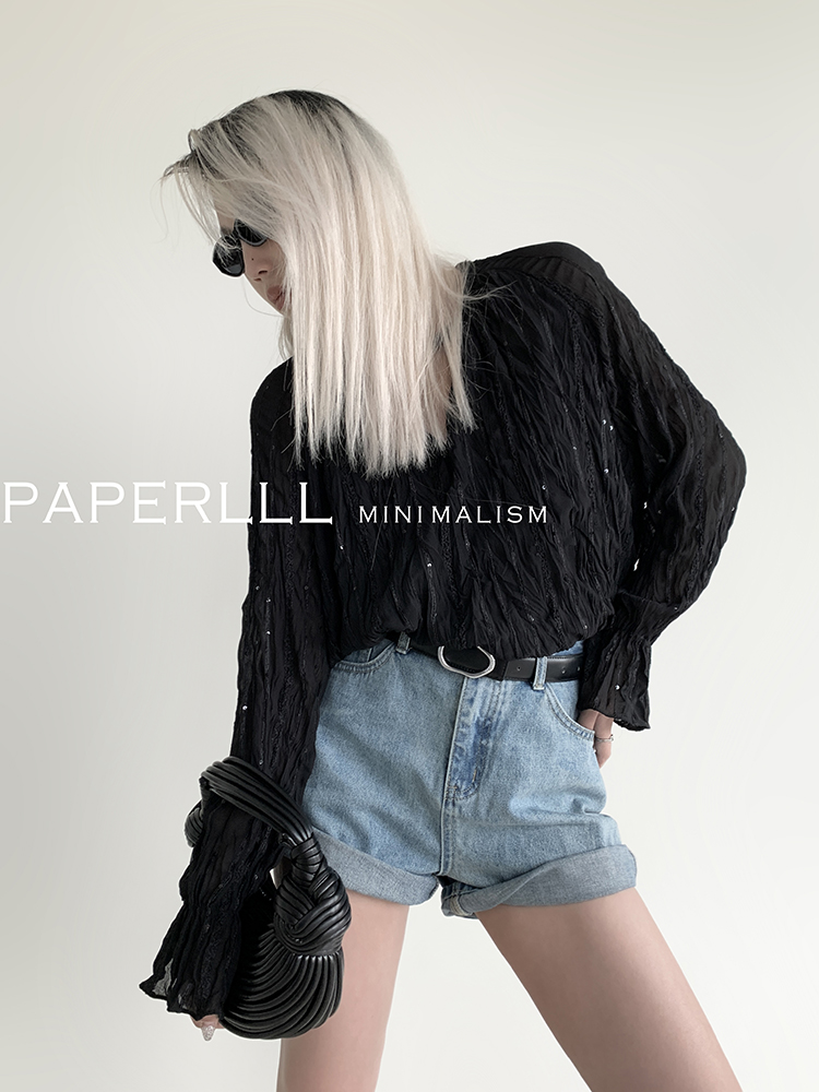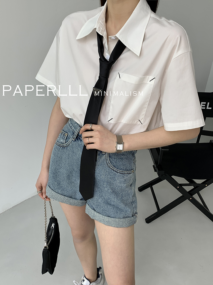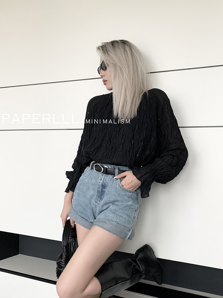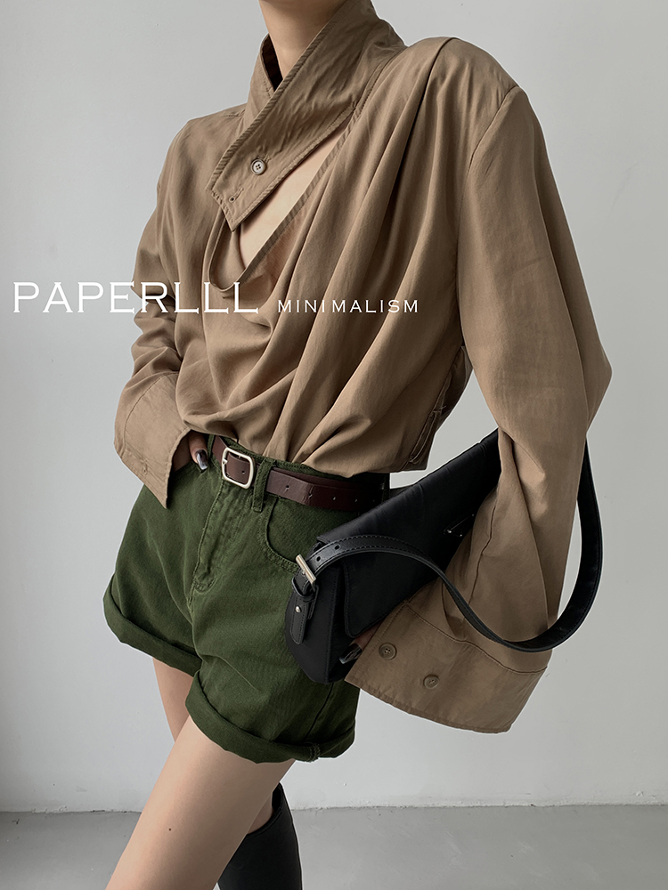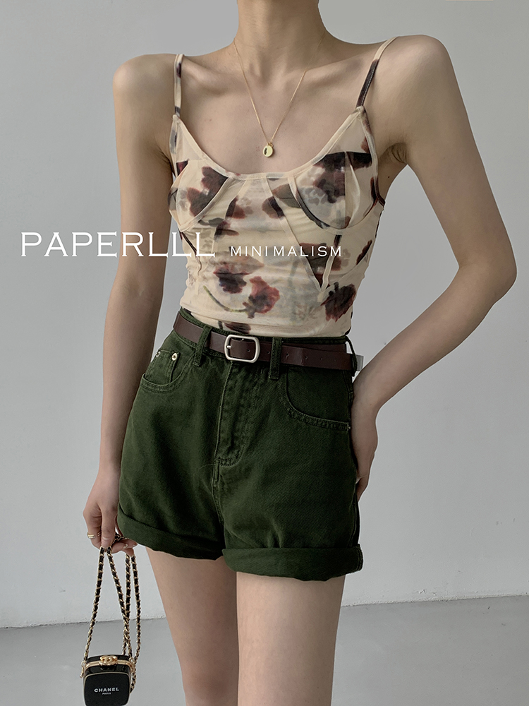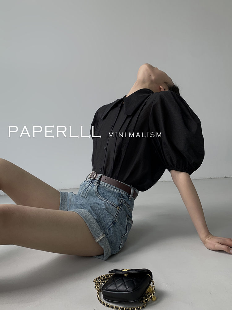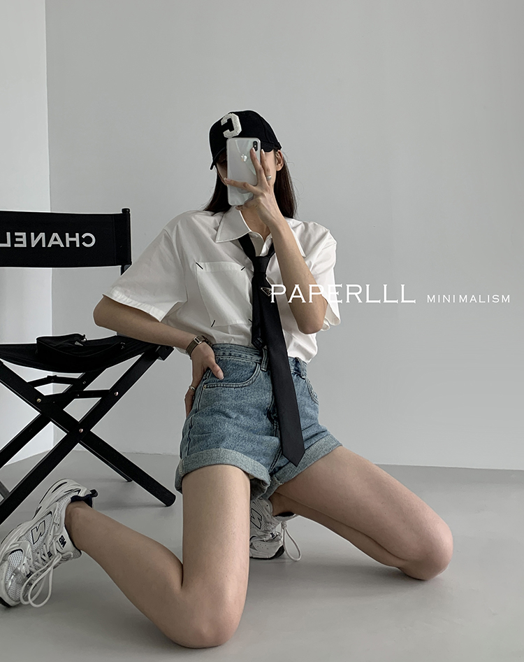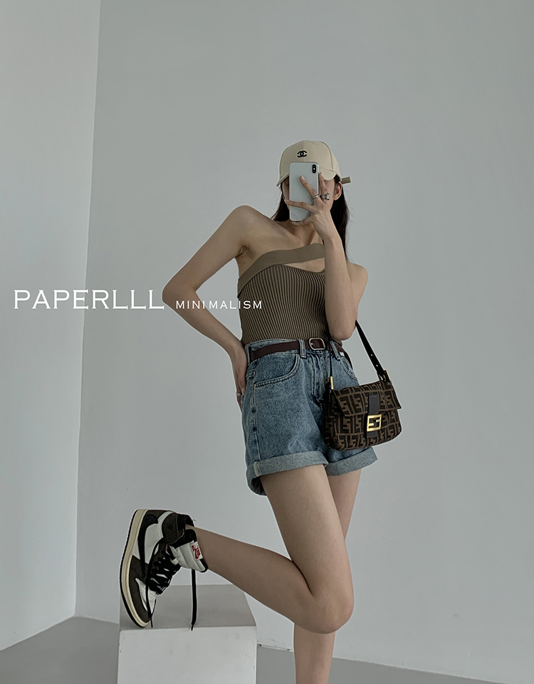 Paperlll Xinjian 2025 New A-Line Retro American High-Waisted Hot Pants Rolled Hem Denim Shorts for Women Summer