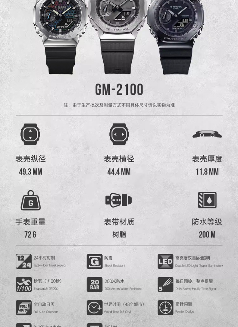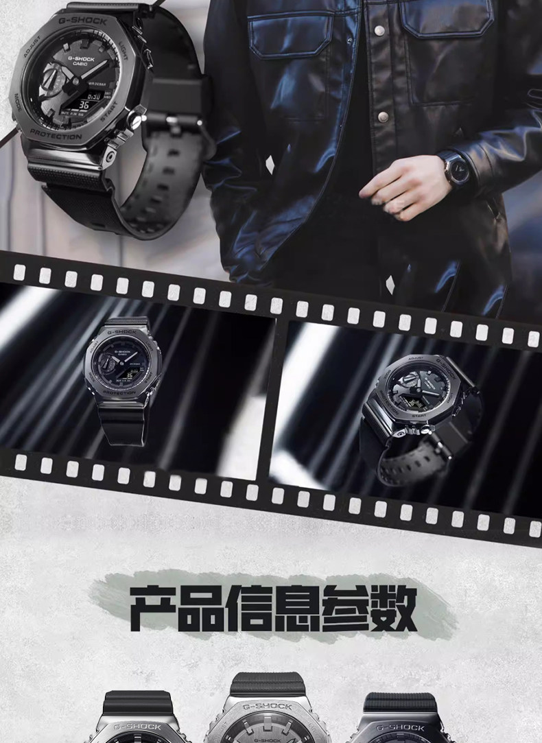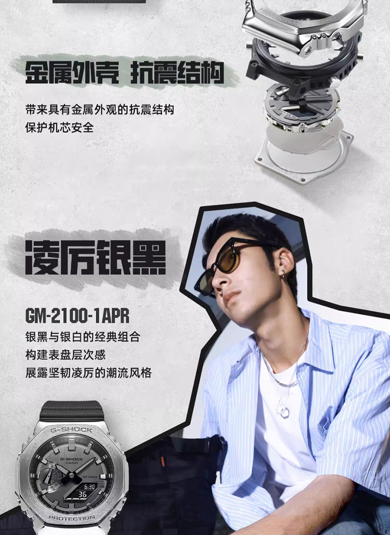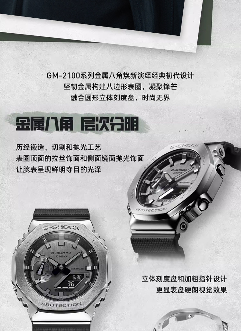 Casio Watch for Men Gm-2100 Metal Octagonal Black Warrior Sports Watch for Men G-Shock Gift for Boyfriend