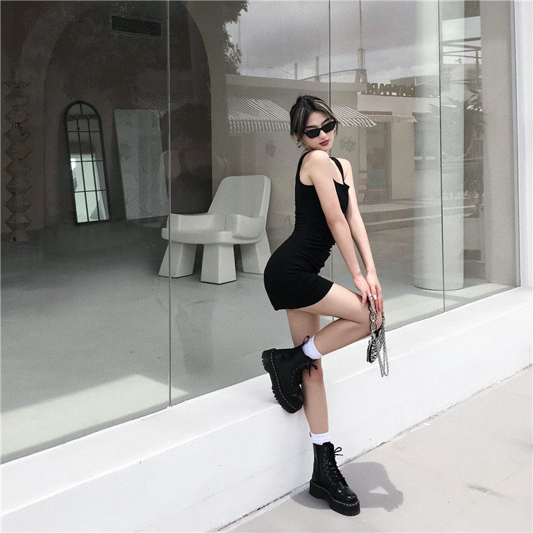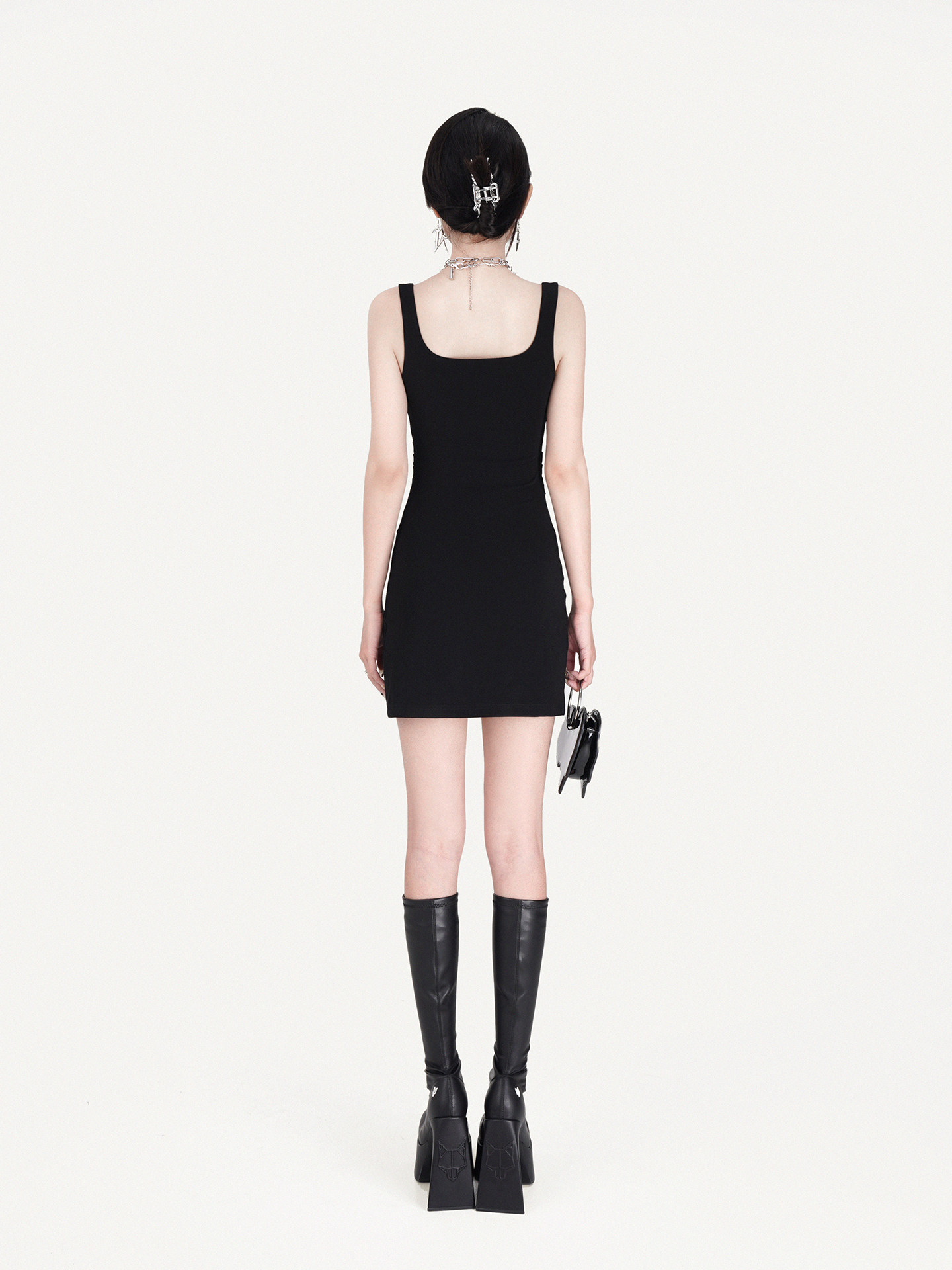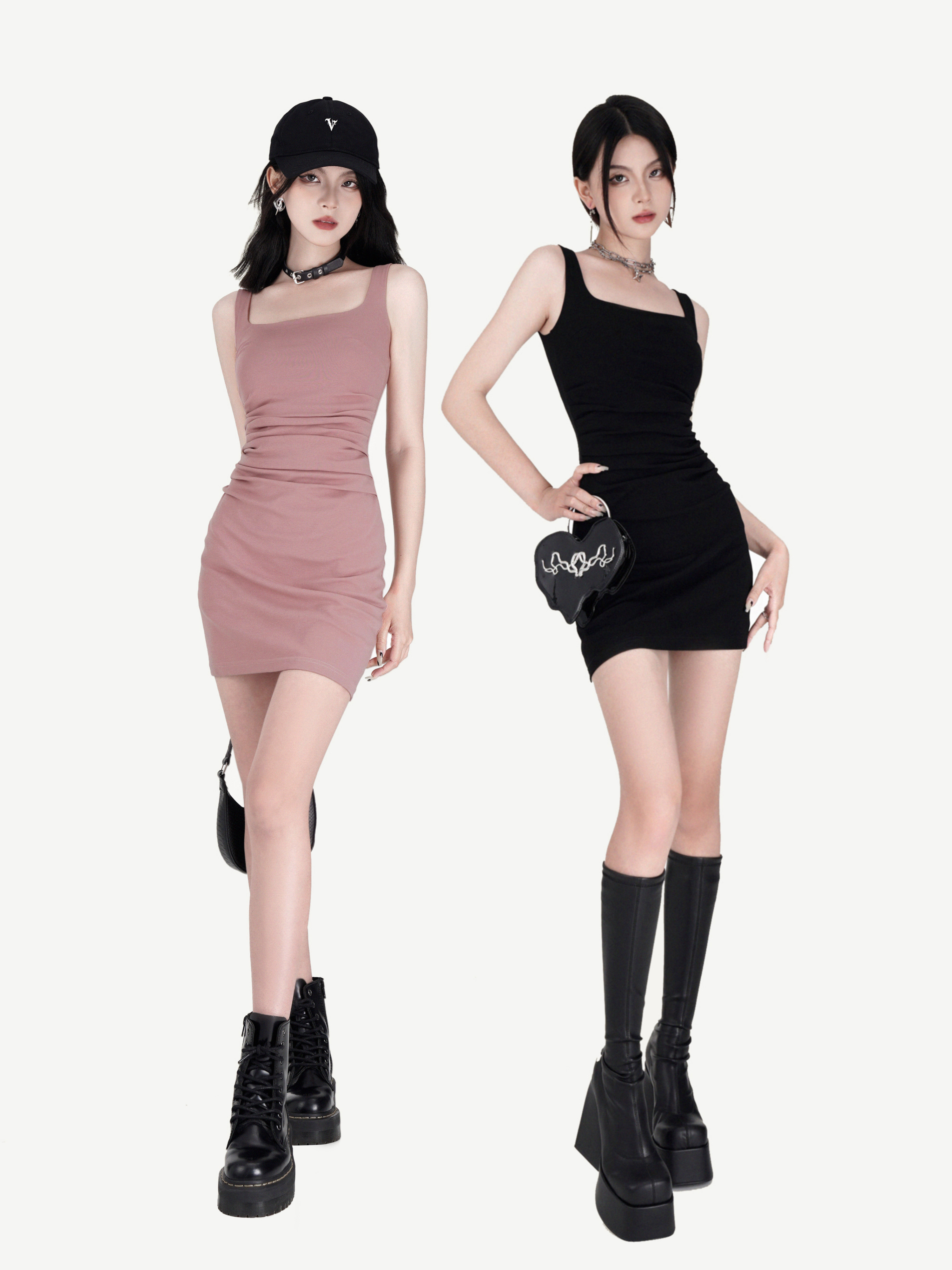 Vock Instant Slimming Pure Desire Hot Girl Square Neck Stretch Slimming Bodycon Black Dress Strap Dress for Women