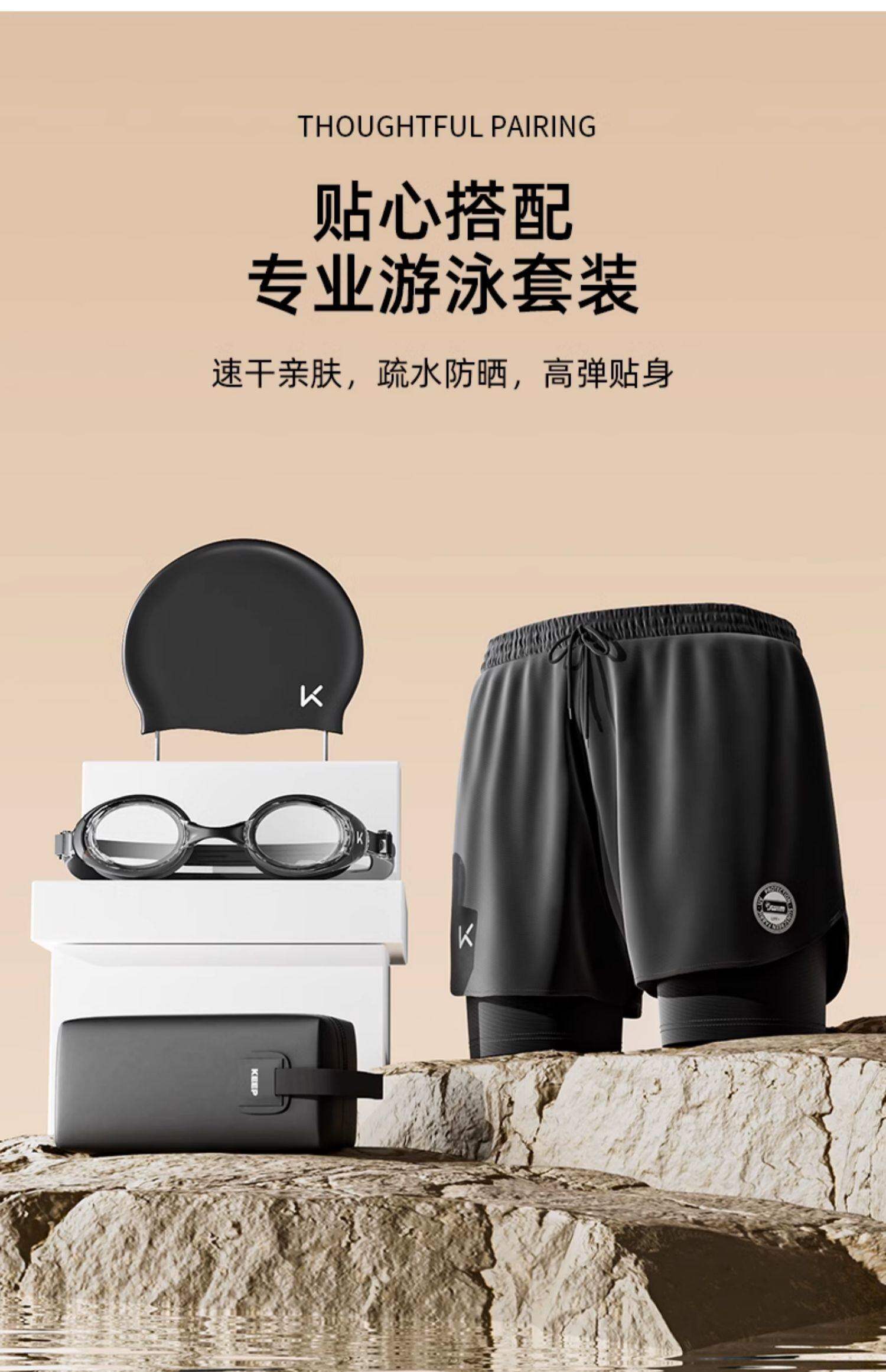 Keep Swimming Trunks for Men, Anti-Embarrassment 2026 New Style Boxer Swimming Trunks, Professional Large Size Hot Spring Swimming Full Set of Equipment