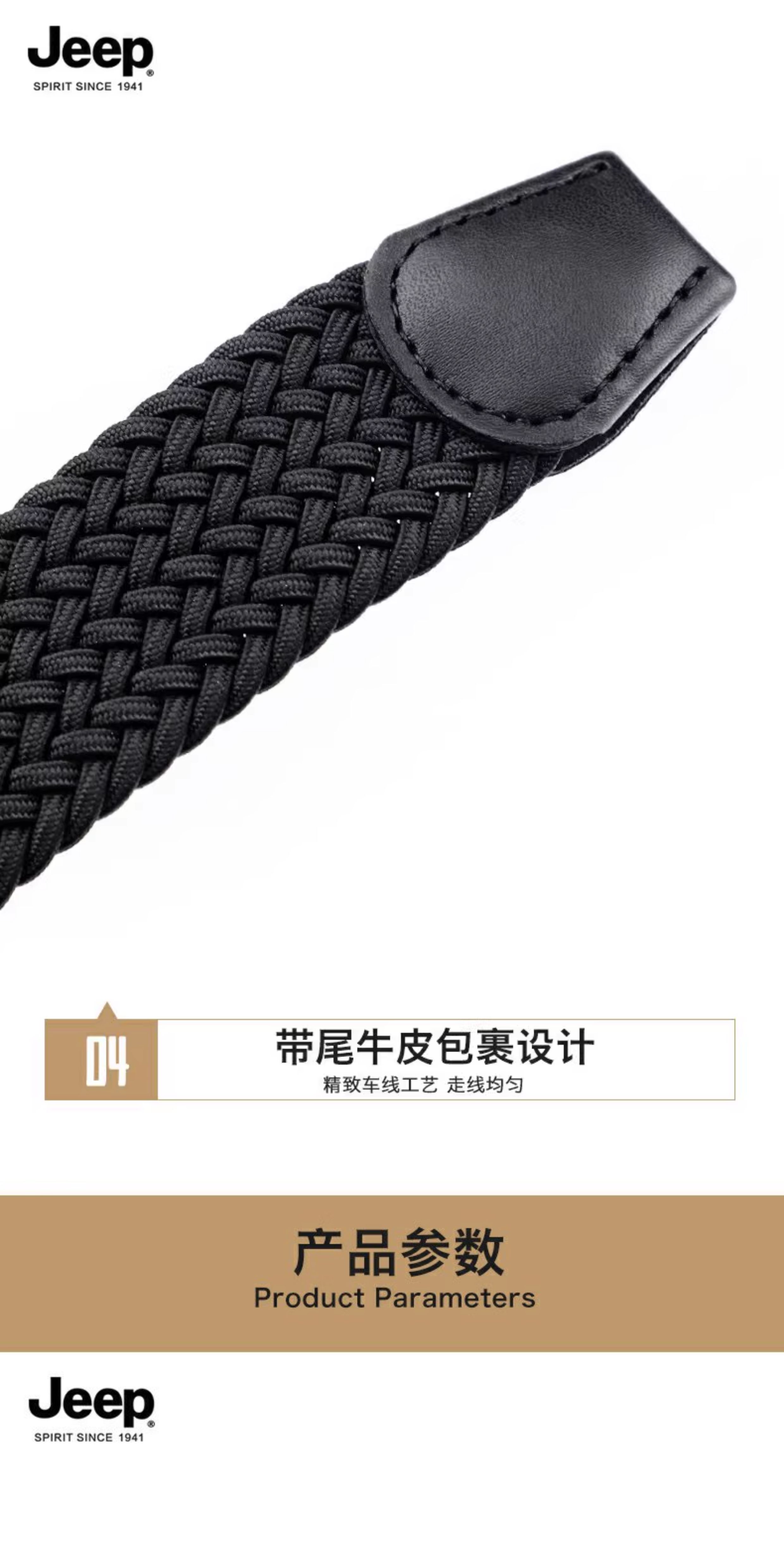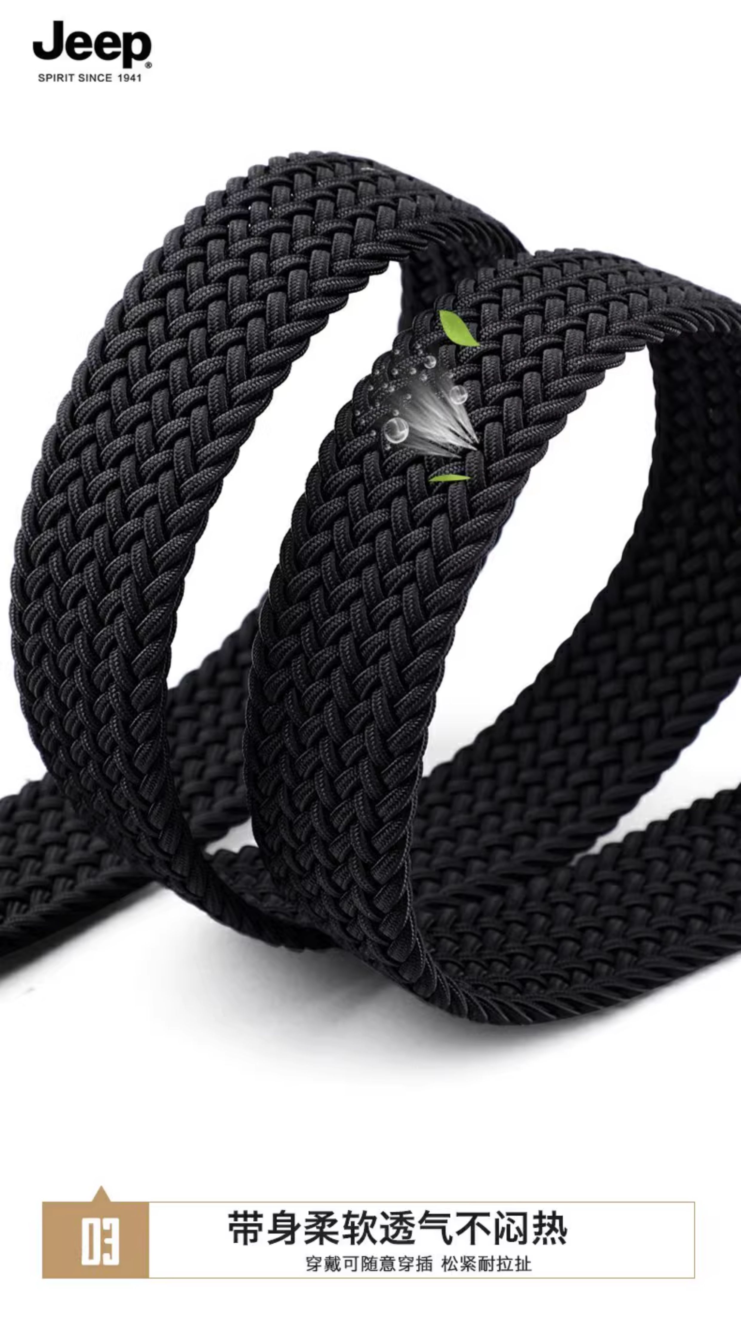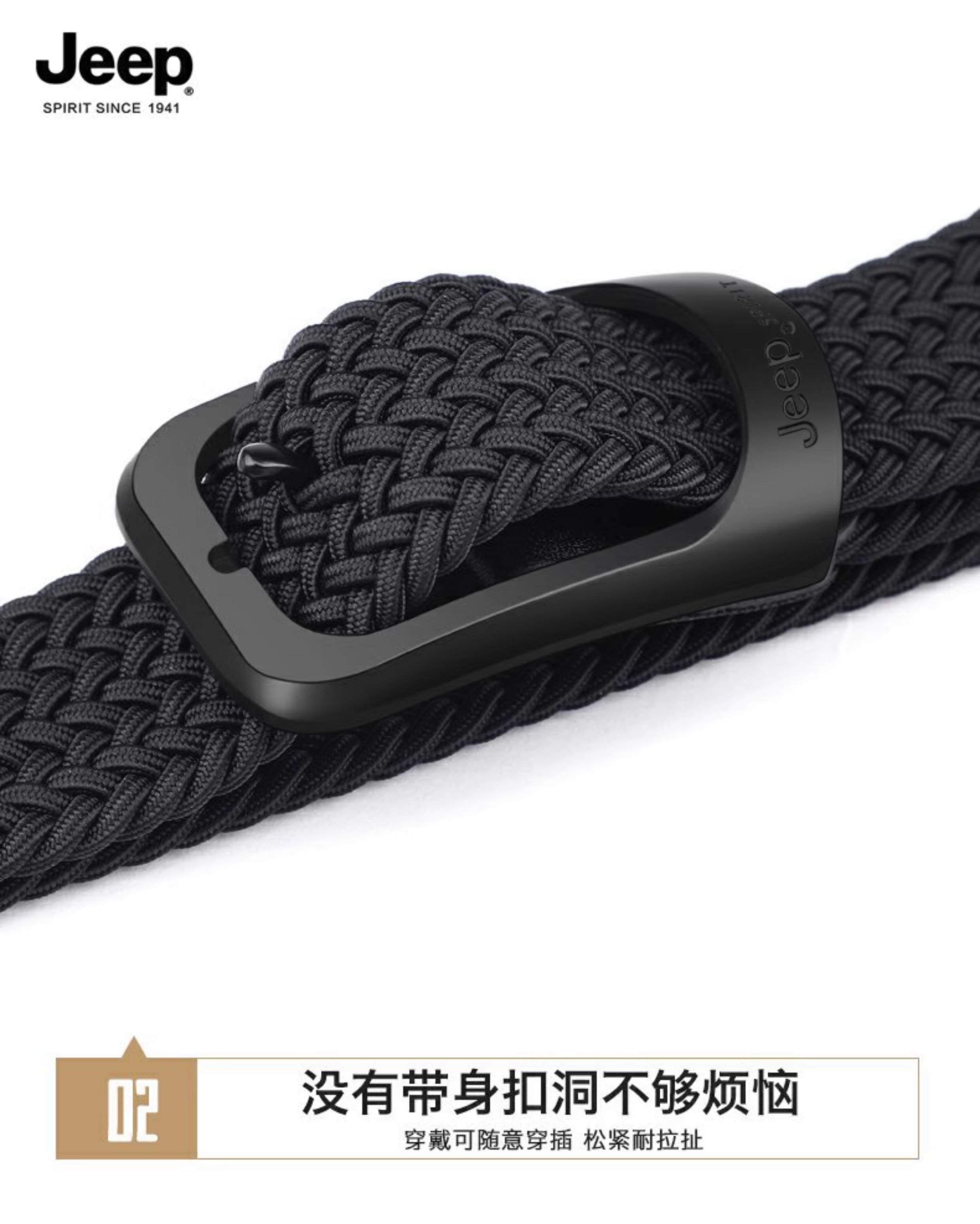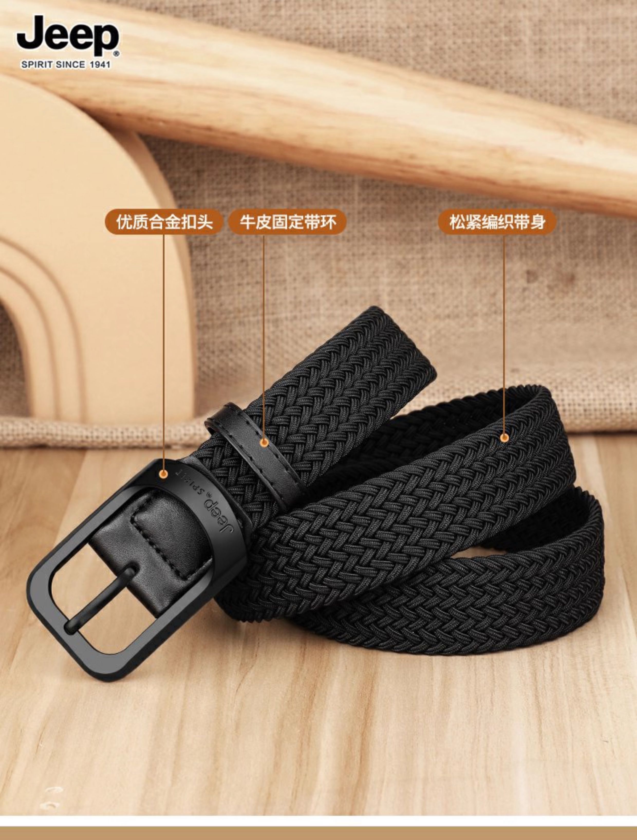Jeep Tactical Summer Elastic Woven No-Punch Belt for Men and Women, Trendy Elastic Military Training Canvas Belt