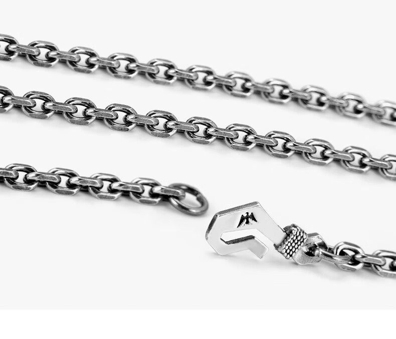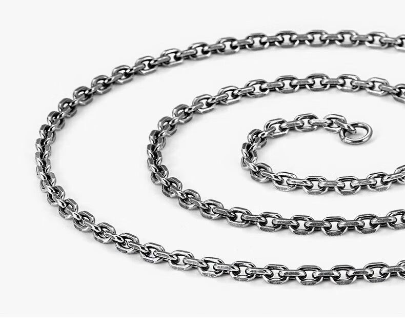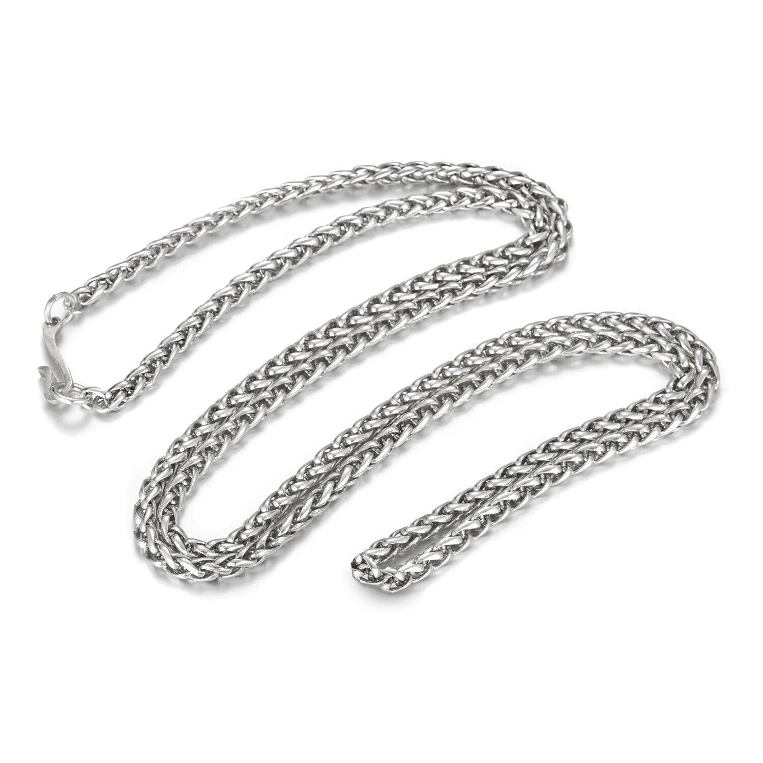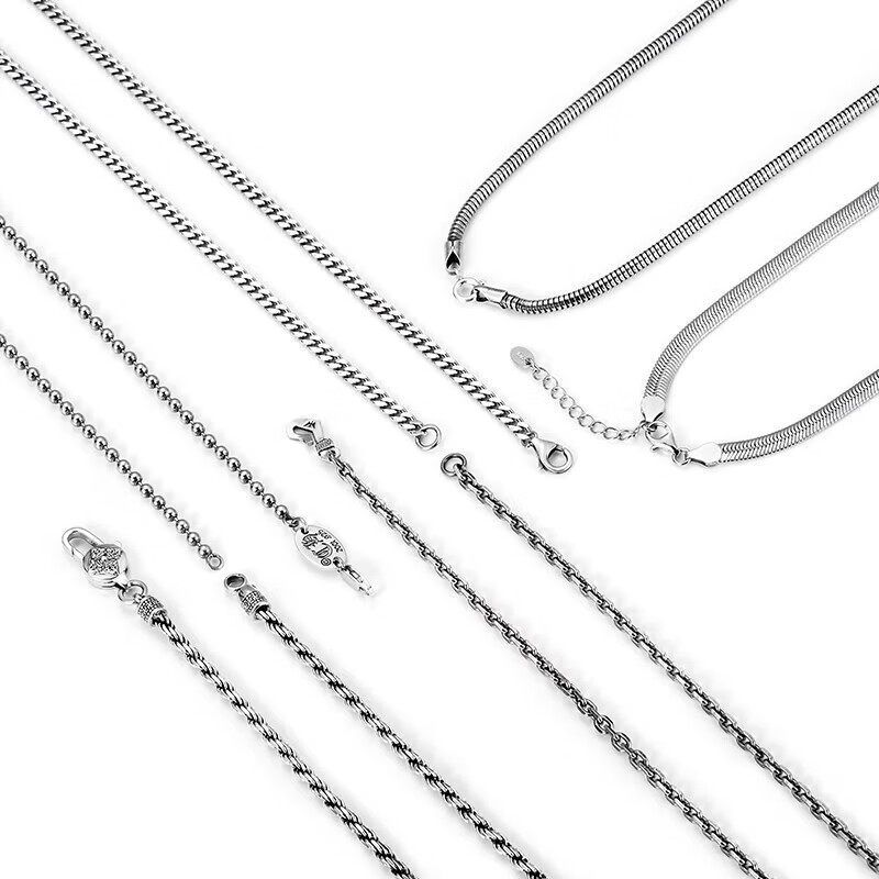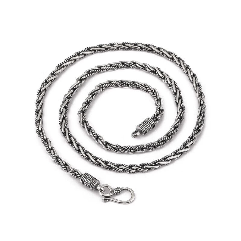 Sterling Silver Necklace for Men, Too-Long Chain, Fashionable Wheat Spike Chain, Vintage Keel Chain, Bright Silver Single Chain, Plain Chain, Gift for Others