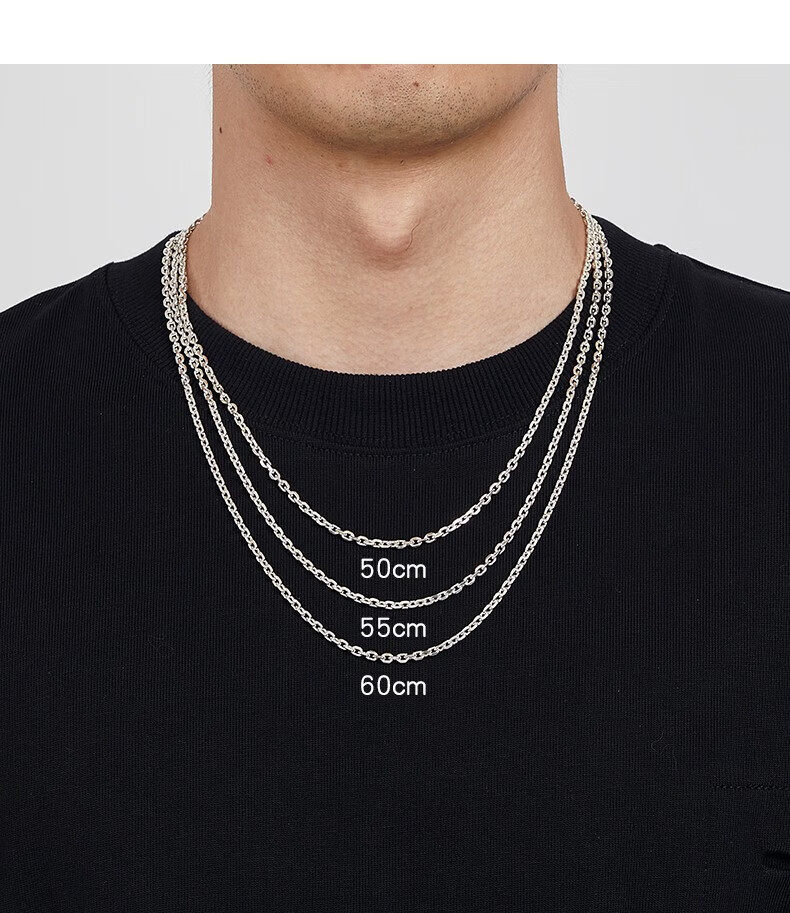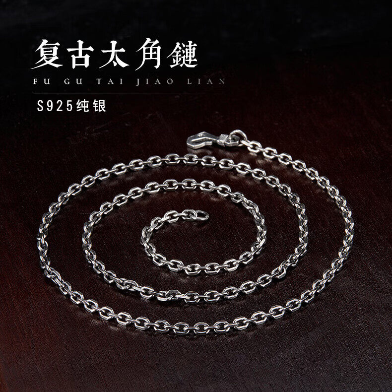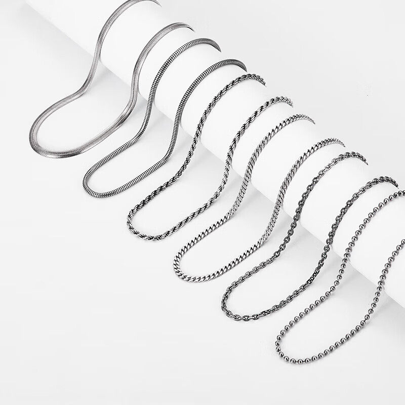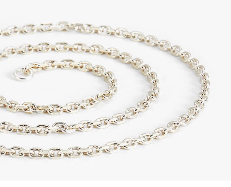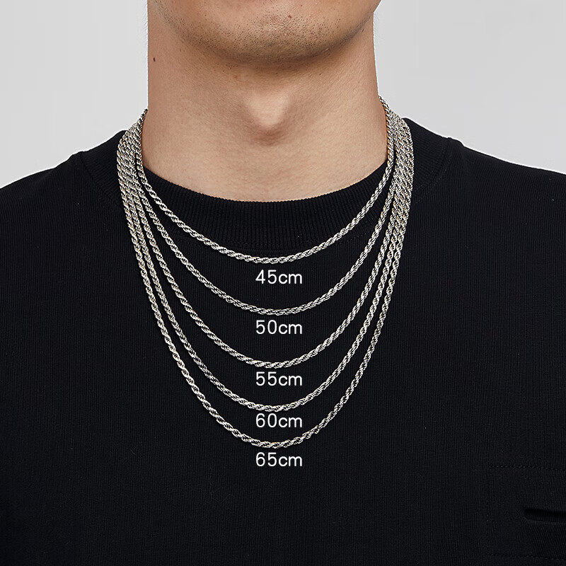 Sterling Silver Necklace for Men, Too-Long Chain, Fashionable Wheat Spike Chain, Vintage Keel Chain, Bright Silver Single Chain, Plain Chain, Gift for Others