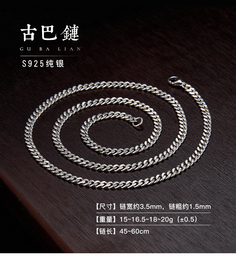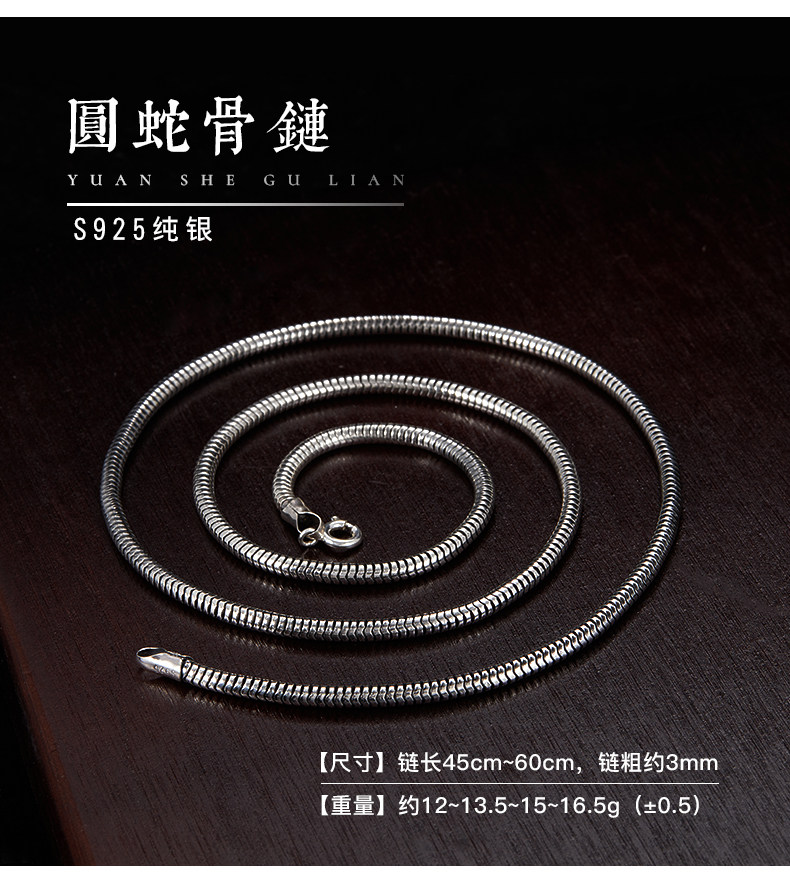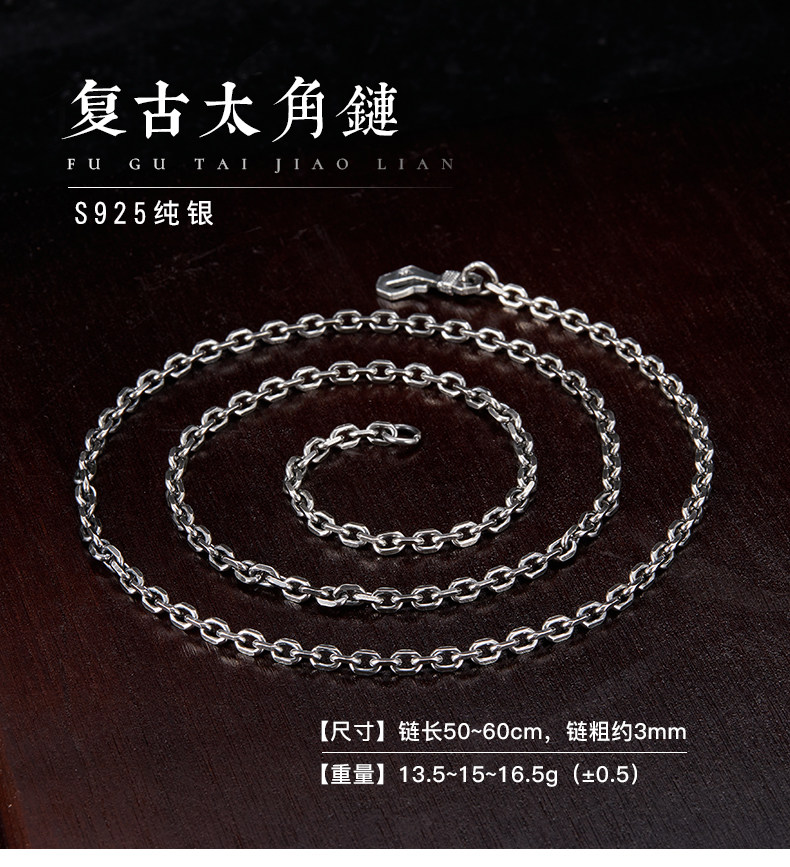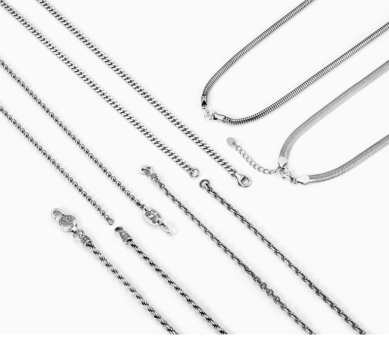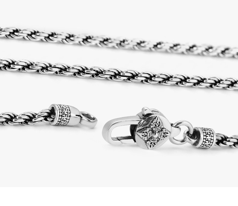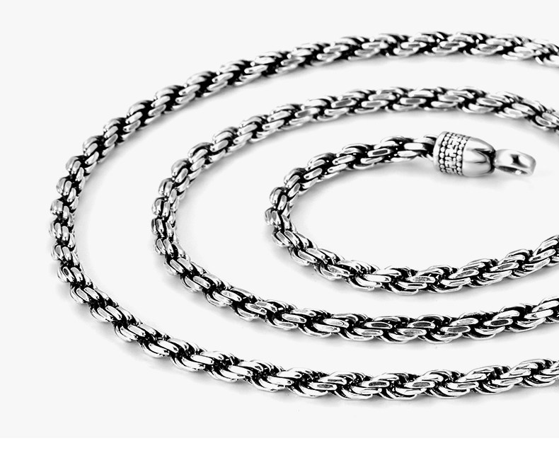 Sterling Silver Necklace for Men, Too-Long Chain, Fashionable Wheat Spike Chain, Dragon Bone Chain, Vintage Neck Chain, Clavicle Chain, Single Chain, Unisex Plain Chain