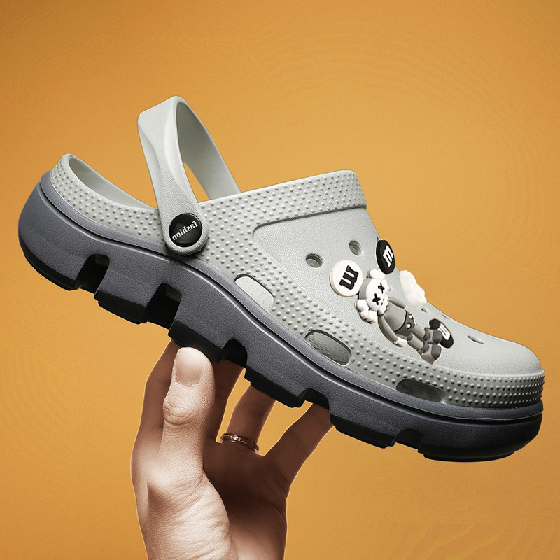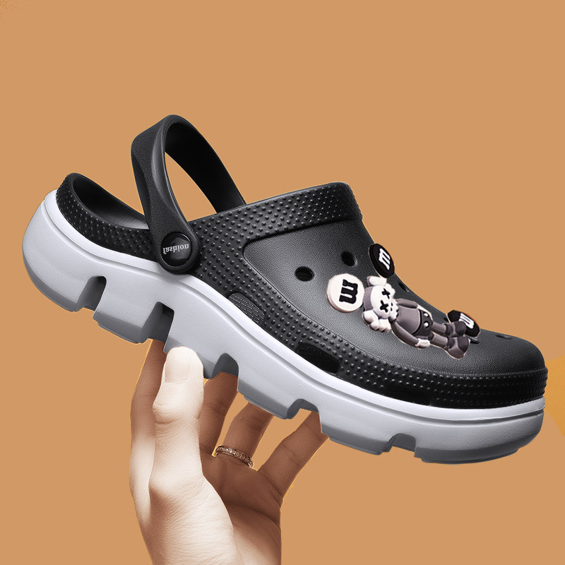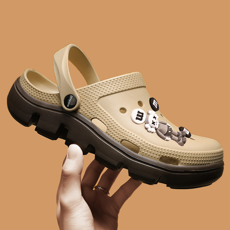 Baotou Slippers for Men, Summer Outdoor Wear, Non-Slip, Waterproof, Wear-Resistant, Sandals for Driving, Sports, Leisure, Beach, Hole Sandals