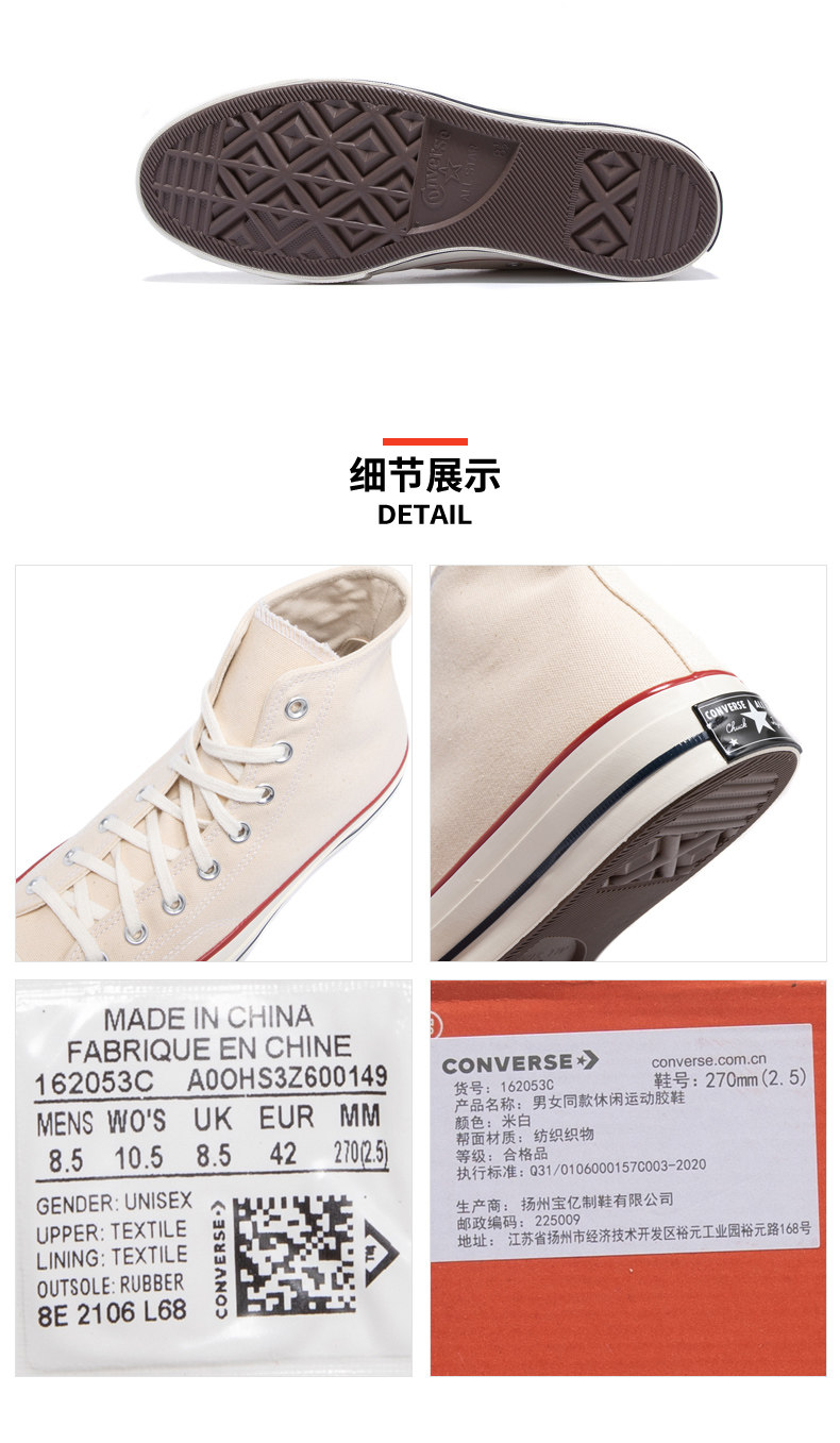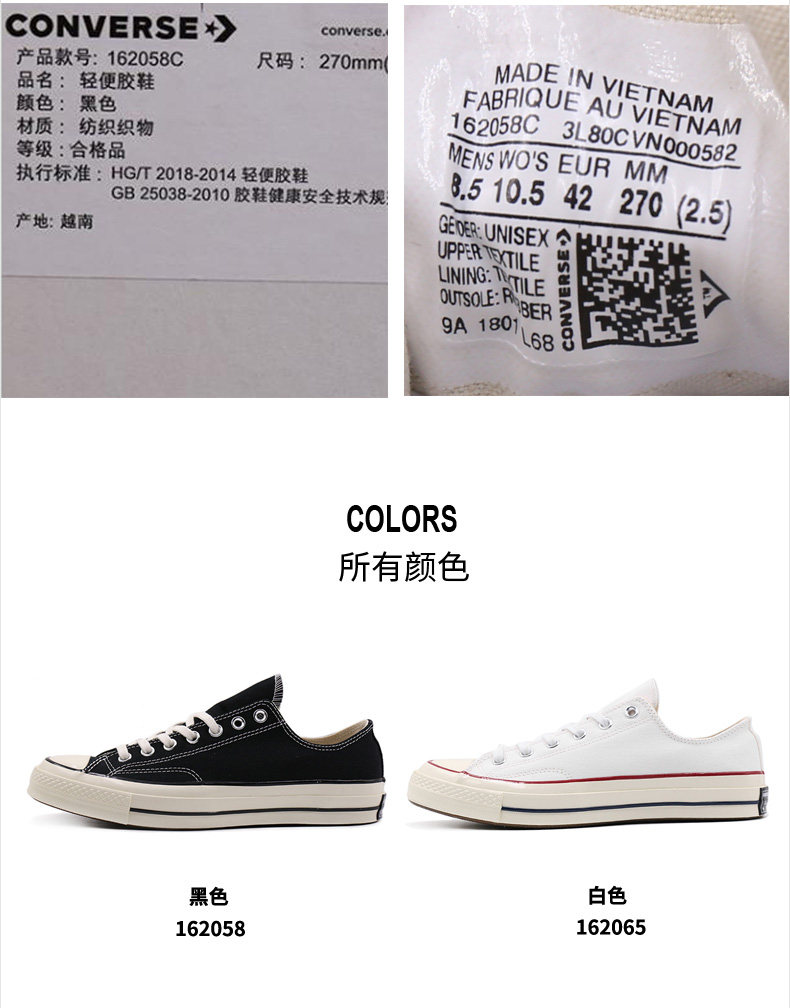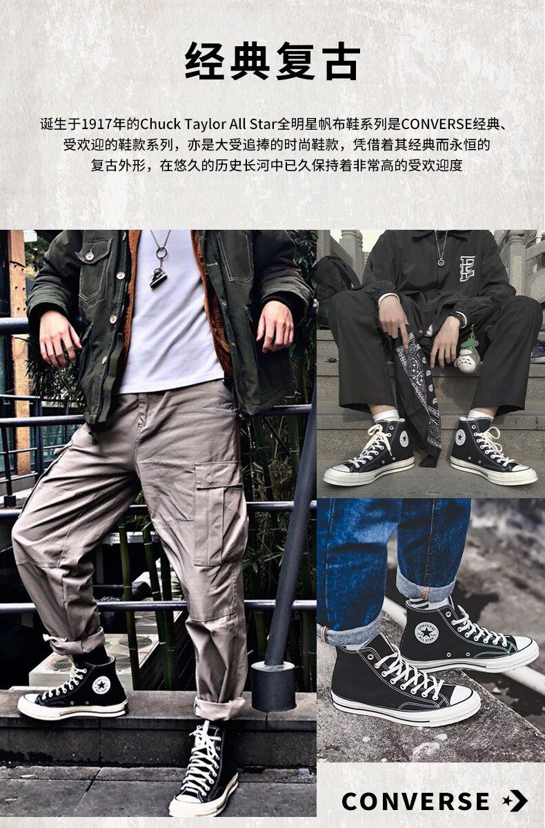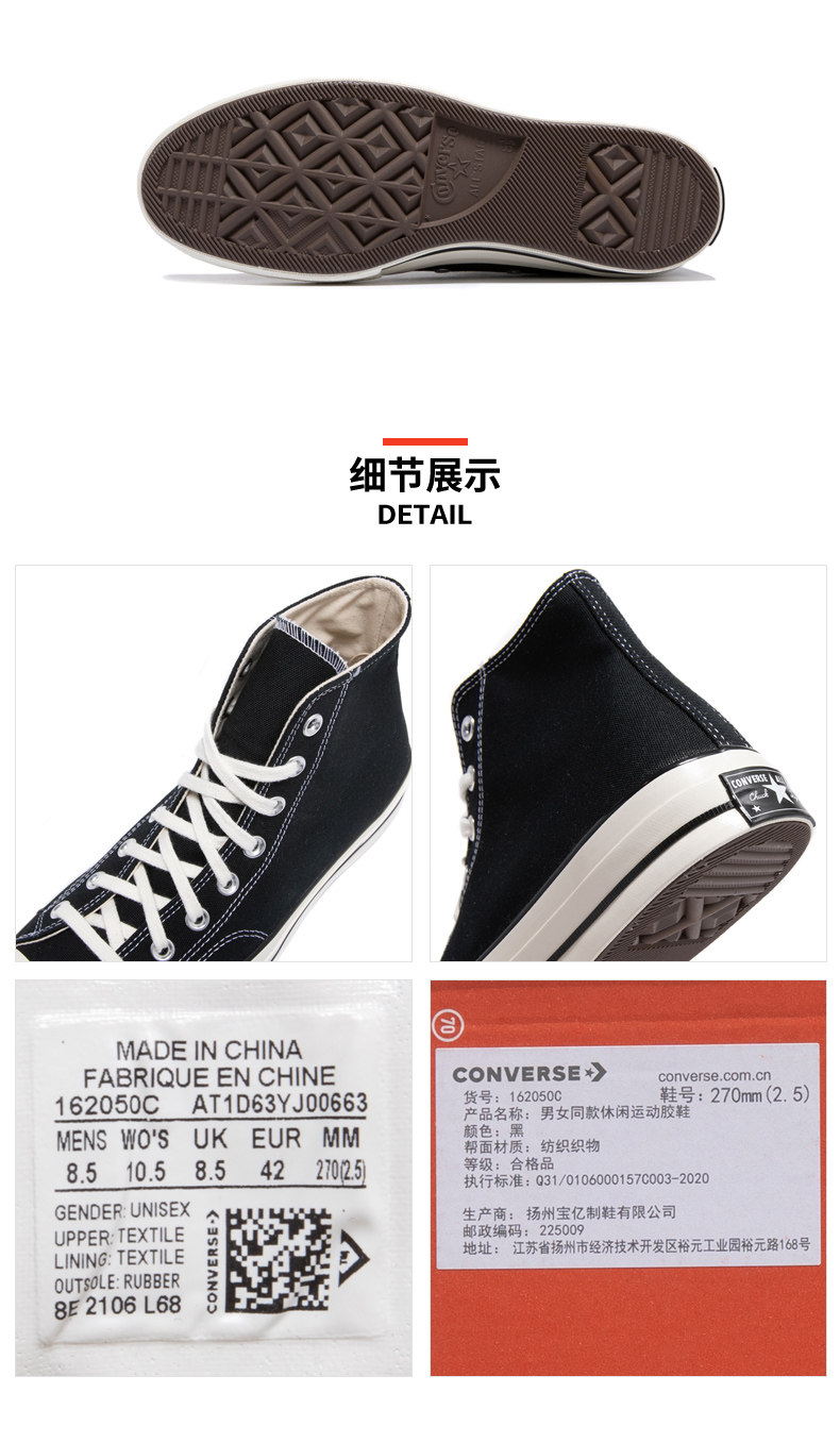 Converse Women's Shoes Men's Shoes Official Flagship Genuine Classic Sneakers 1970S High-Top Casual Sports Black Canvas Shoes
