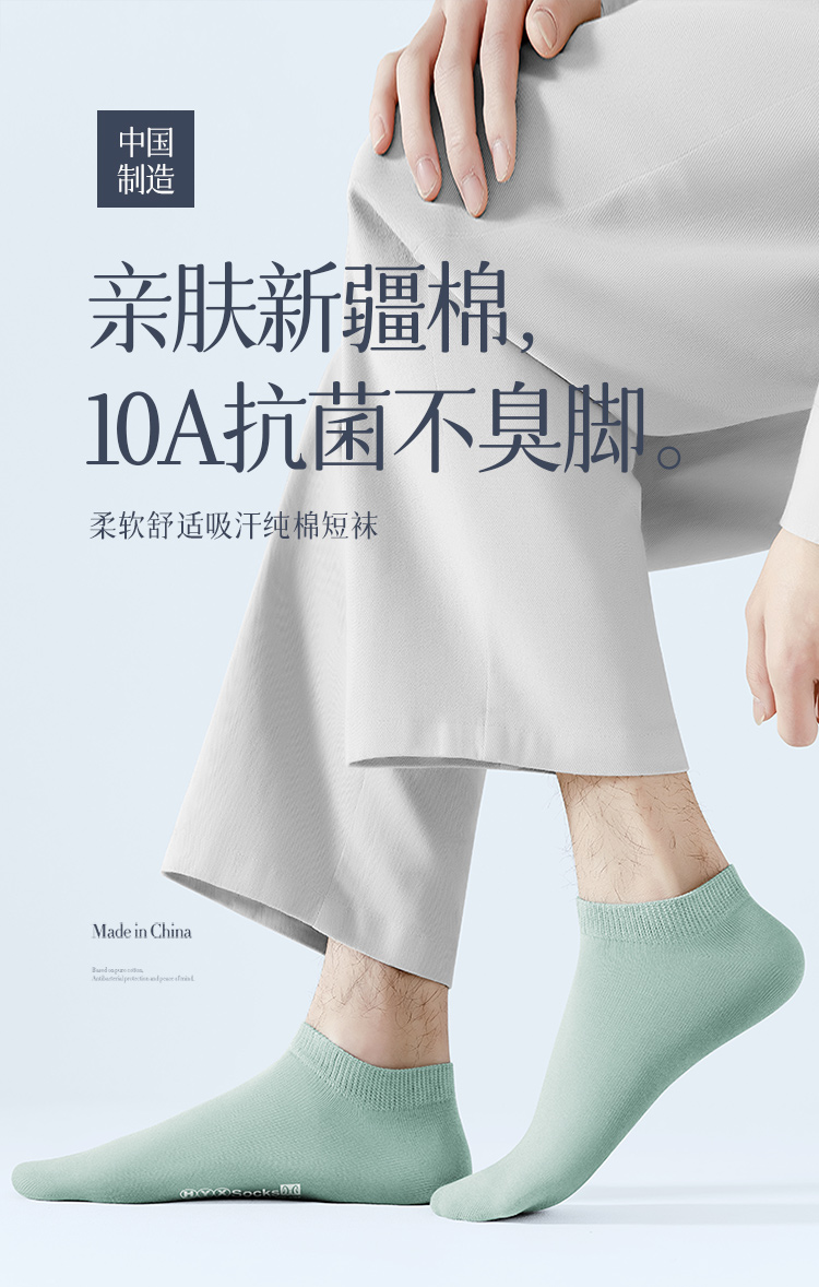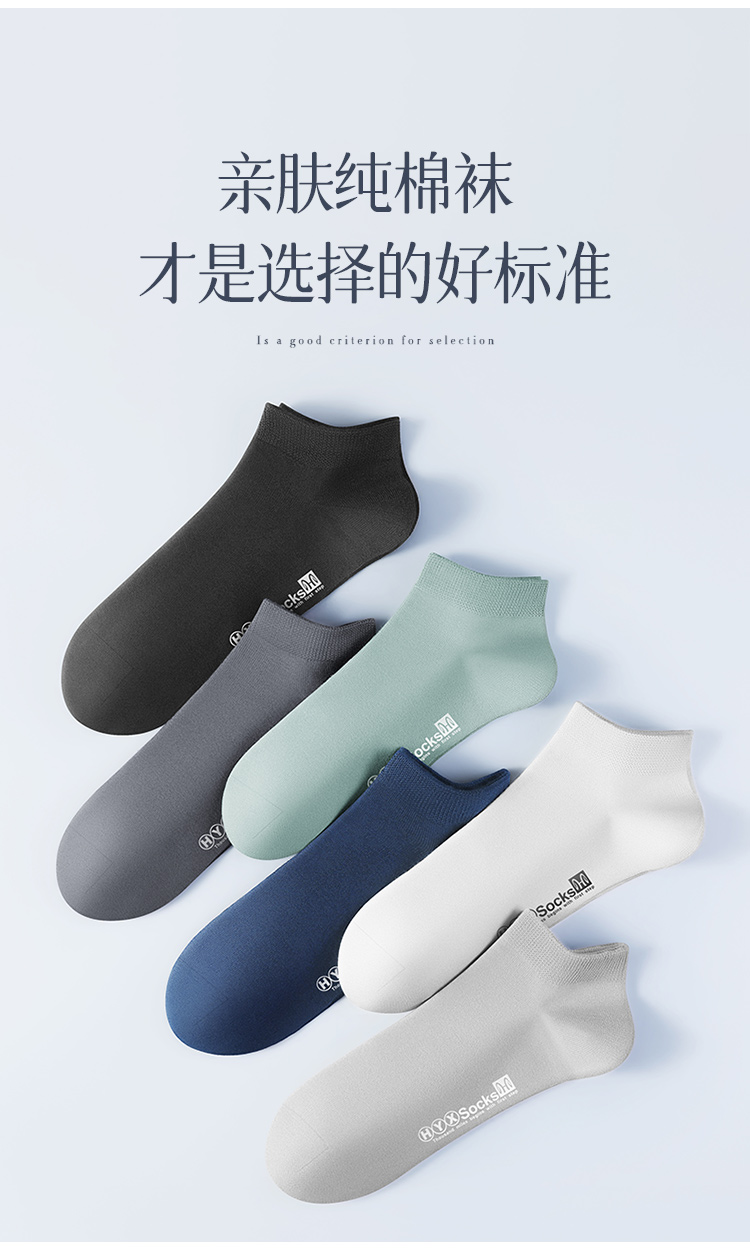 Hengyuanxiang Men's Socks, Short Socks, Autumn Pure Cotton, Summer 10A Antibacterial, Deodorant, Sweat-Absorbent, Breathable, 2025 Hot Style
