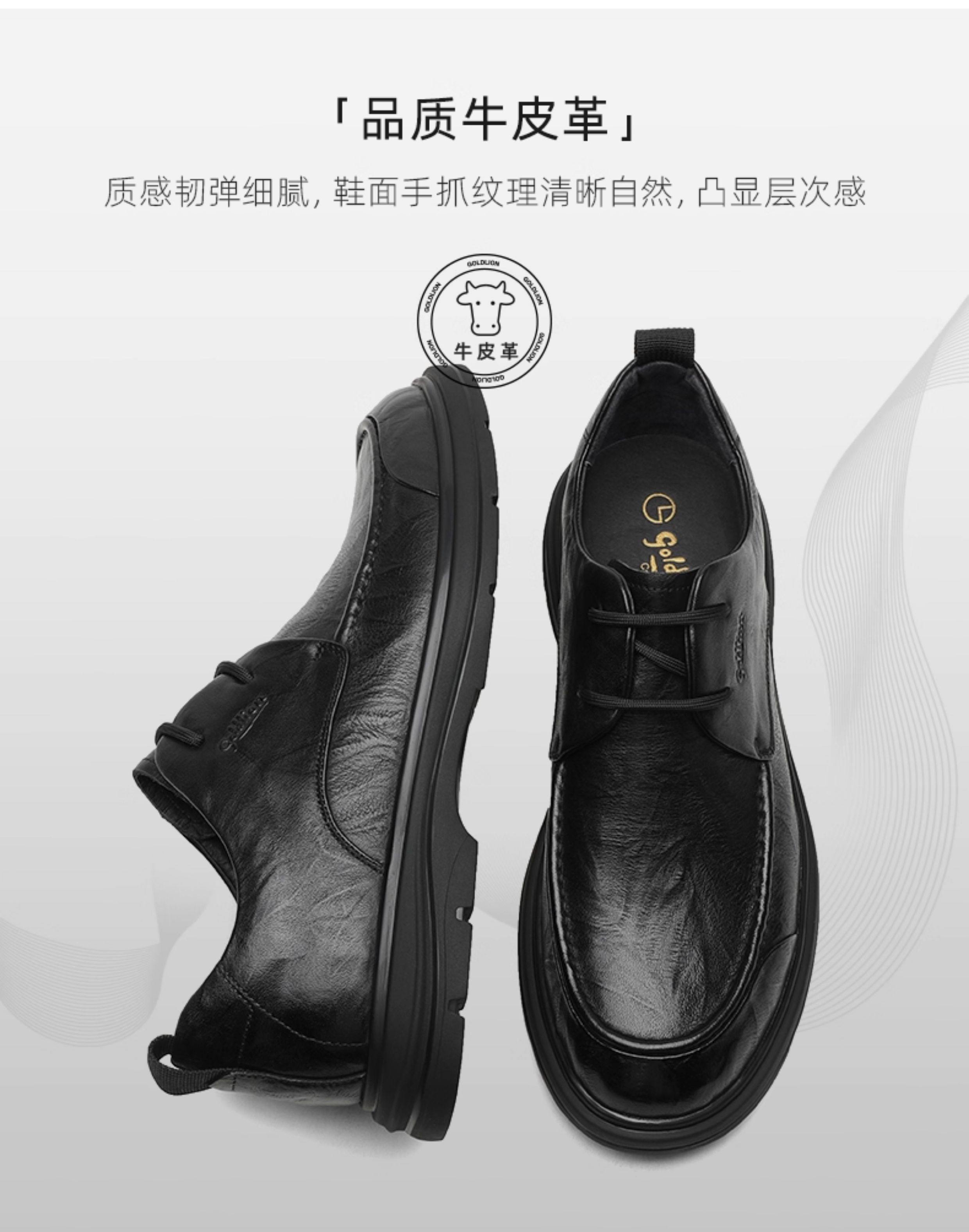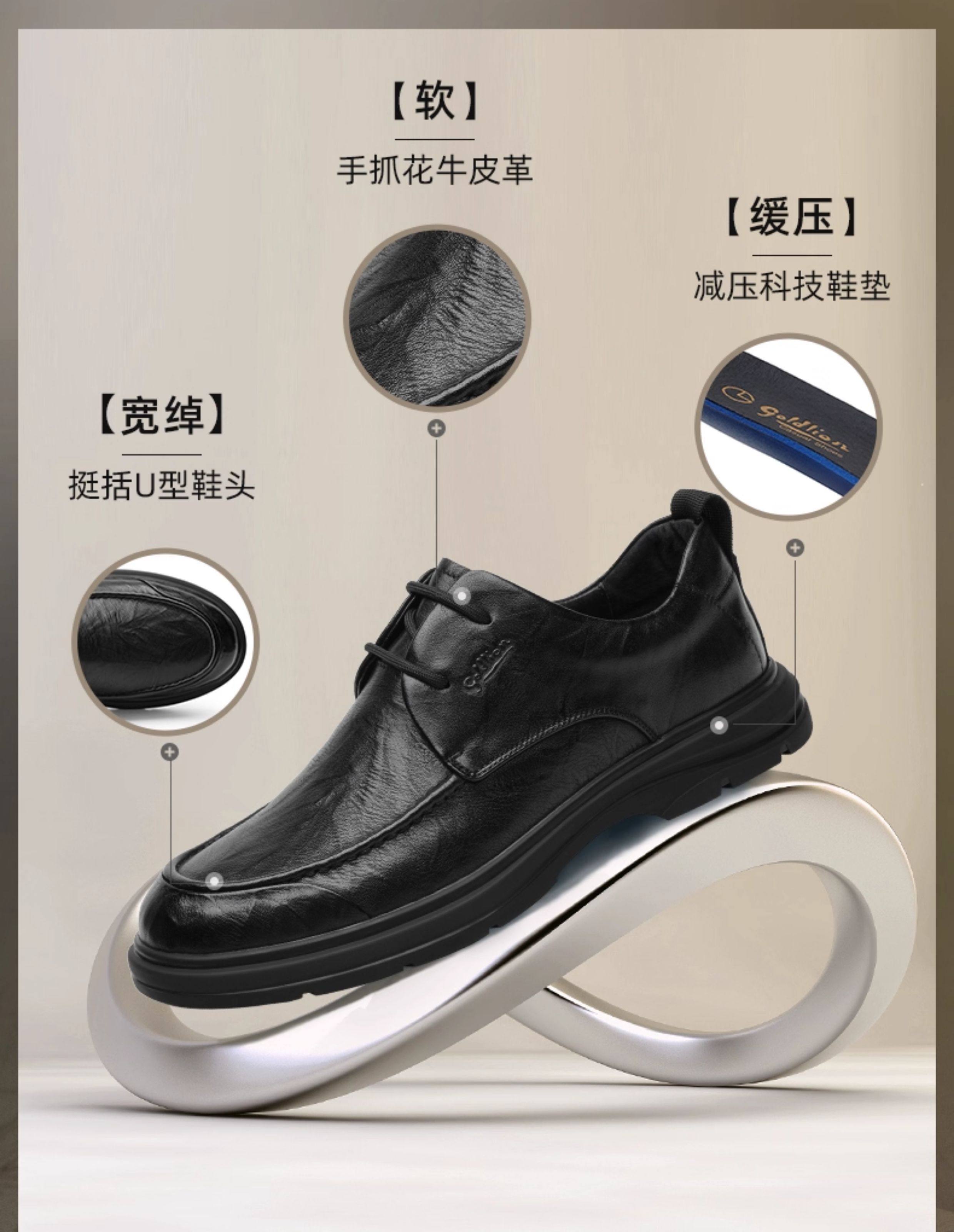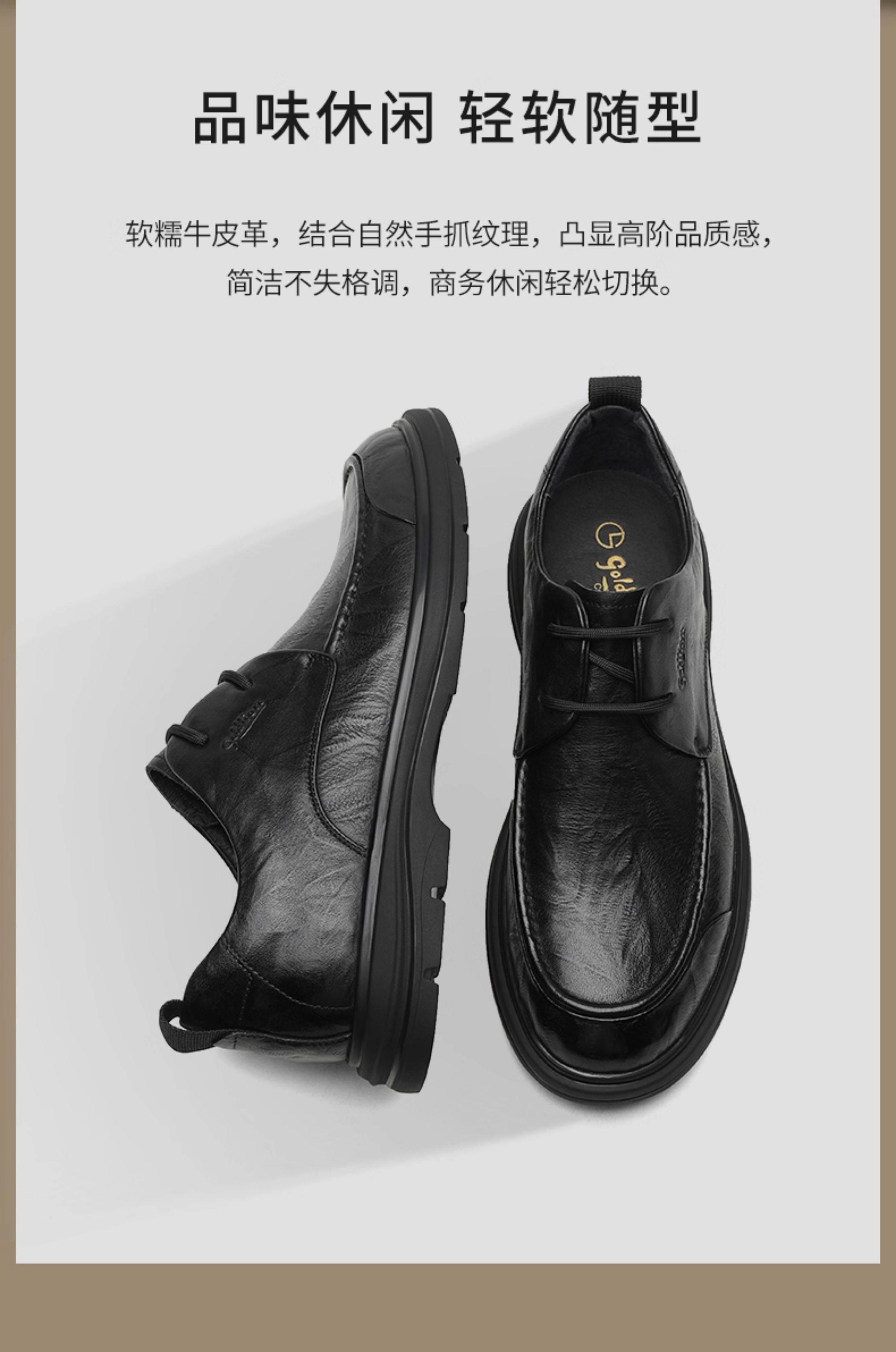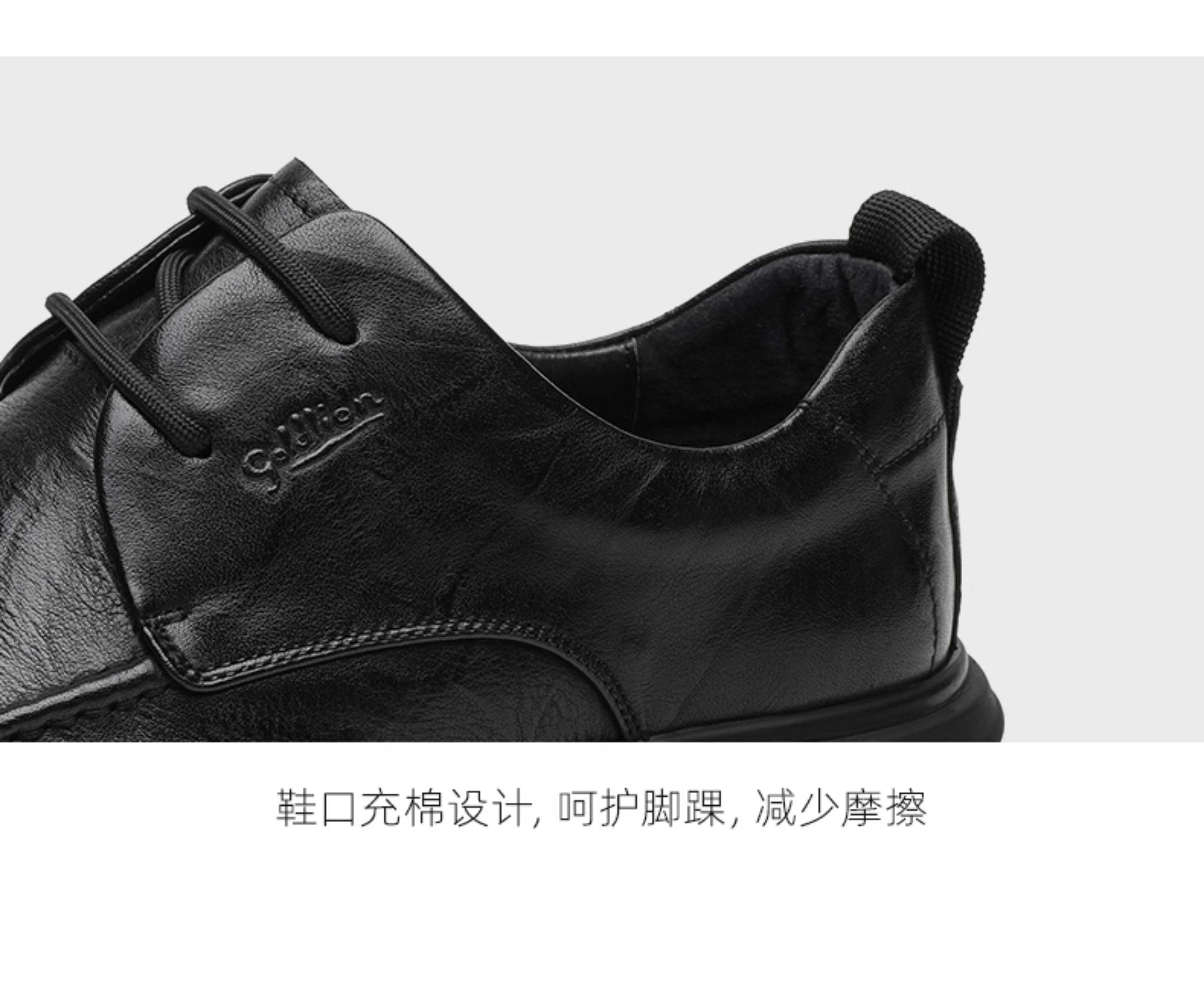 Goldlion Men's Genuine Leather Shoes, New Spring and Autumn Models, Comfortable Formal Business Casual Shoes, Round-Toe British Style Shoes