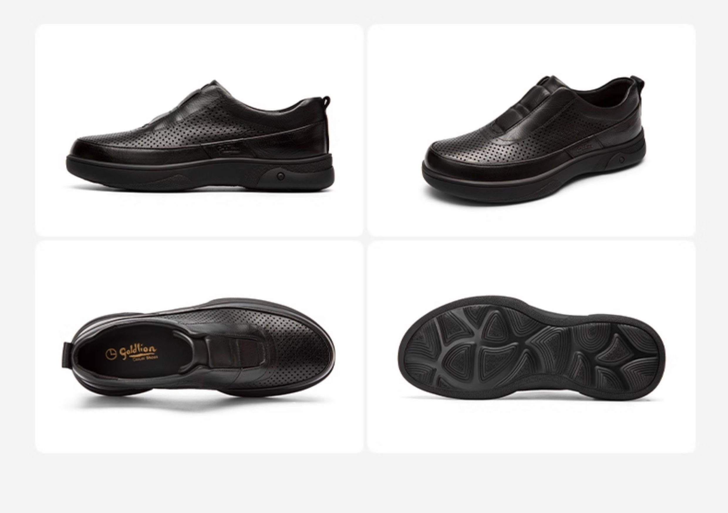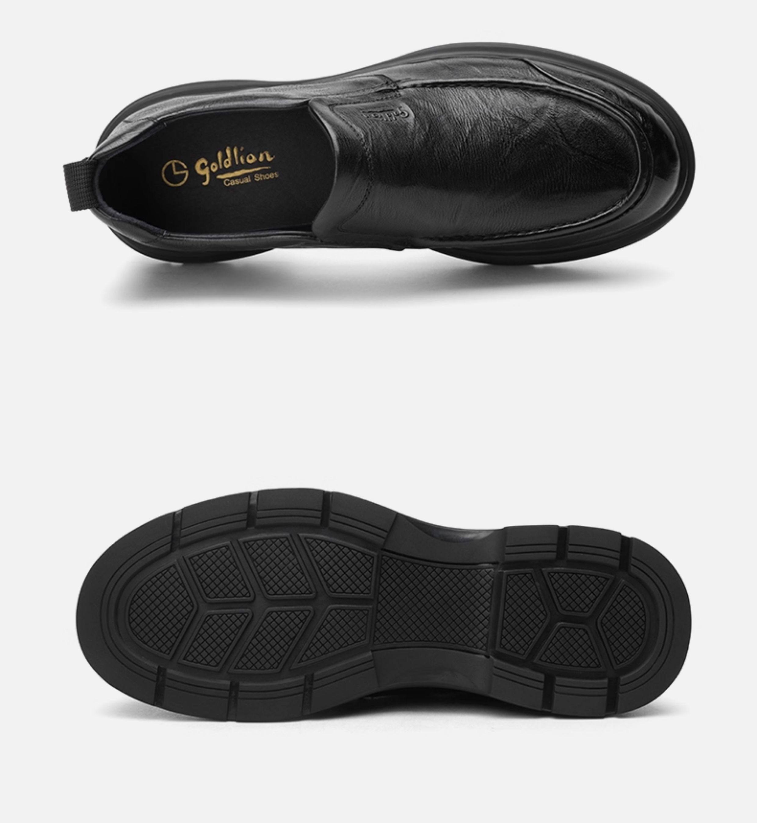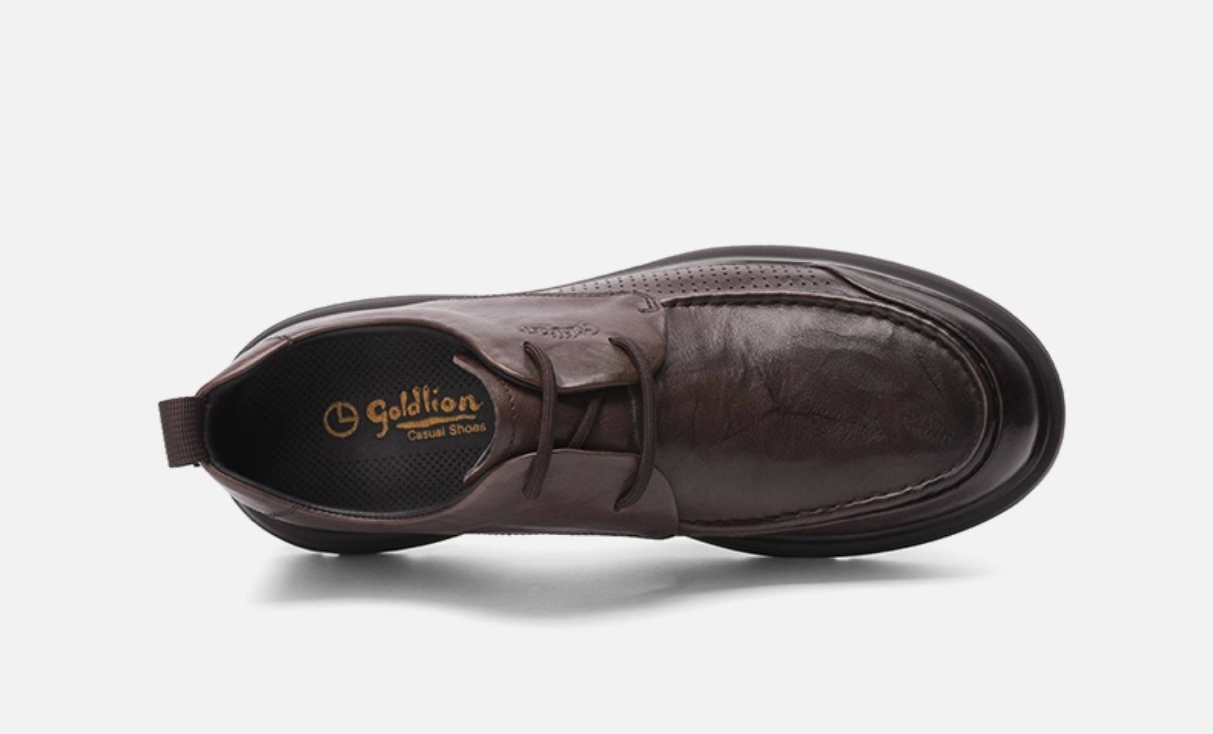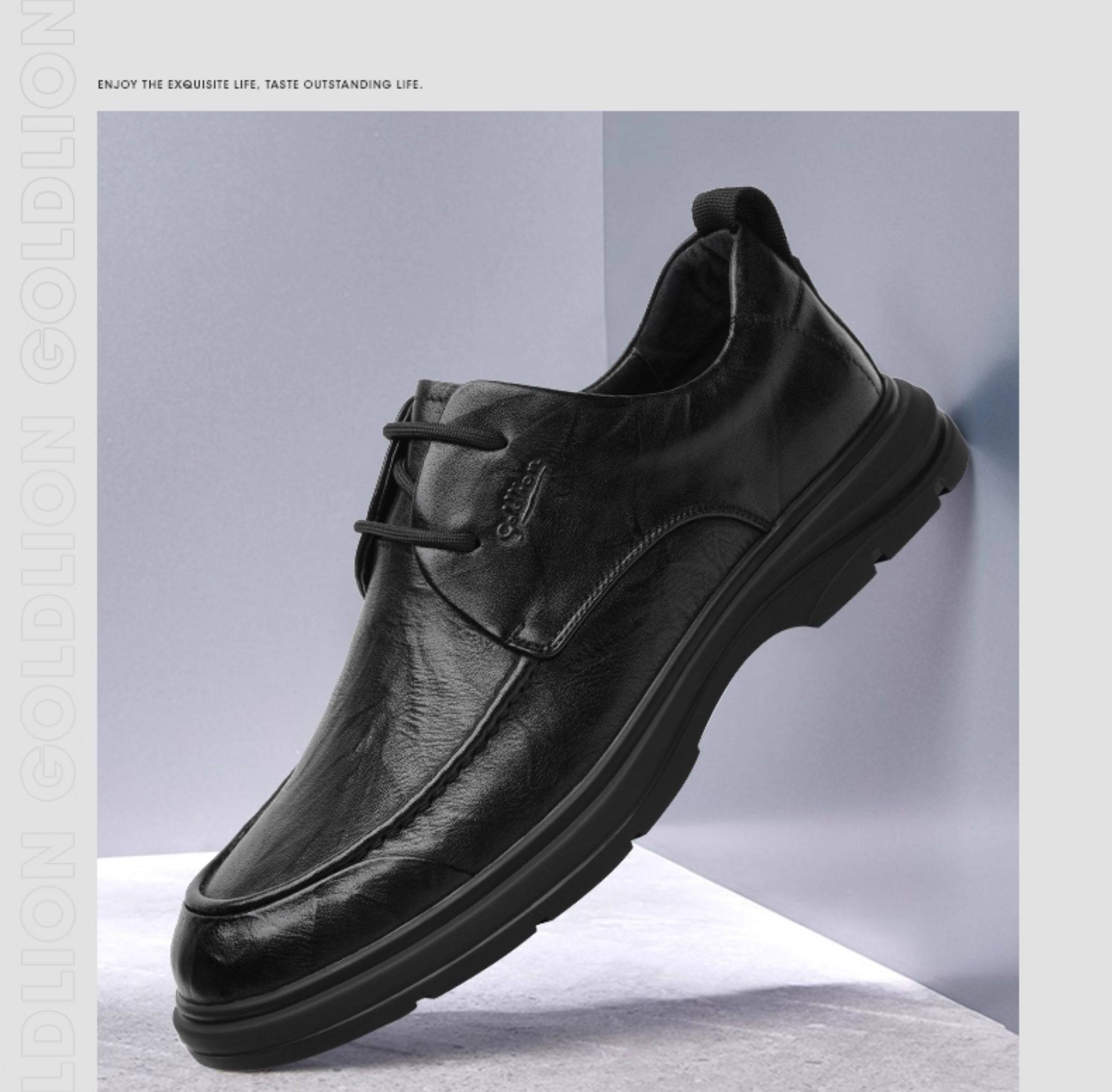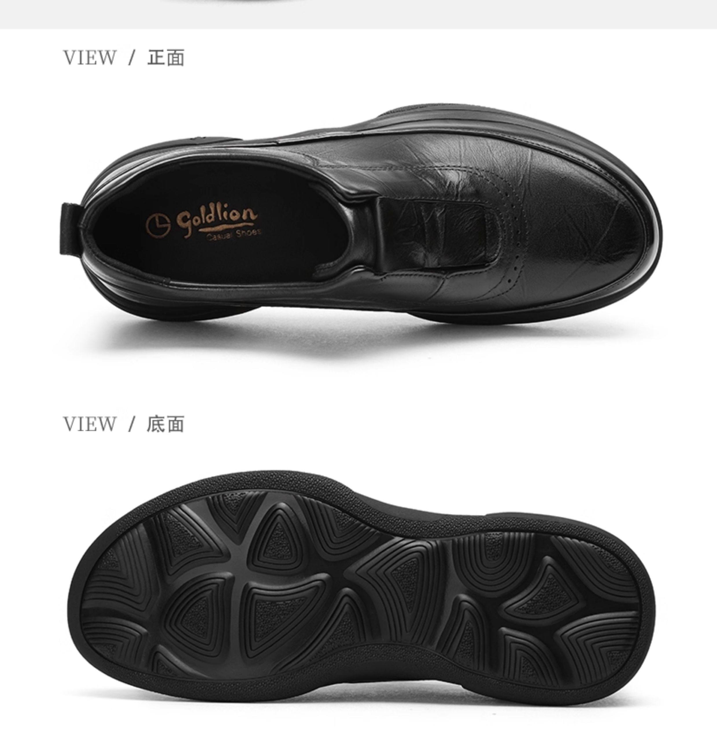 Goldlion Men's Genuine Leather Shoes, New Spring and Autumn Models, Comfortable Formal Business Casual Shoes, Round-Toe British Style Shoes