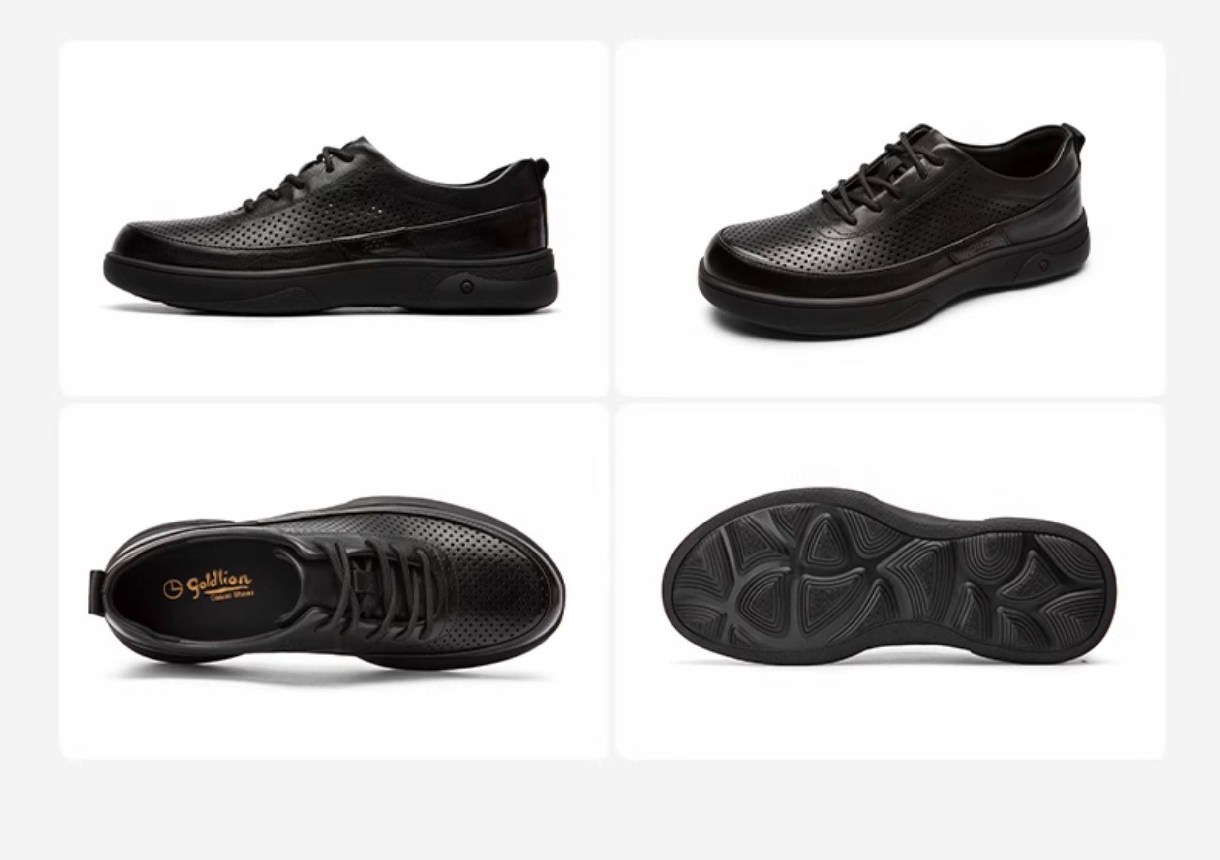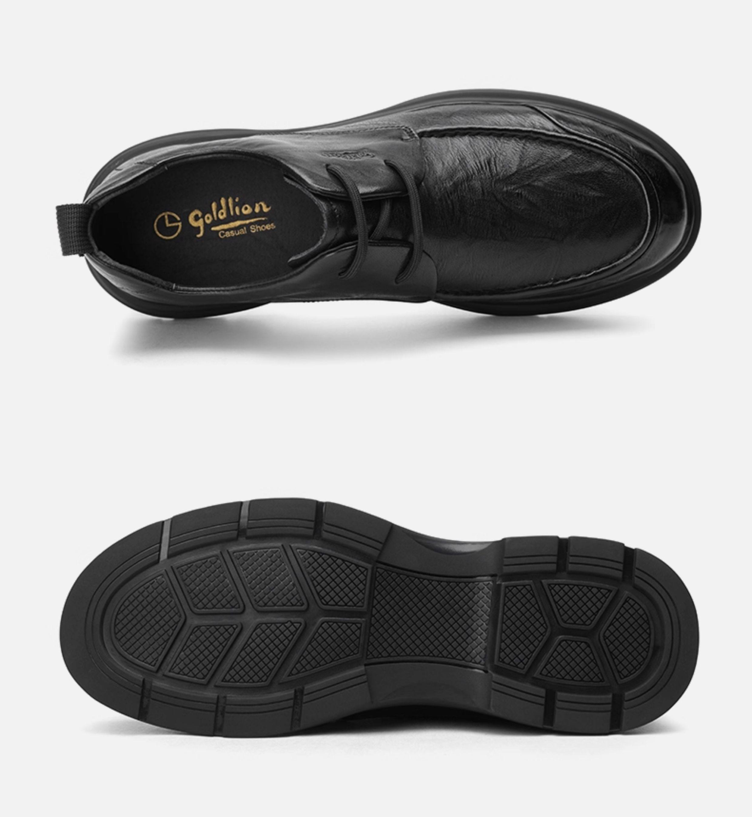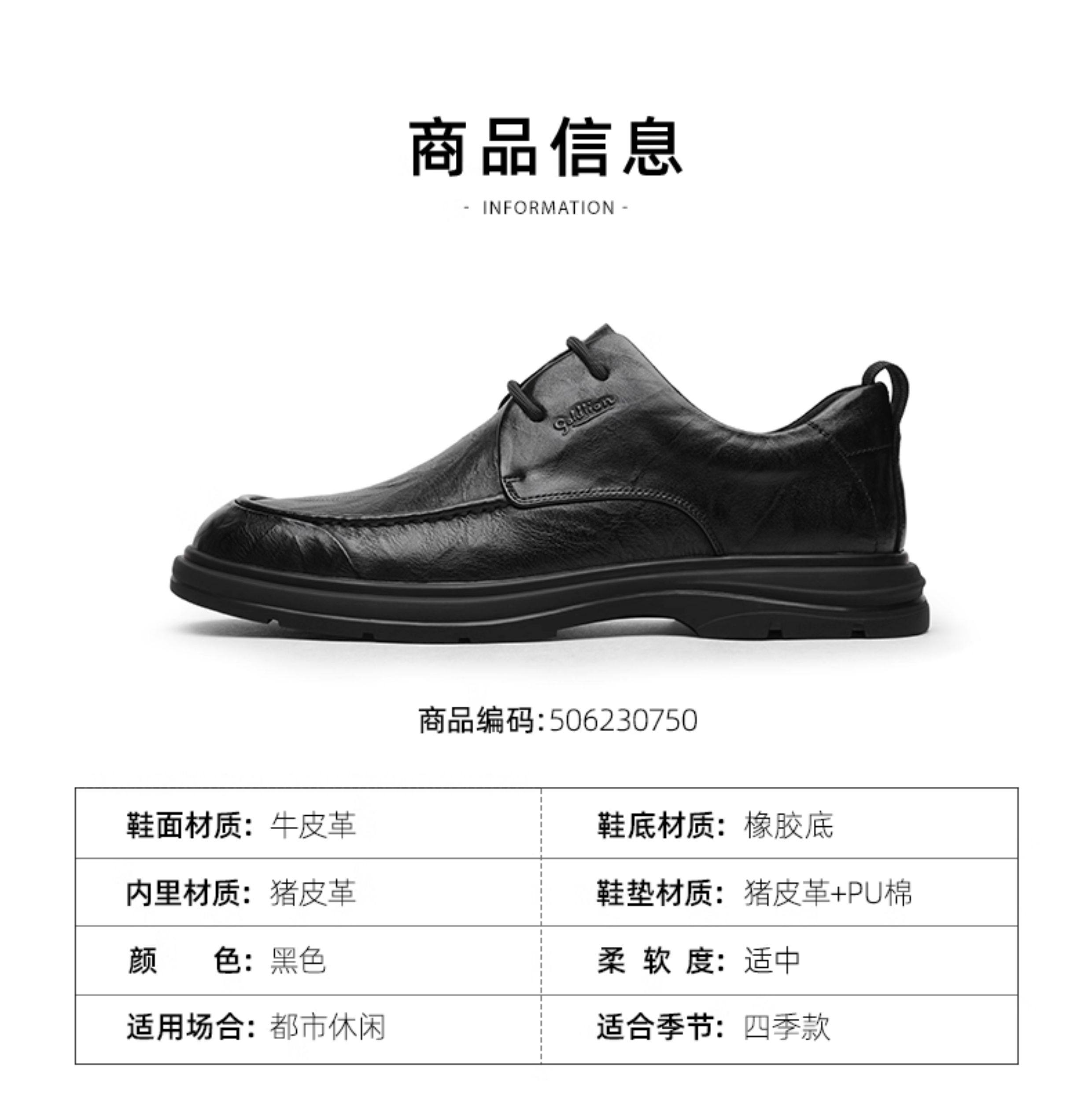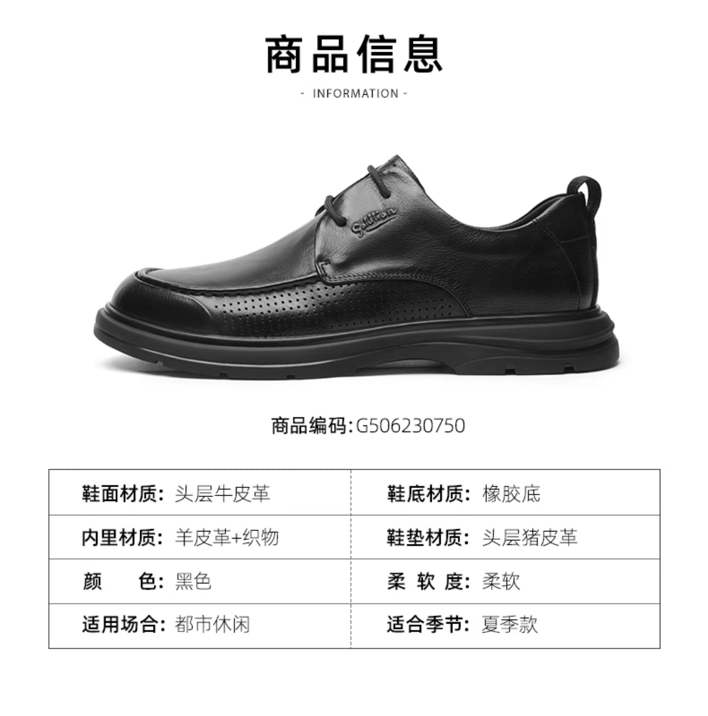 Goldlion Men's Genuine Leather Shoes, New Spring and Autumn Models, Comfortable Formal Business Casual Shoes, Round-Toe British Style Shoes