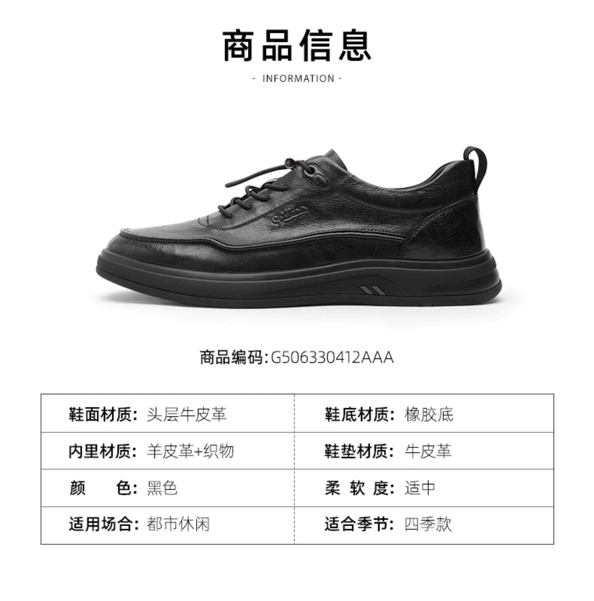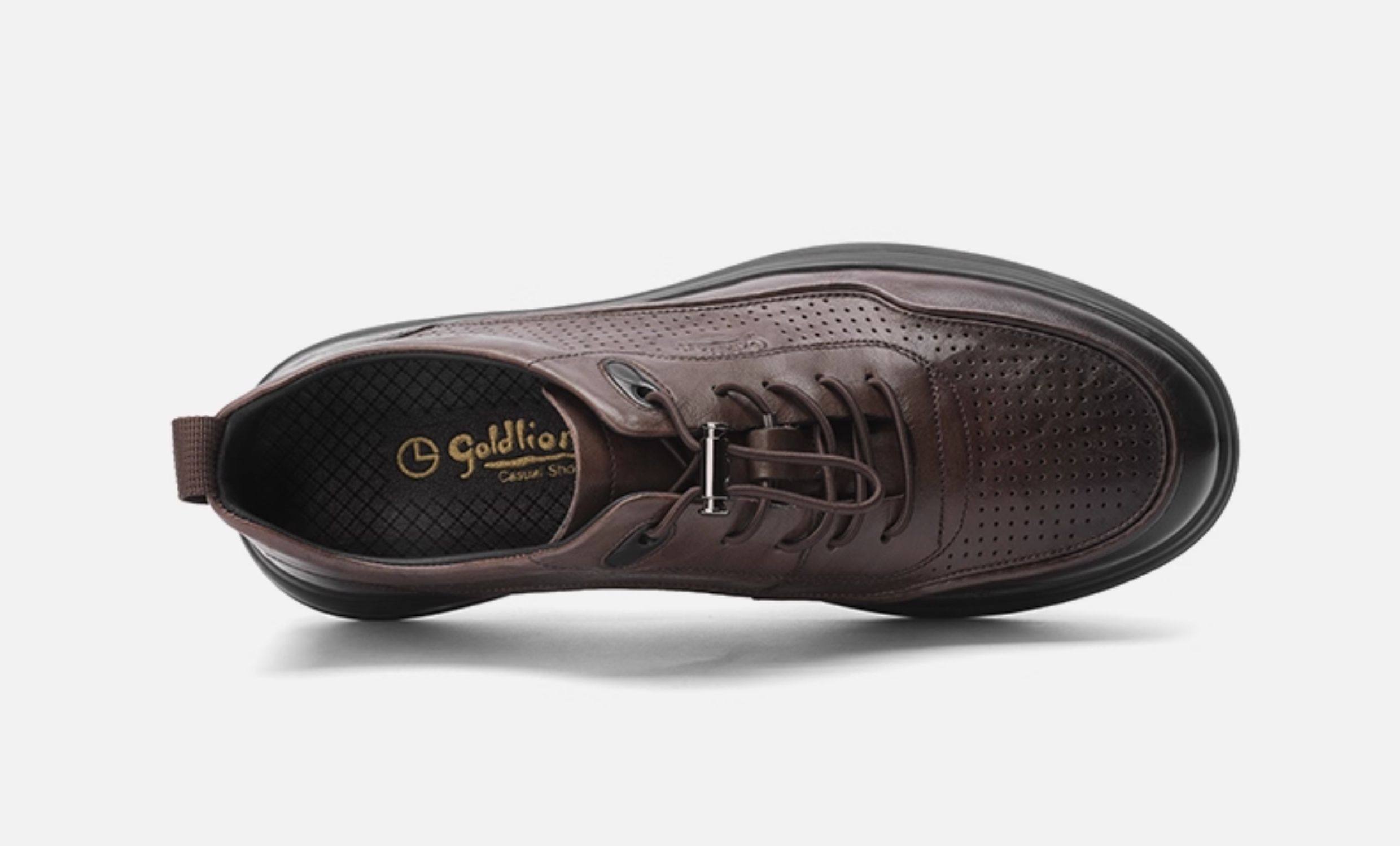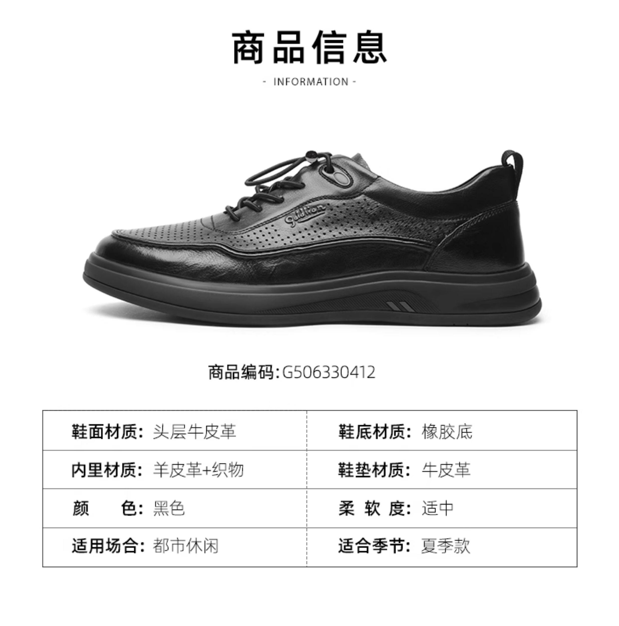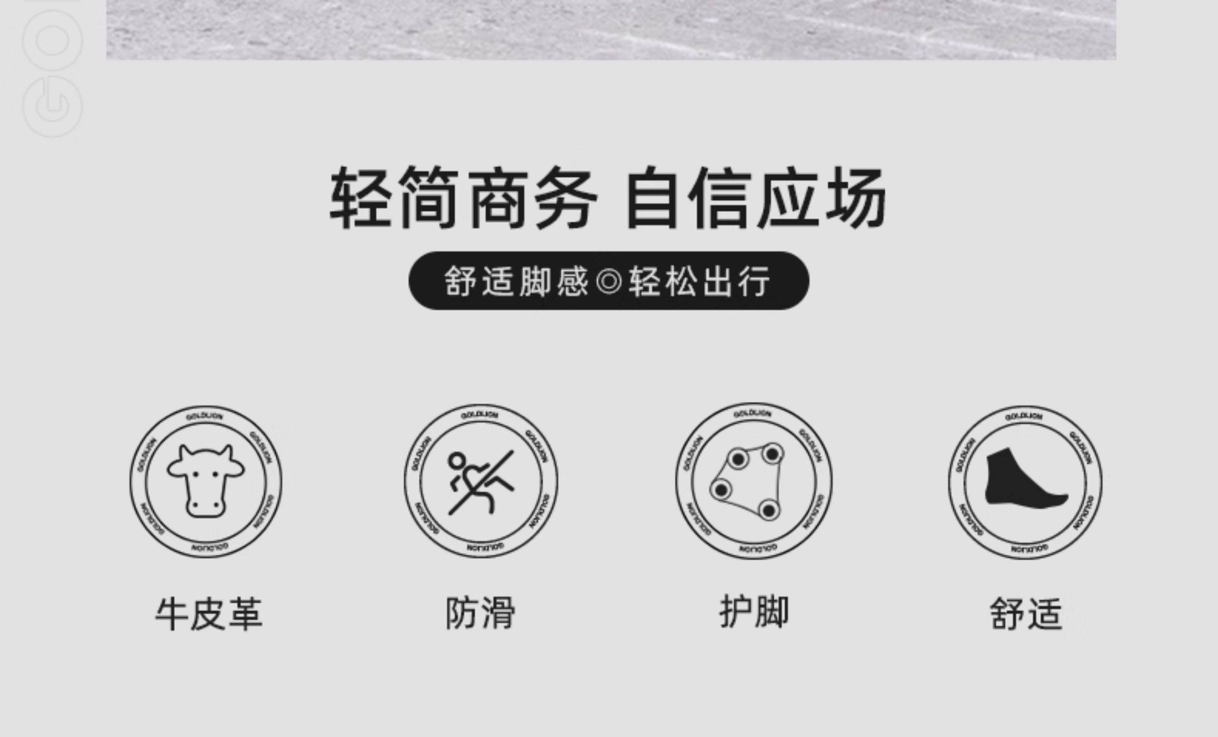 Goldlion Men's Genuine Leather Shoes, New Spring and Autumn Models, Comfortable Formal Business Casual Shoes, Round-Toe British Style Shoes