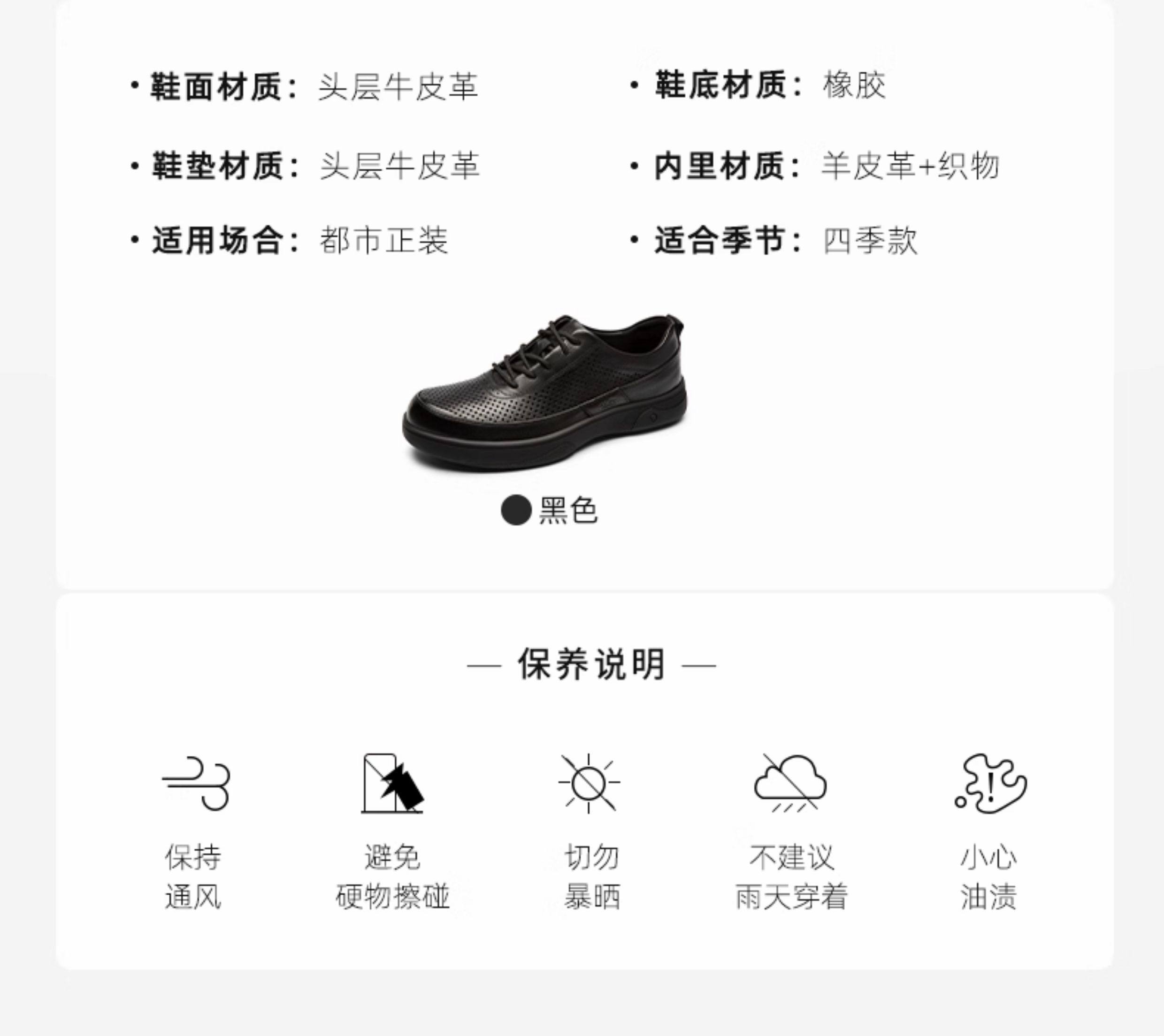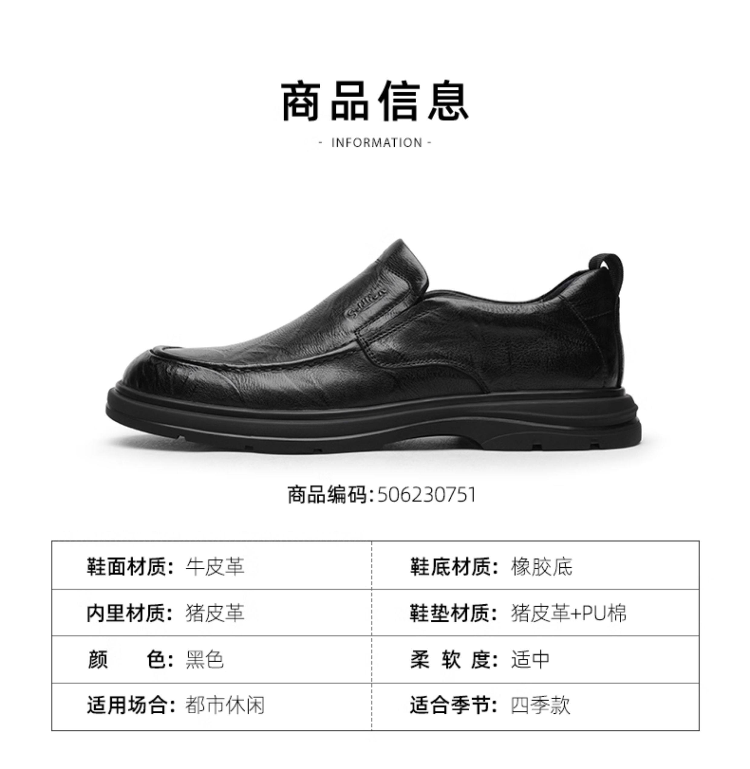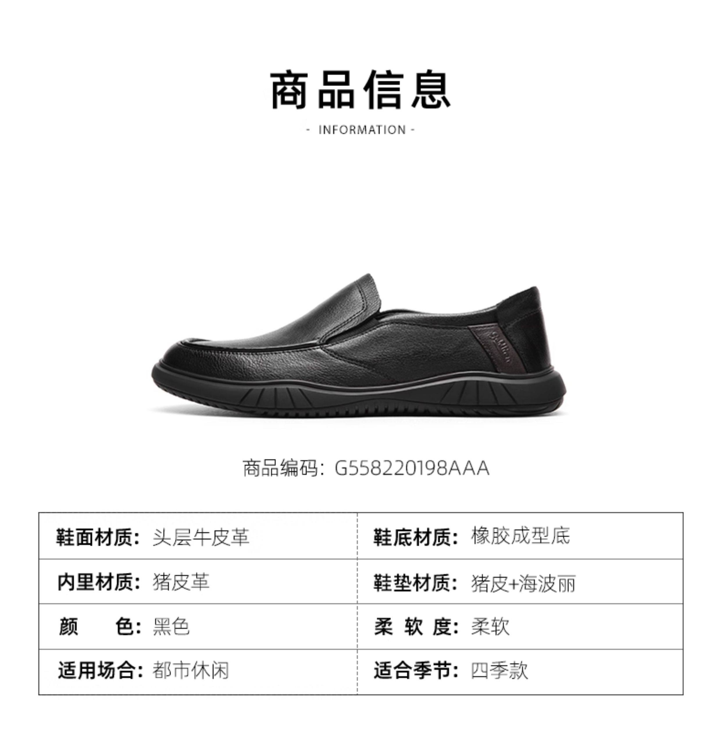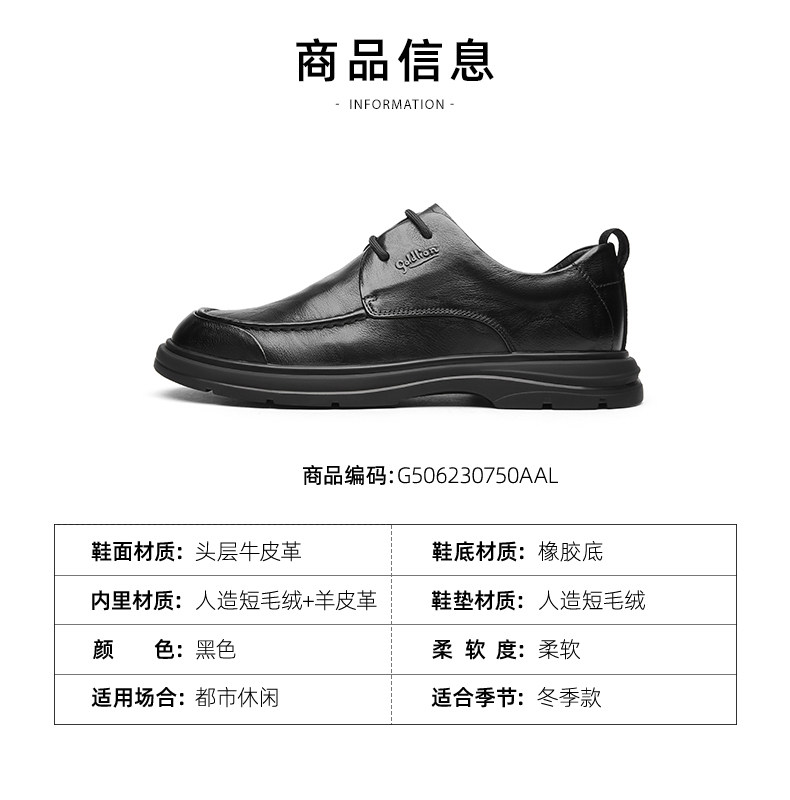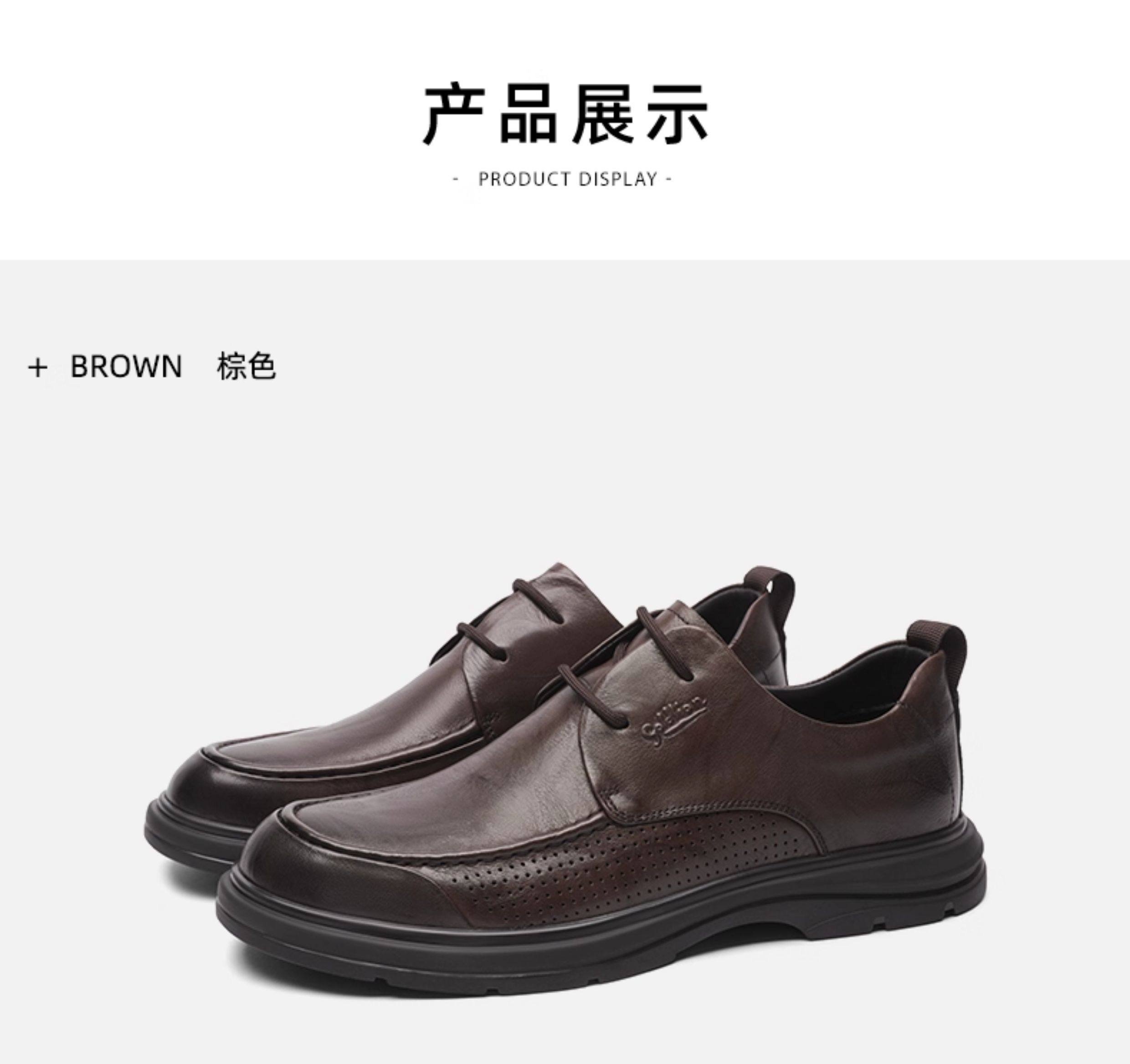Goldlion Men's Genuine Leather Shoes, New Spring and Autumn Models, Comfortable Formal Business Casual Shoes, Round-Toe British Style Shoes