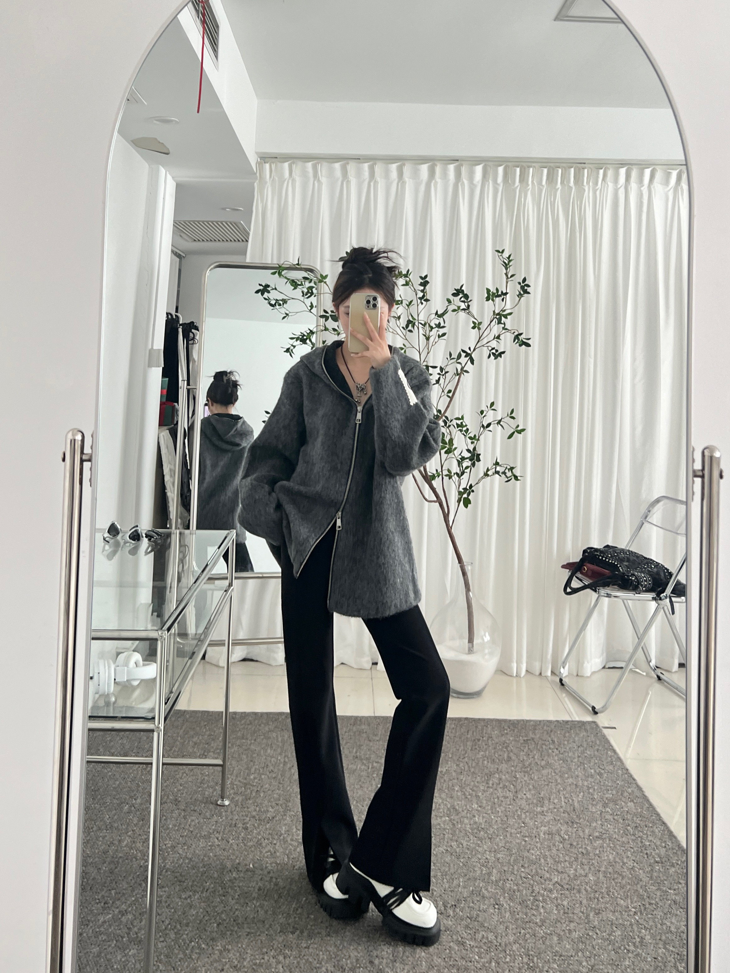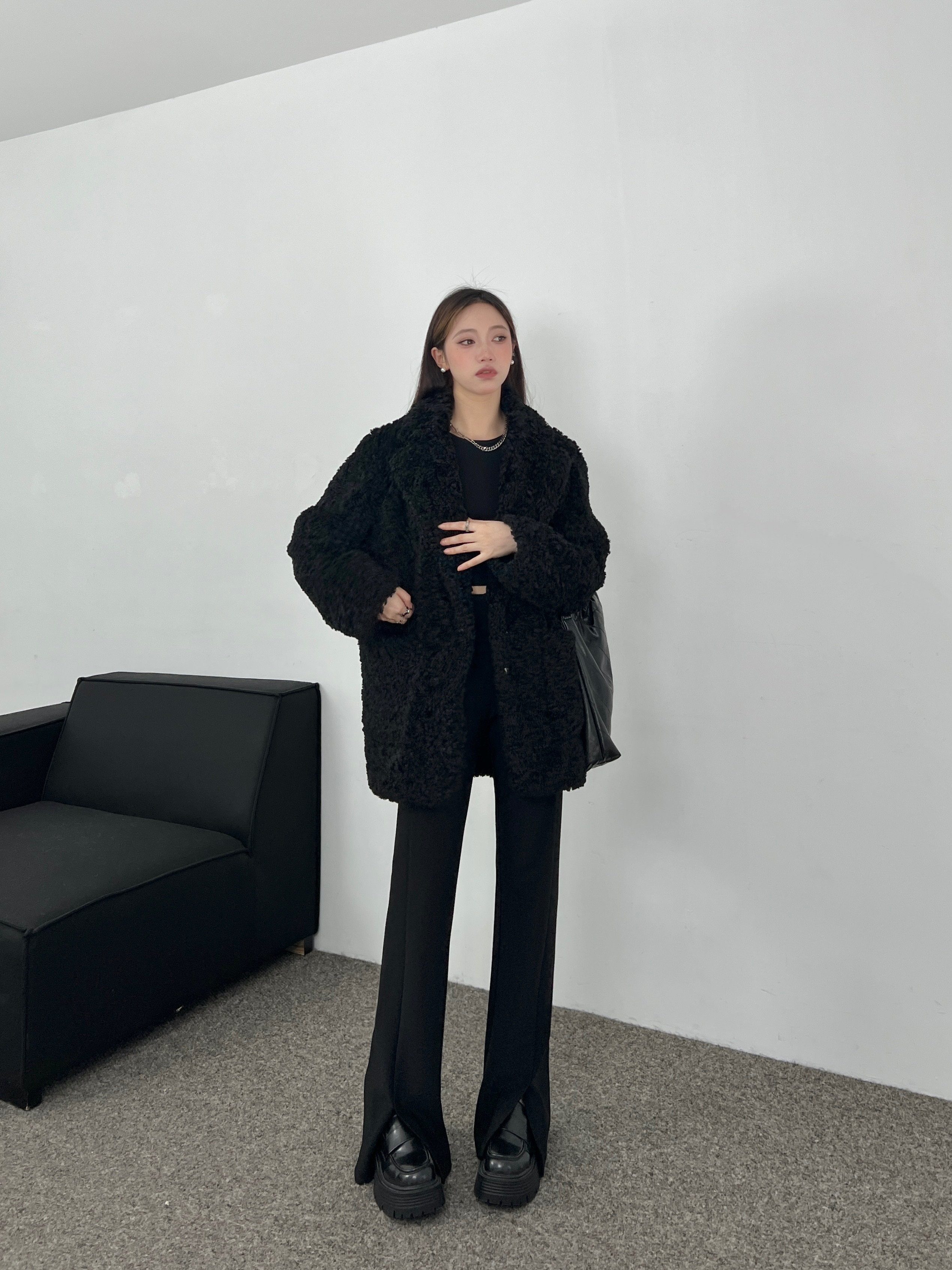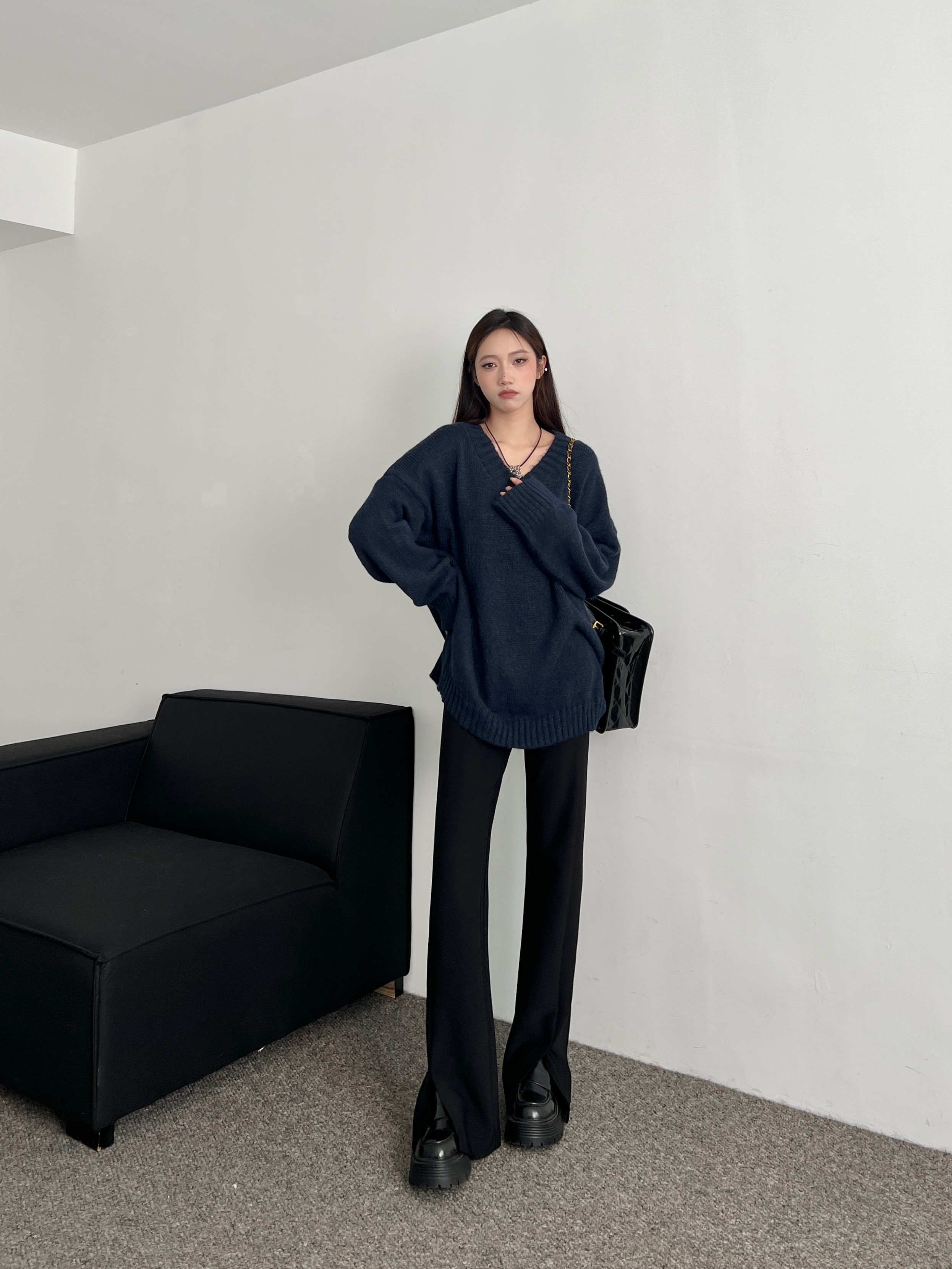 2026 New Black High-Waisted Slit Suit Pants Casual Versatile Trendy Slimming Drapey Floor-Length Straight-Leg Trousers