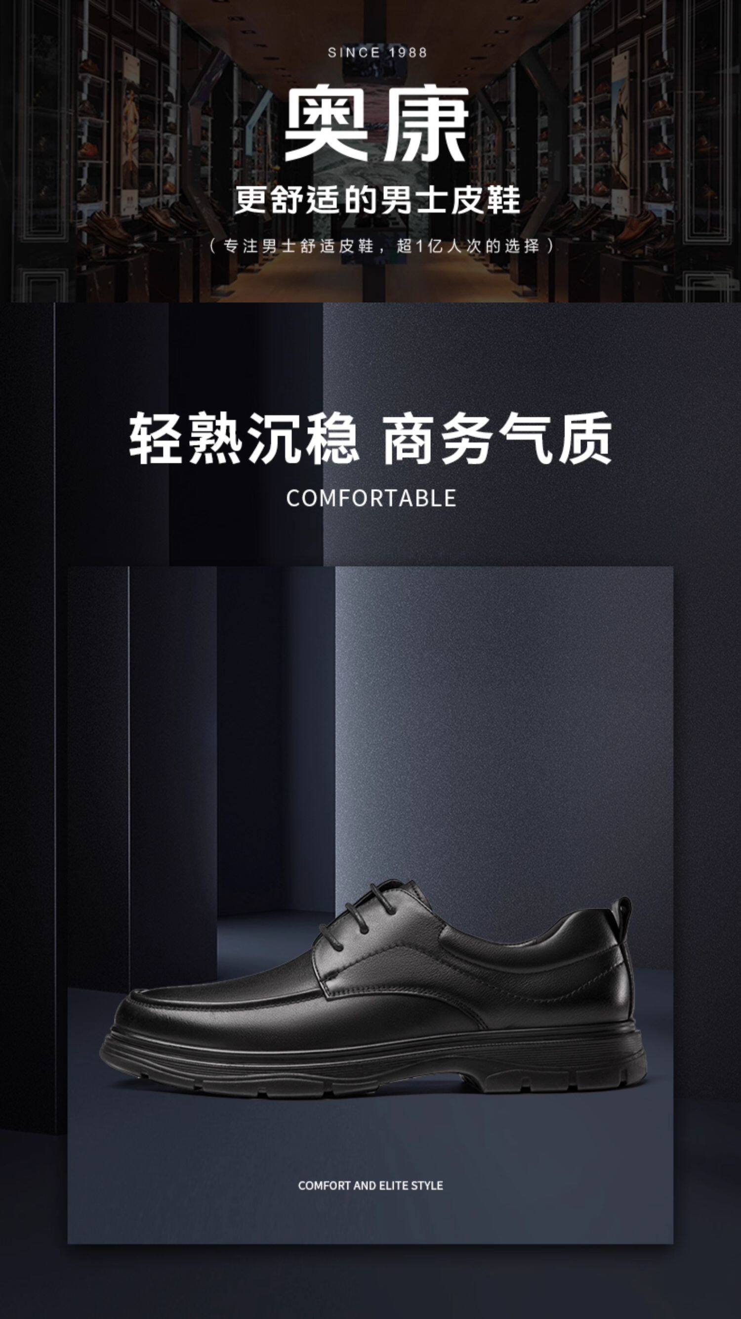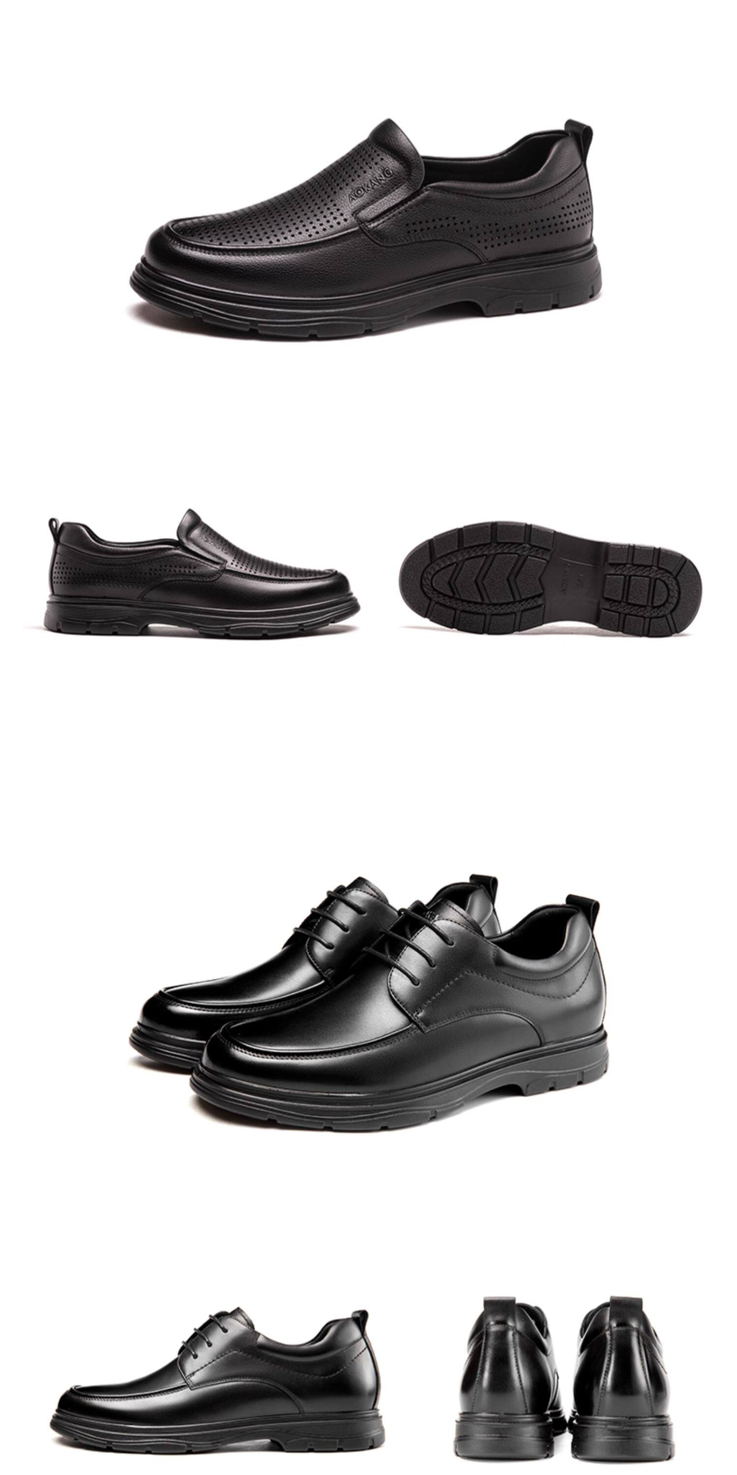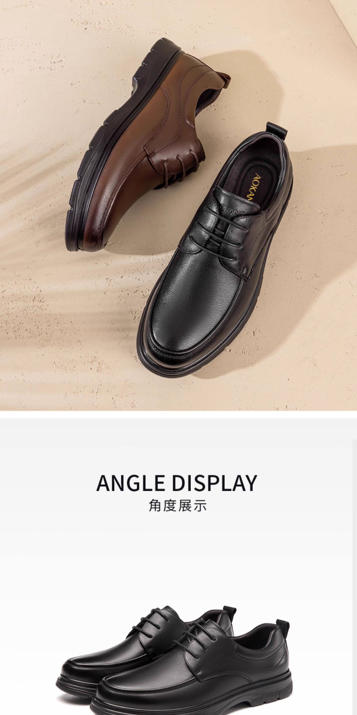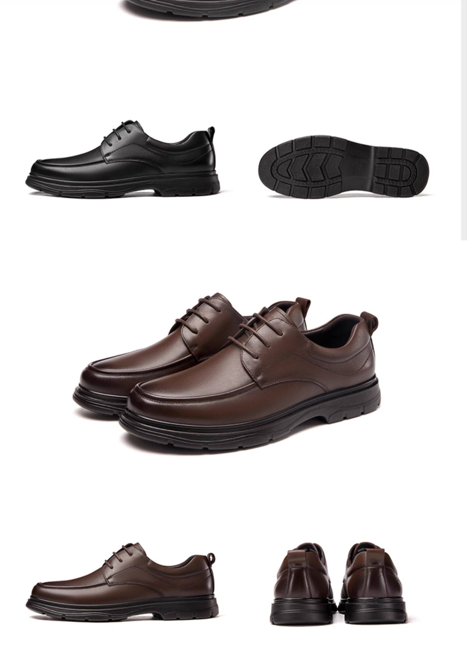 Aokang Men's Shoes Spring and Autumn Fashion Business Casual Leather Shoes Men's Genuine Leather Soft Surface Lace-Up Office Versatile Dad Shoes