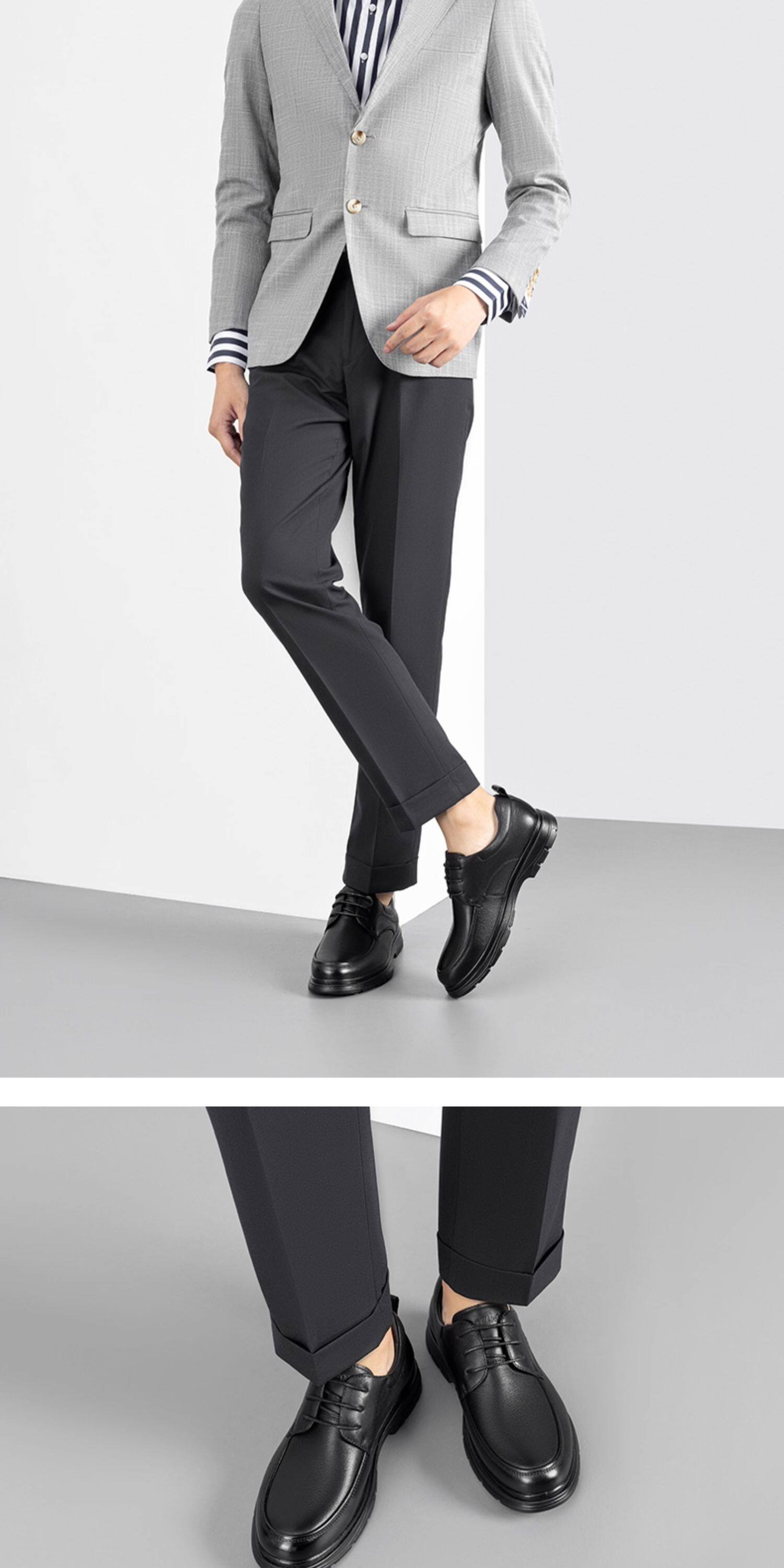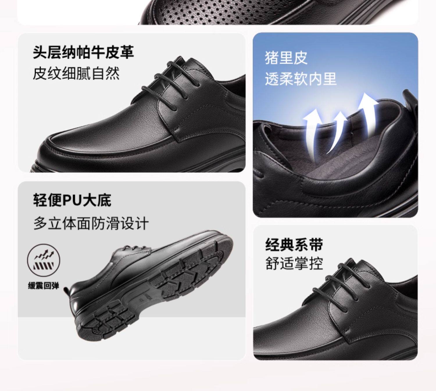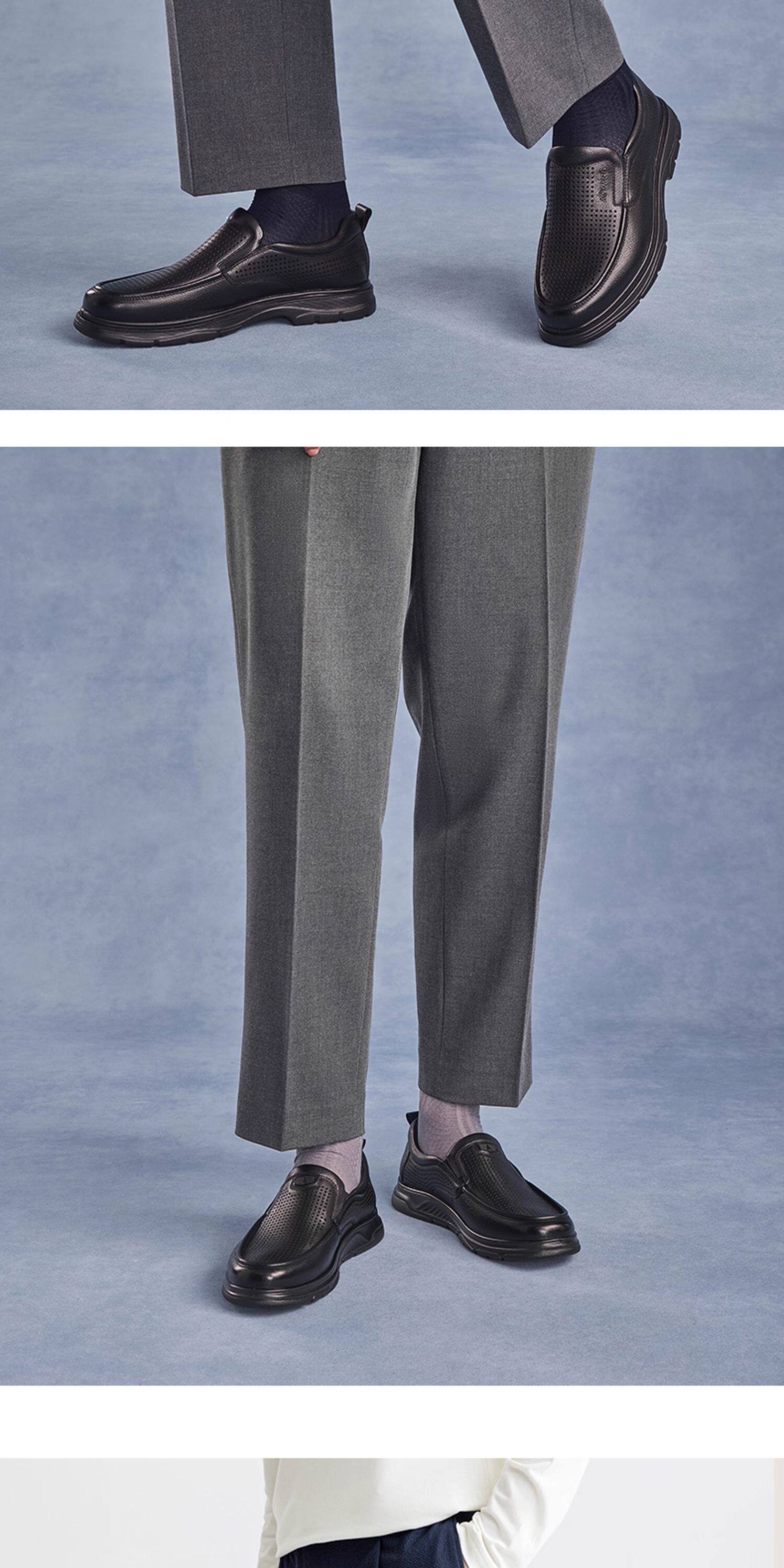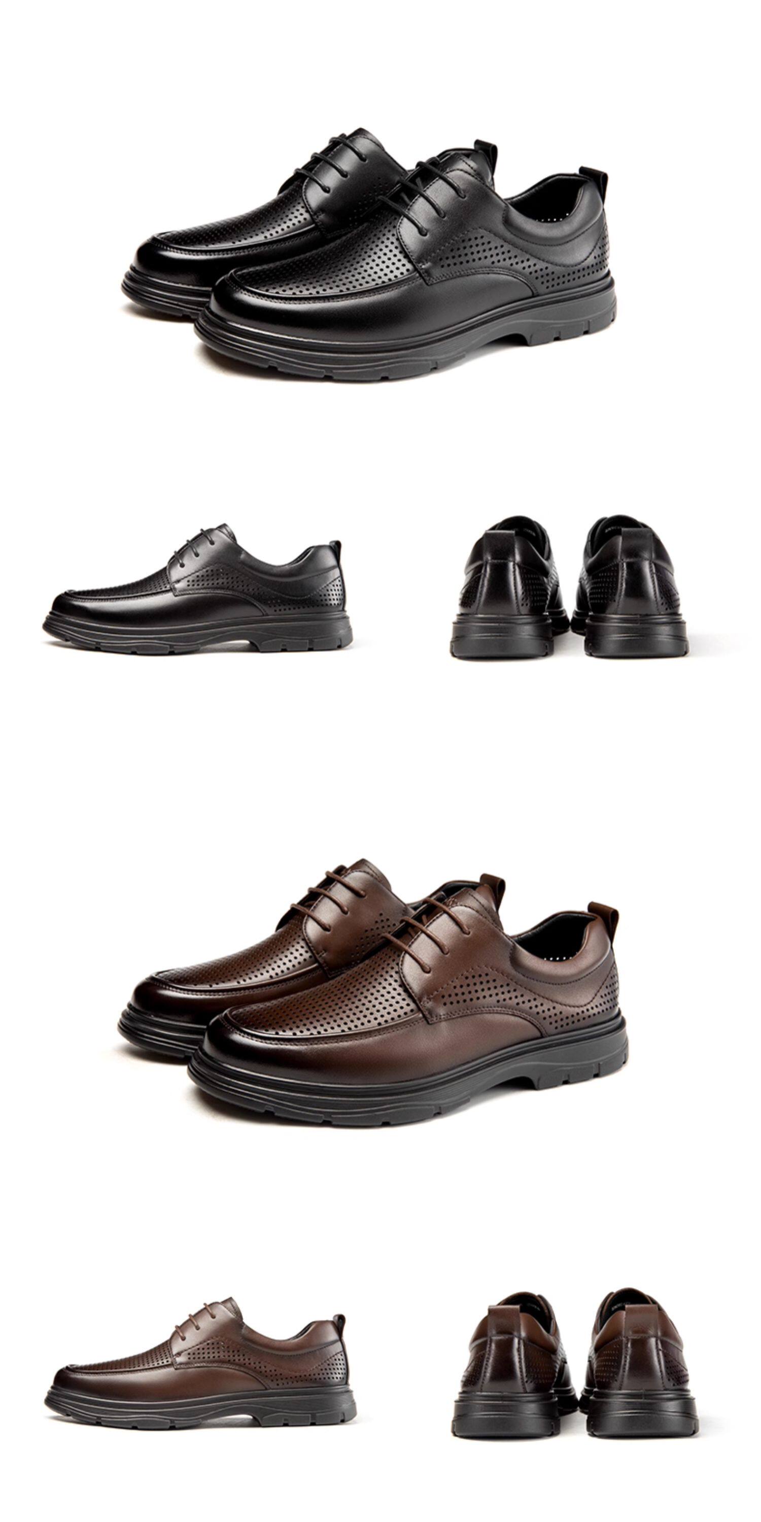 Aokang Men's Shoes Spring and Autumn Fashion Business Casual Leather Shoes Men's Genuine Leather Soft Surface Lace-Up Office Versatile Dad Shoes