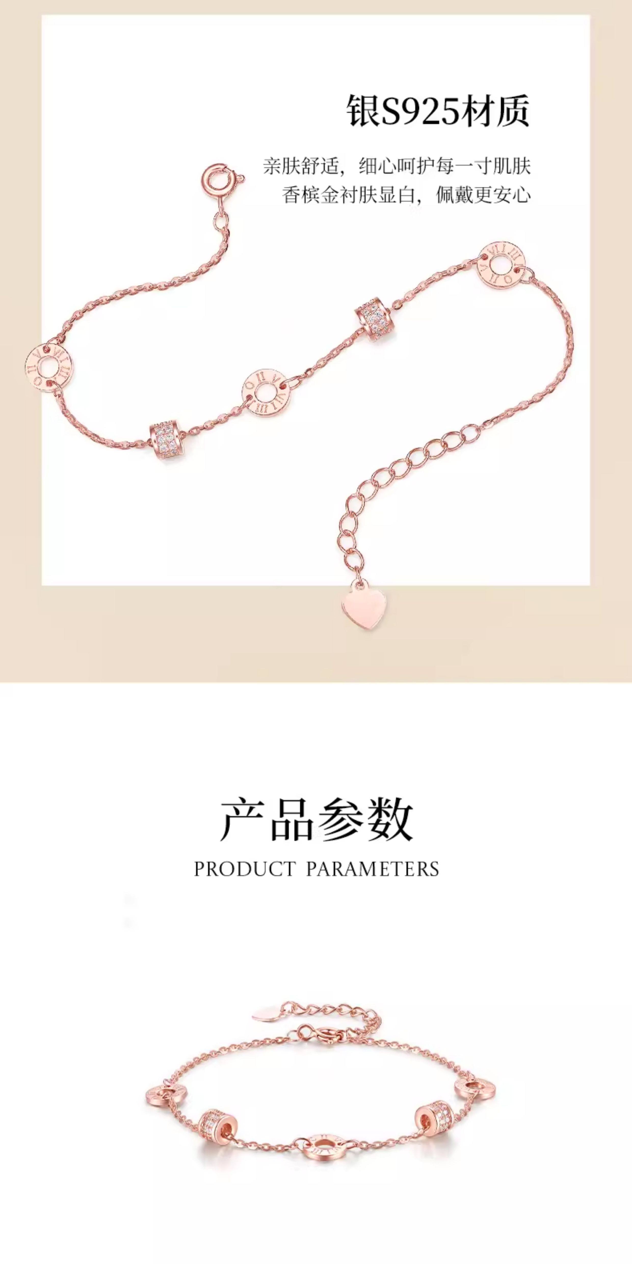 Zhou Dasheng Rose Gold Pure Silver Small Waist Bracelet for Women, Light Luxury Niche Exquisite Design, Birthday Gift for Girlfriend