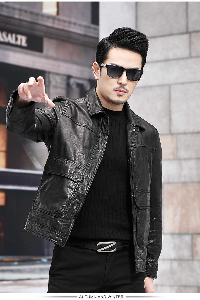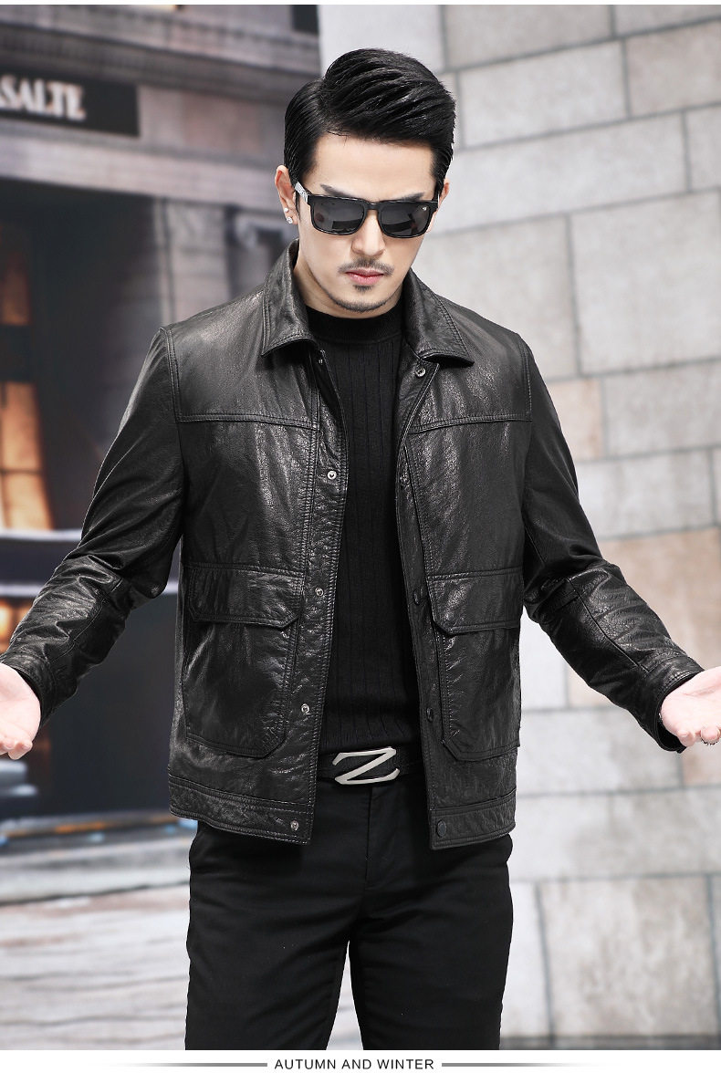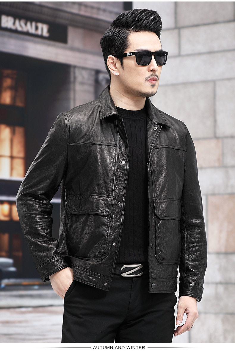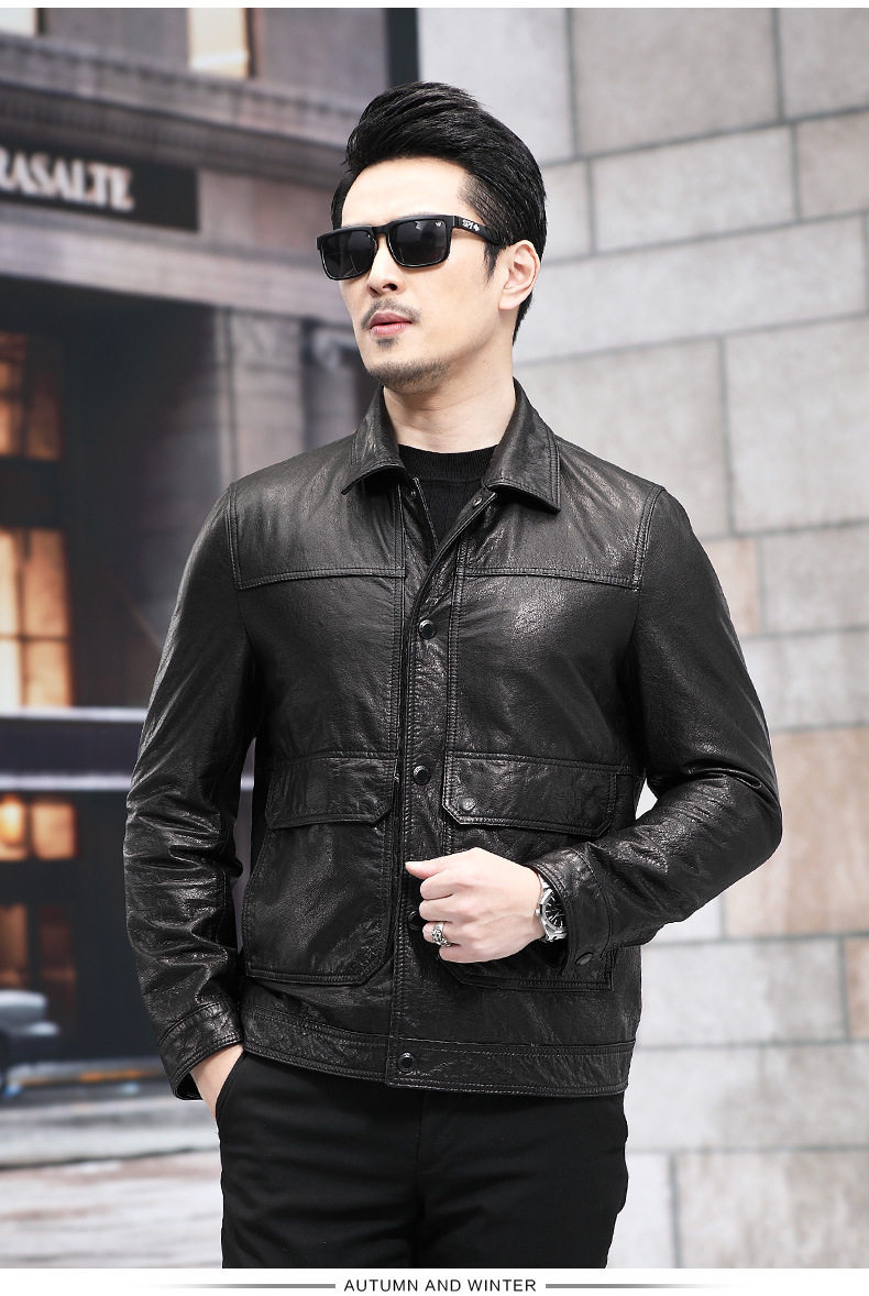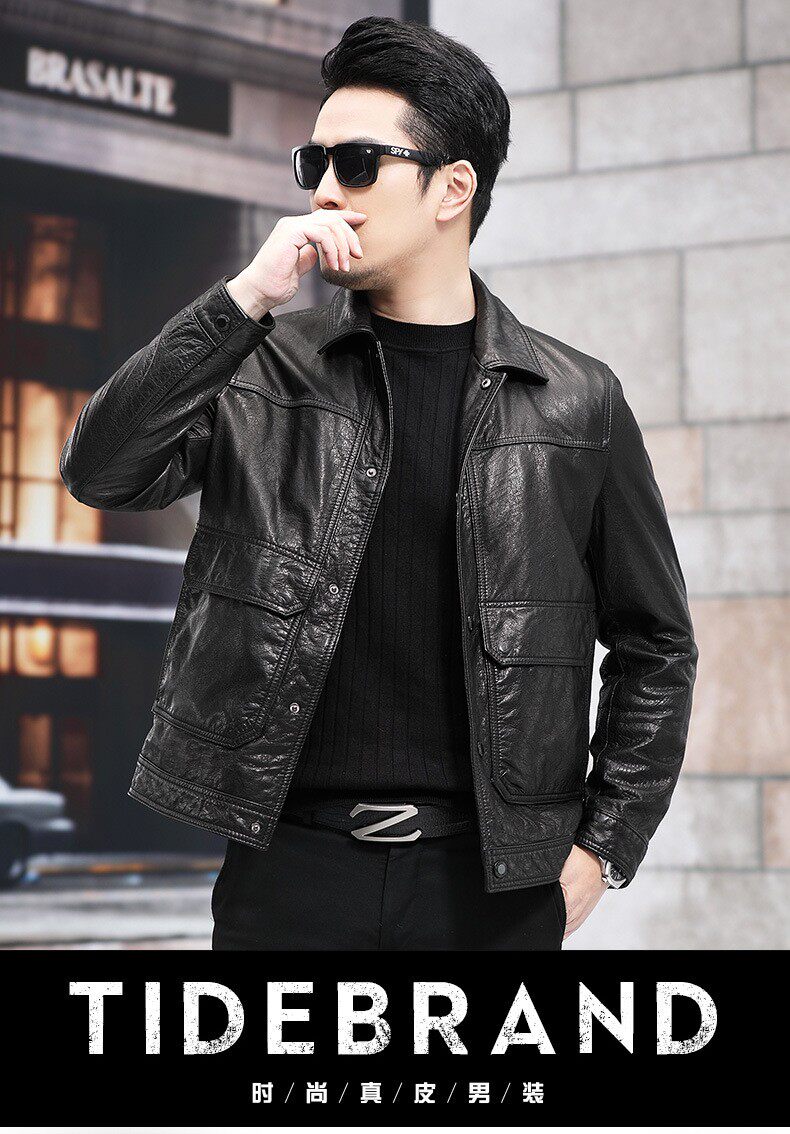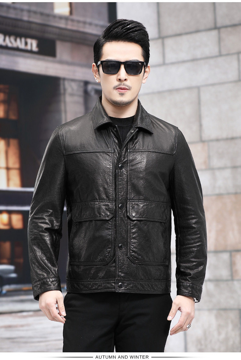2026 New Model Haining Genuine Leather Jacket for Men, First Layer Cowhide Oil Wax Leather Jacket with Detachable down Liner