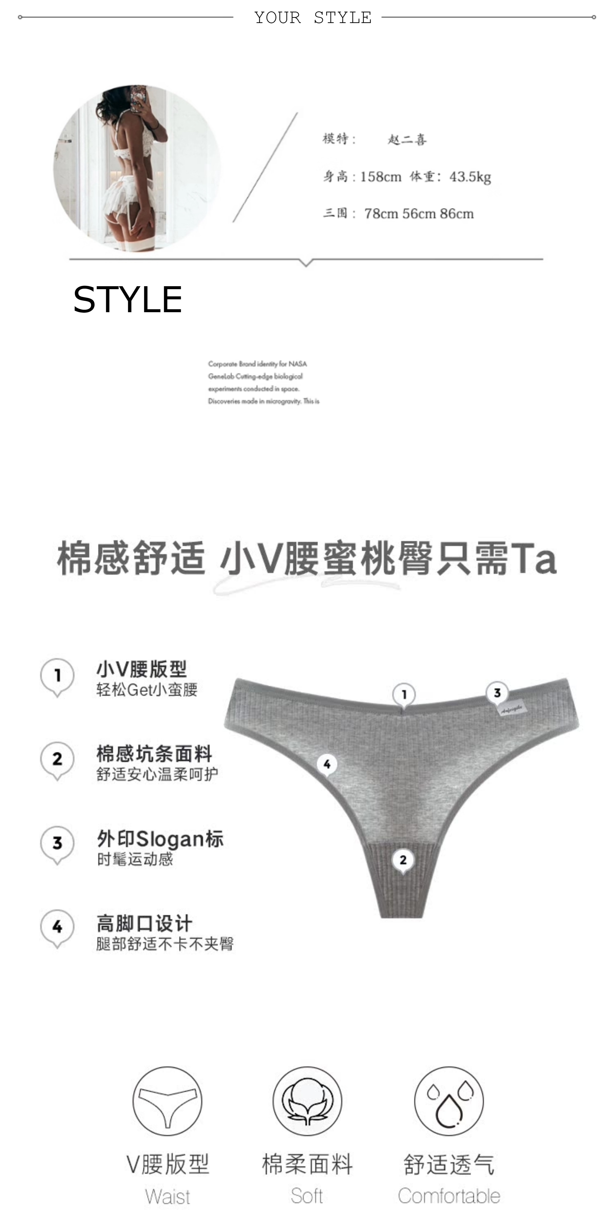 Women's Pure Cotton Seamless Summer Thin Breathable New Mid-Waist Sports Triangle Thong T-Pants