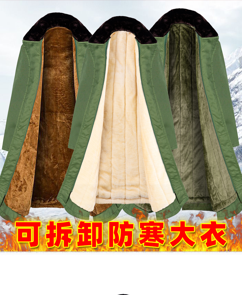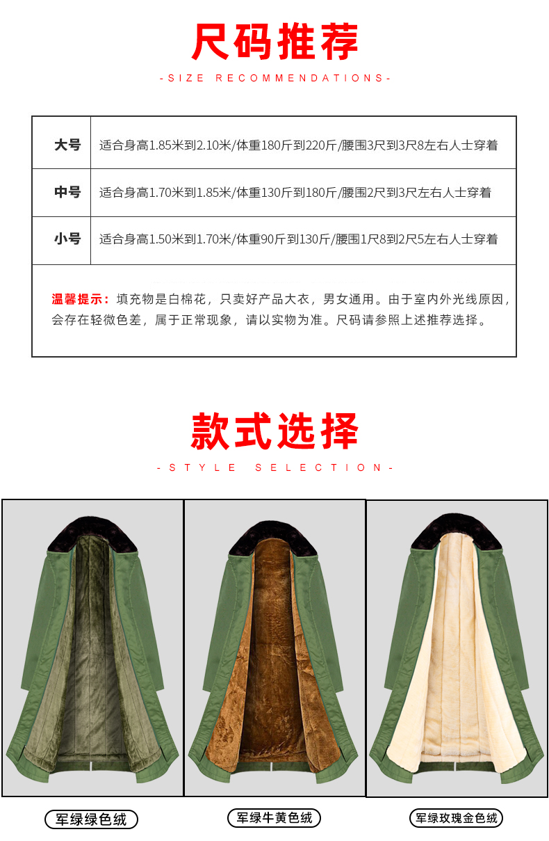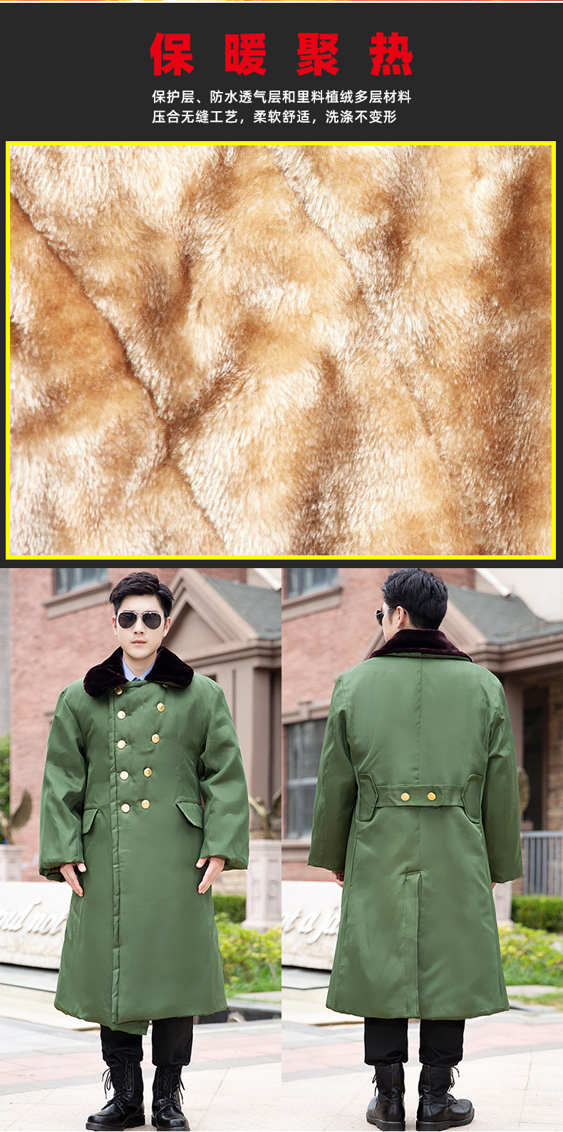 New Style Military Coat, Winter Fleece-Lined and Thickened, Men's Long Security Guard Cotton Jacket, Cold-Proof Autumn and Winter Clothing, Northeast Cotton-Padded Jacket, Yellow Coat