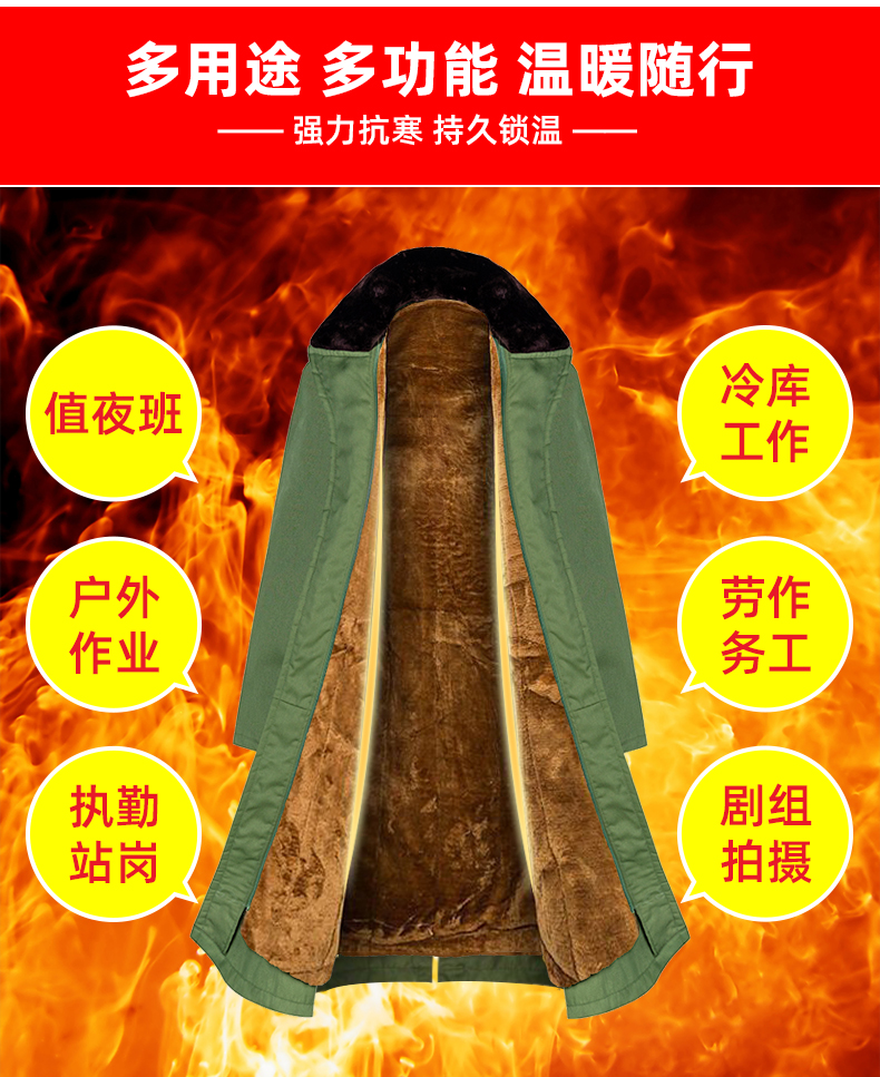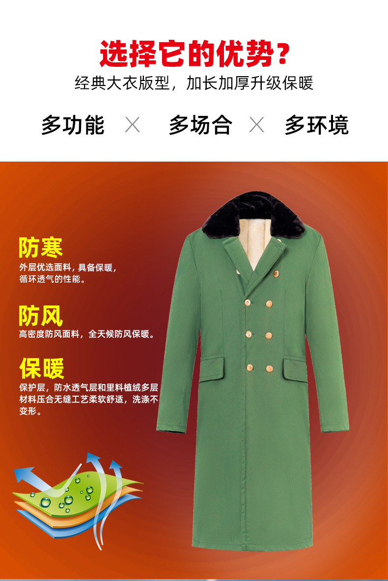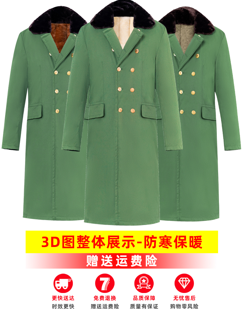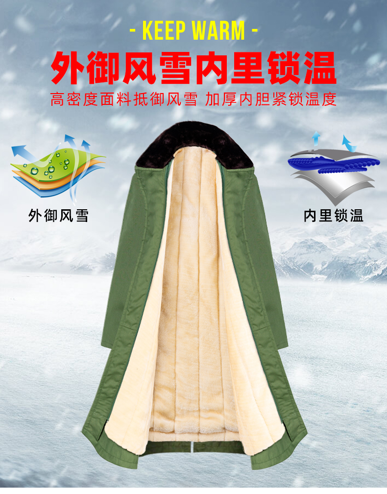 New Style Military Coat, Winter Fleece-Lined and Thickened, Men's Long Security Guard Cotton Jacket, Cold-Proof Autumn and Winter Clothing, Northeast Cotton-Padded Jacket, Yellow Coat