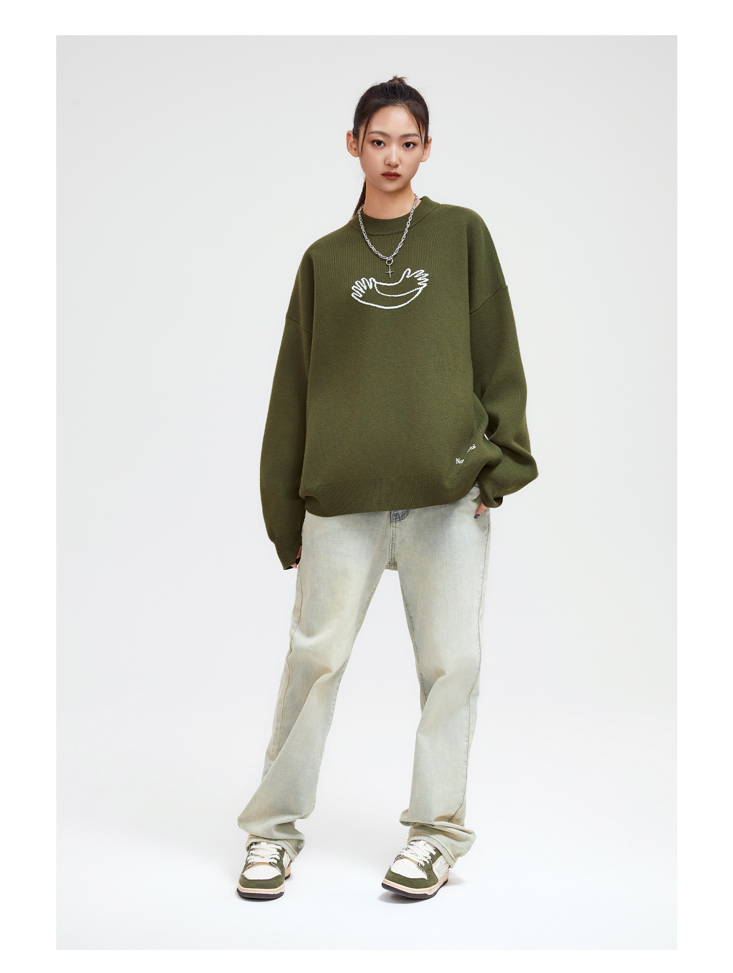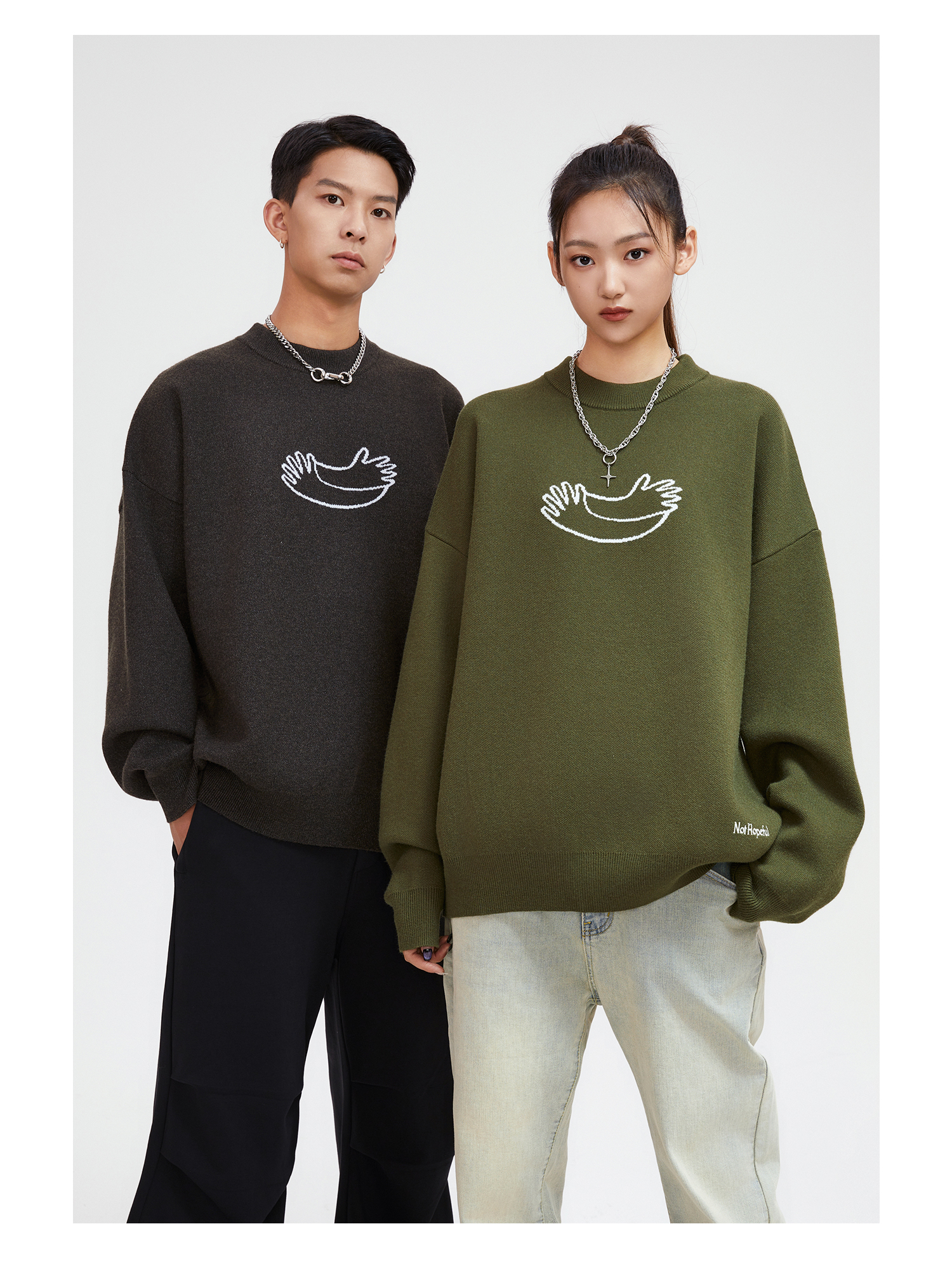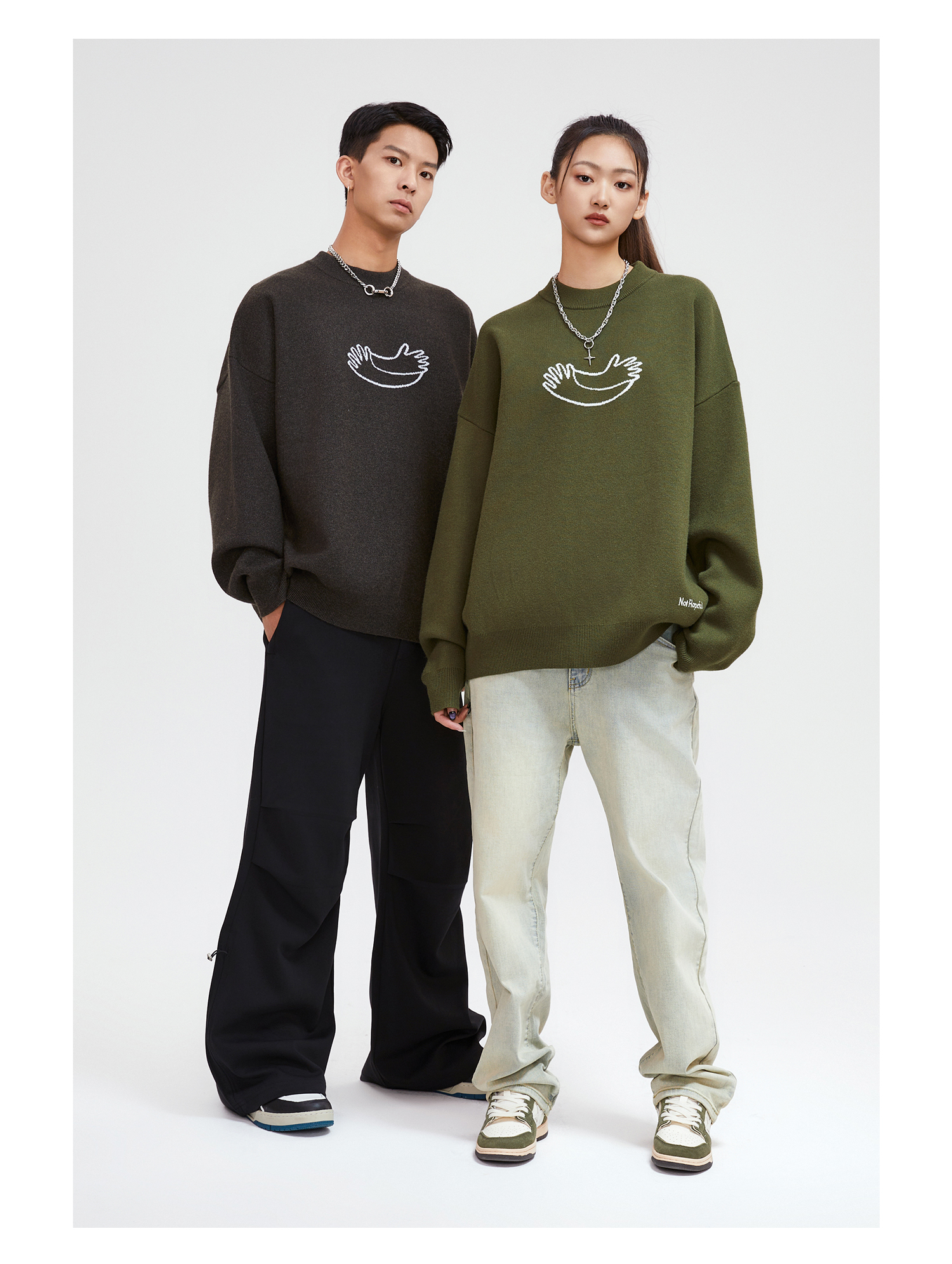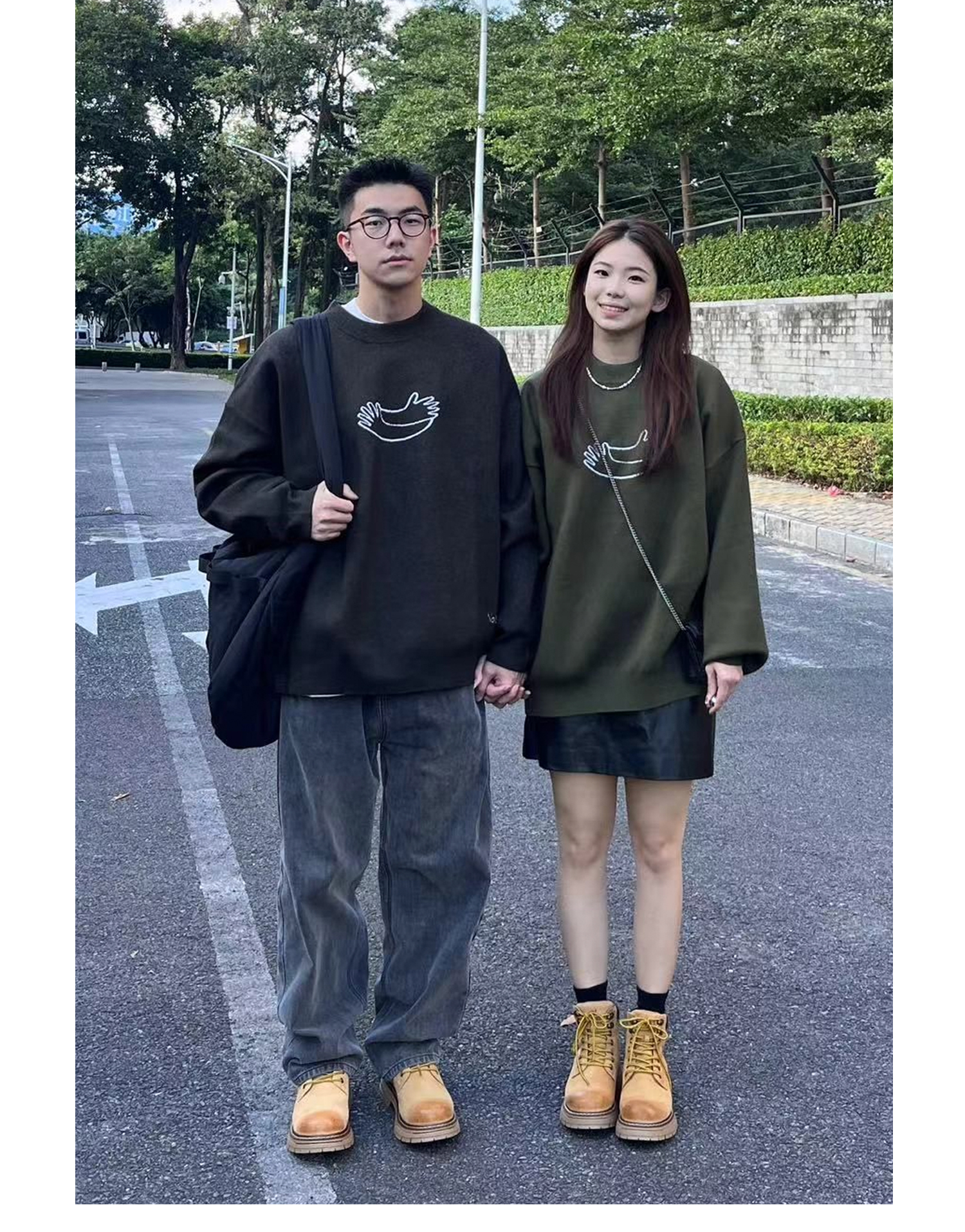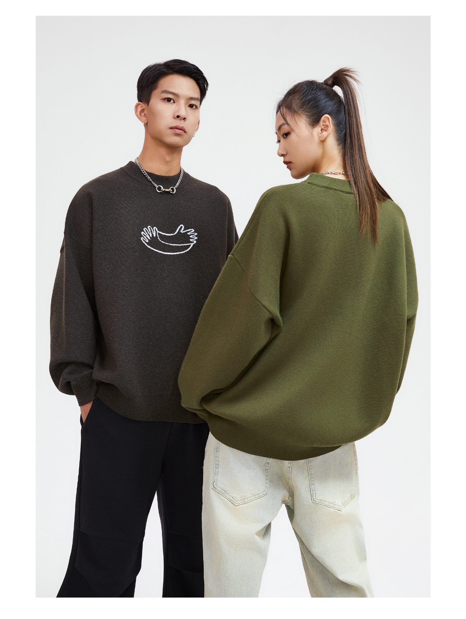 Trusl Studio Round-Neck Knit Sweater, Loose and Casual Pullover with a High-End Feel, Heavyweight, Couple Style