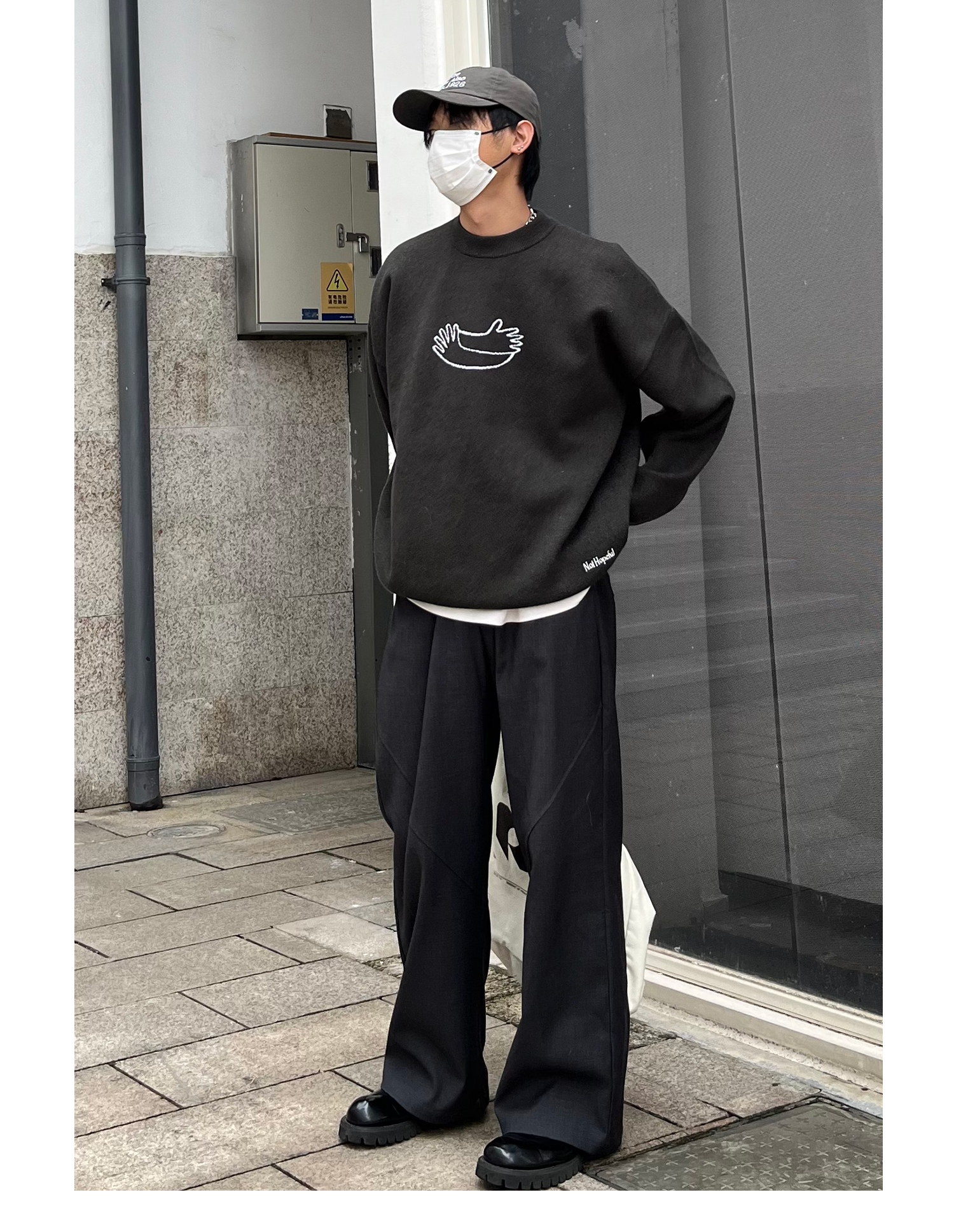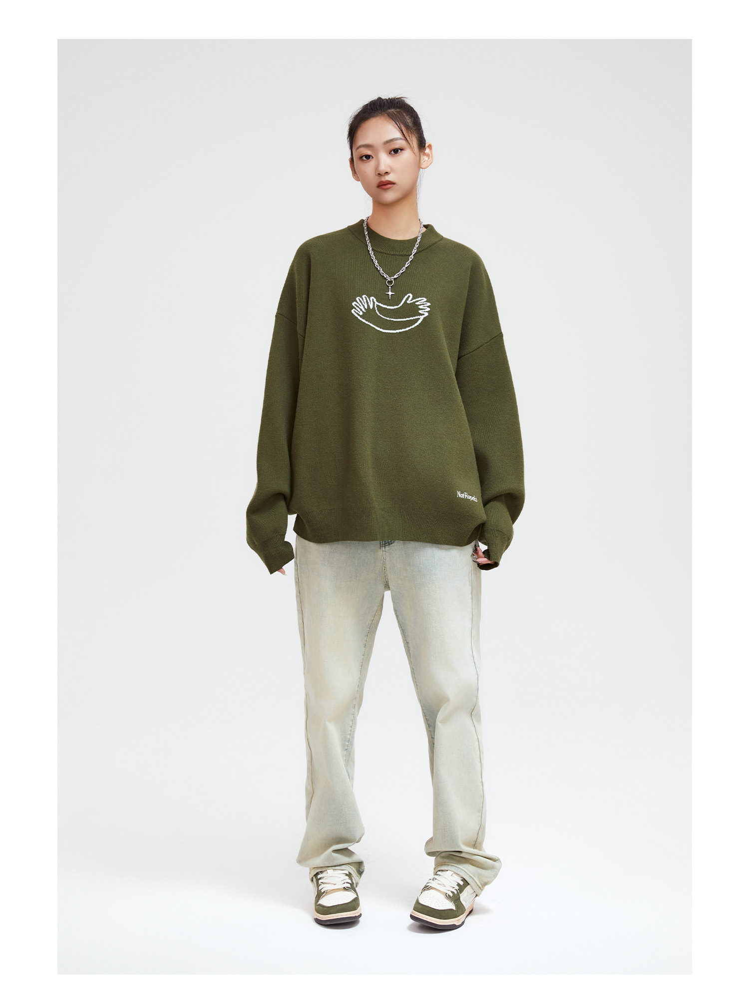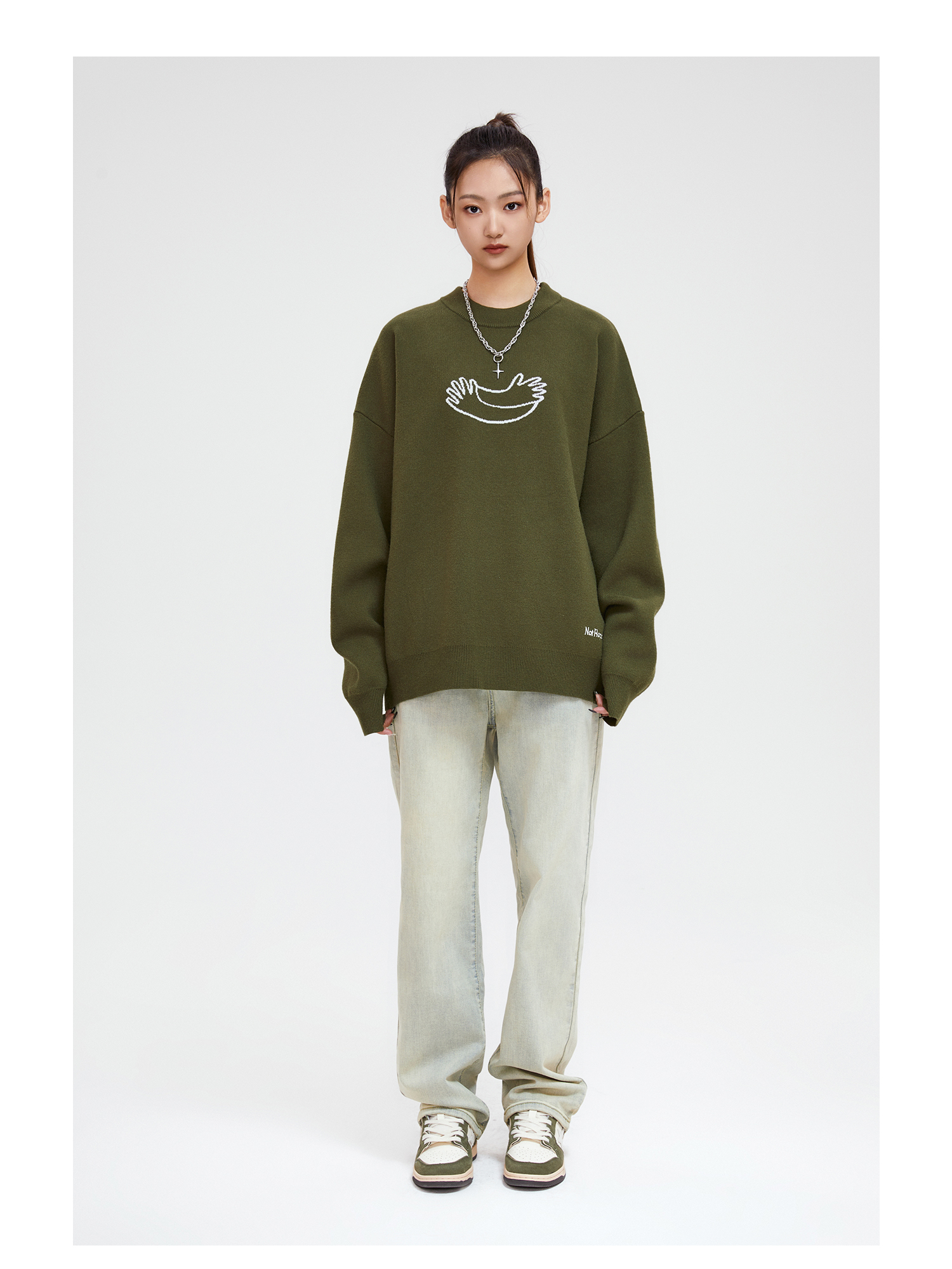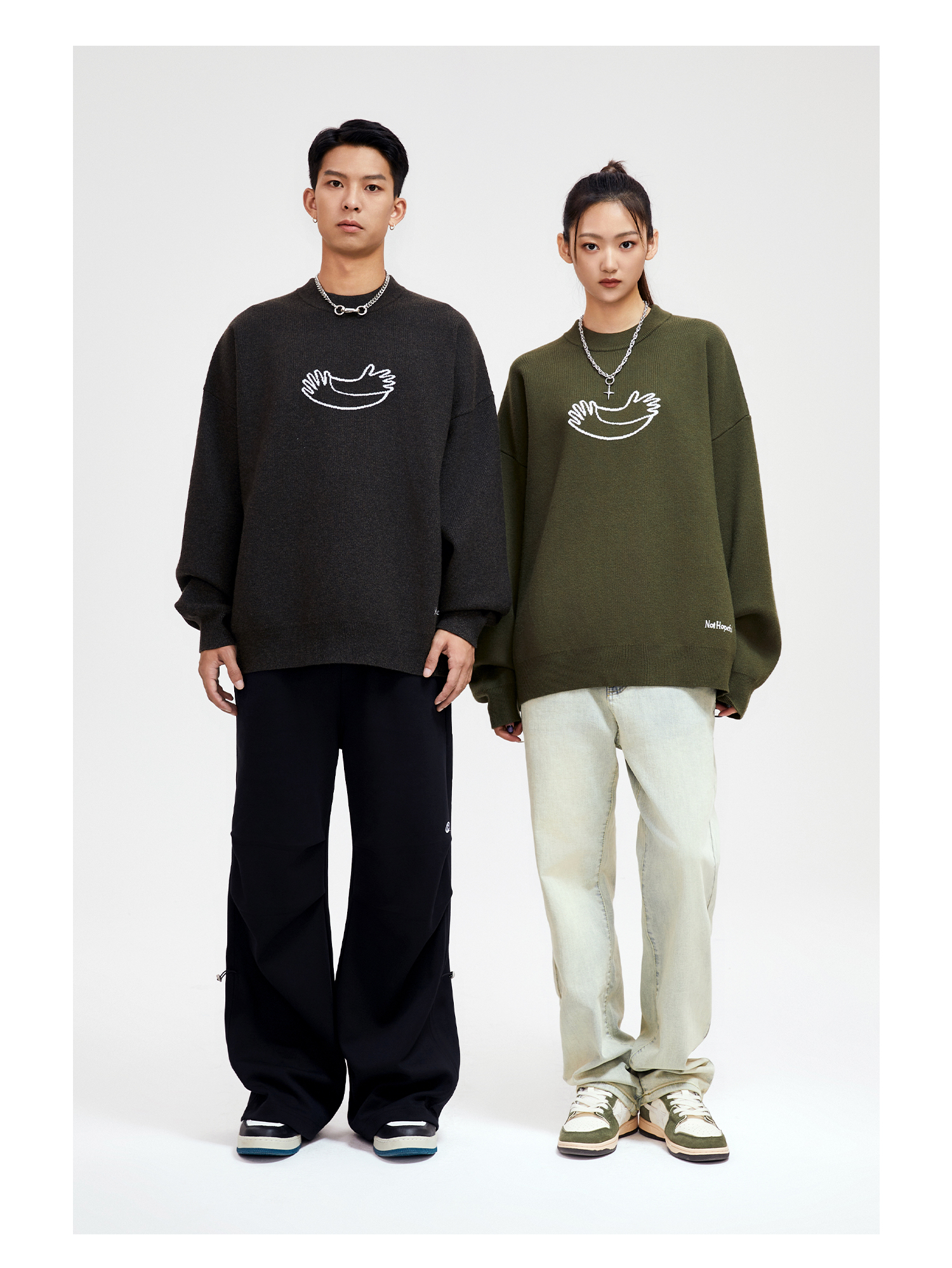 Trusl Studio Round-Neck Knit Sweater, Loose and Casual Pullover with a High-End Feel, Heavyweight, Couple Style