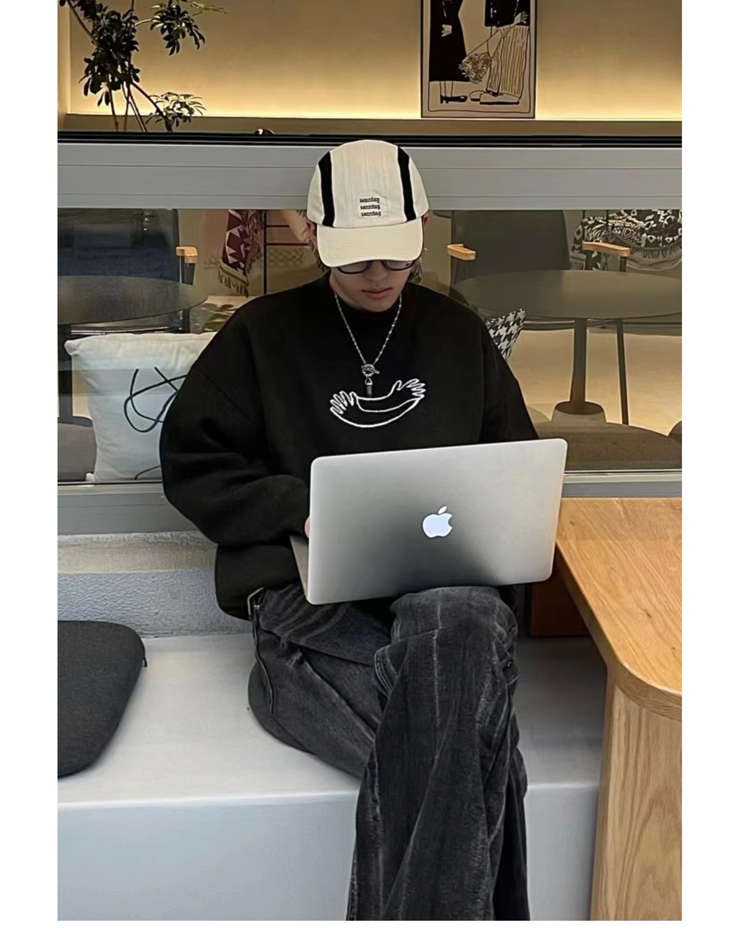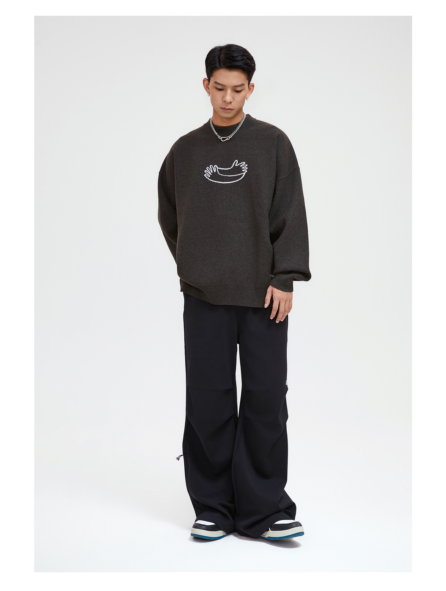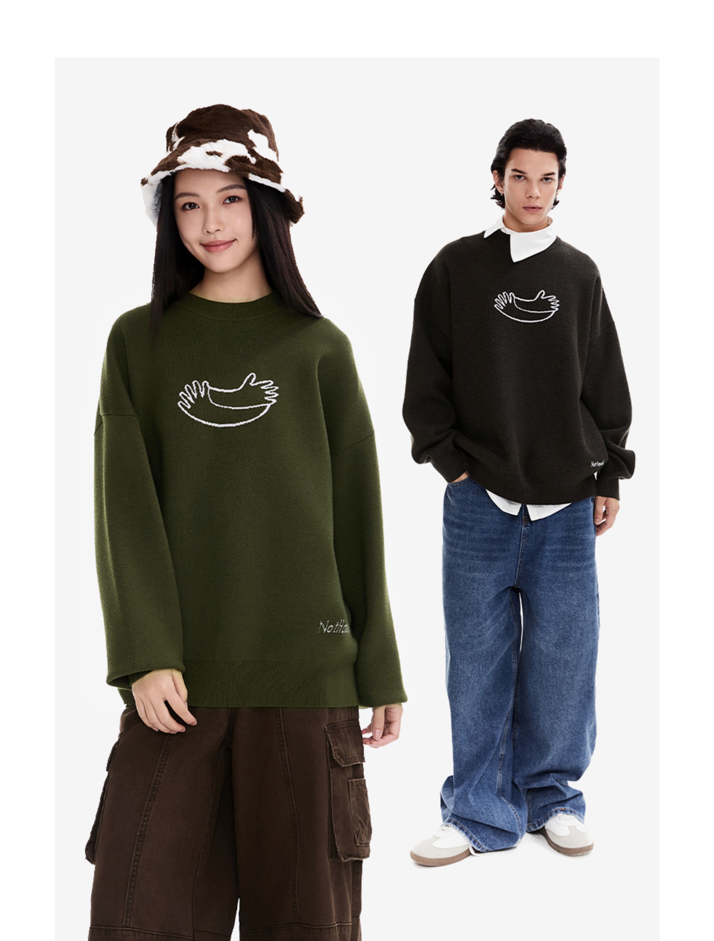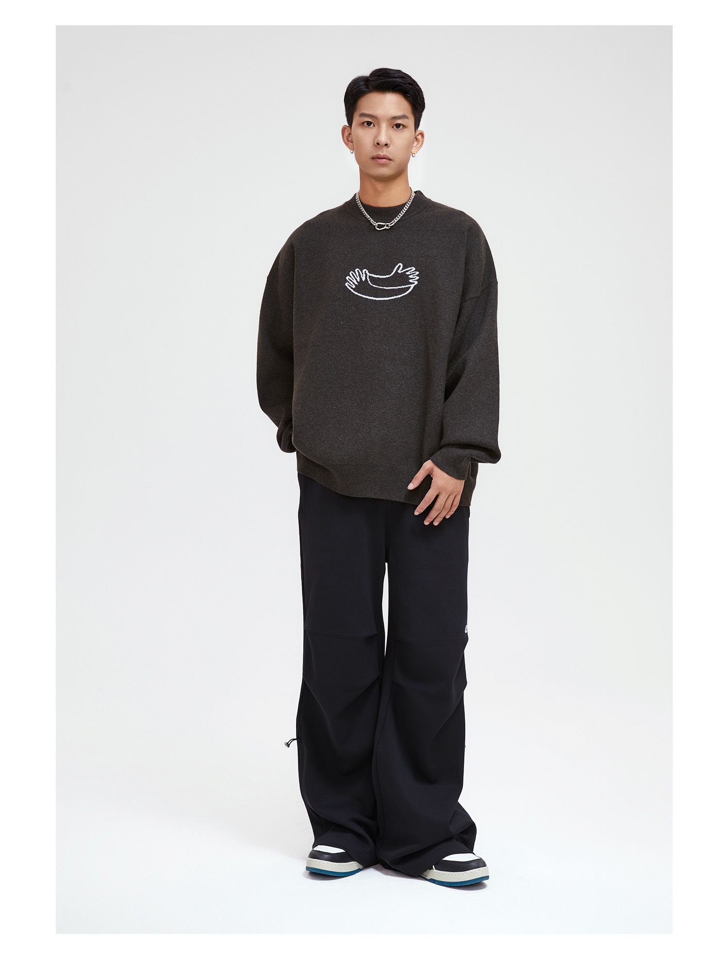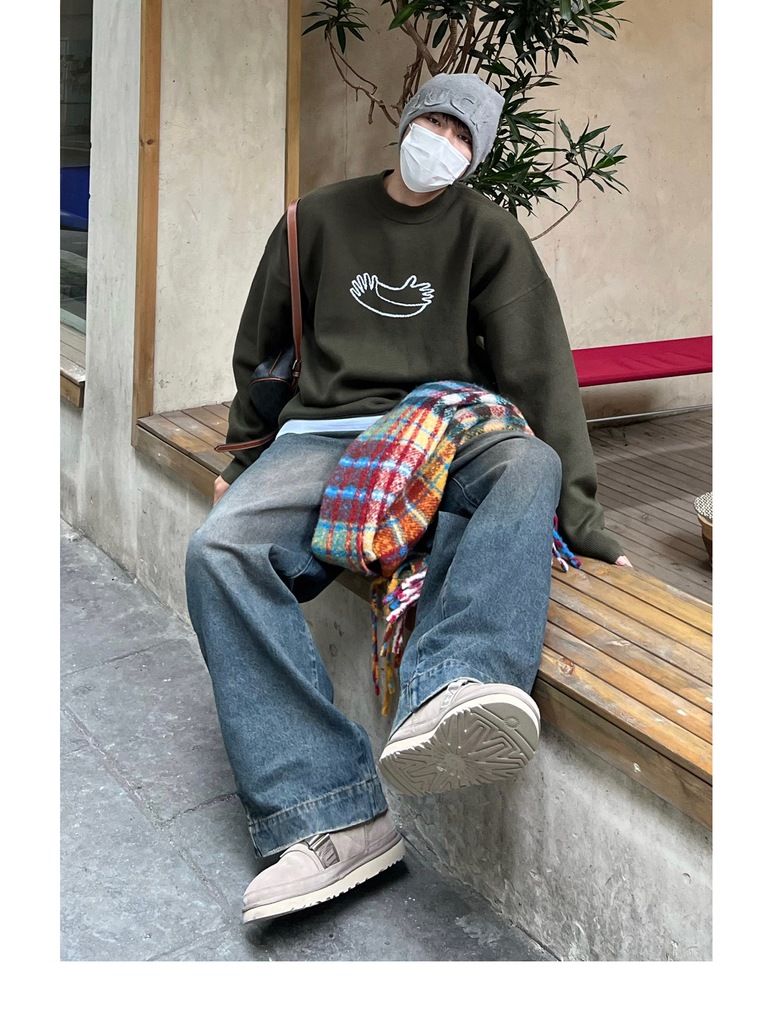 Trusl Studio Round-Neck Knit Sweater, Loose and Casual Pullover with a High-End Feel, Heavyweight, Couple Style