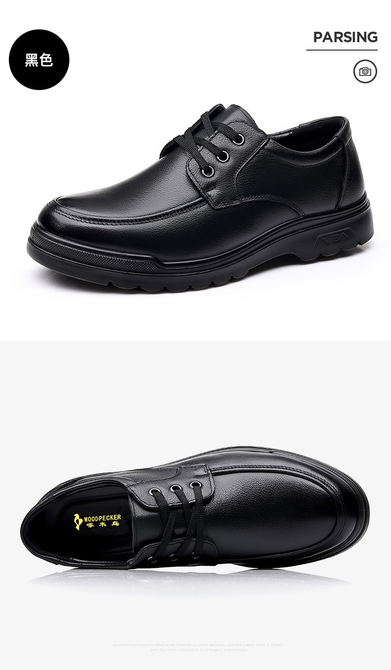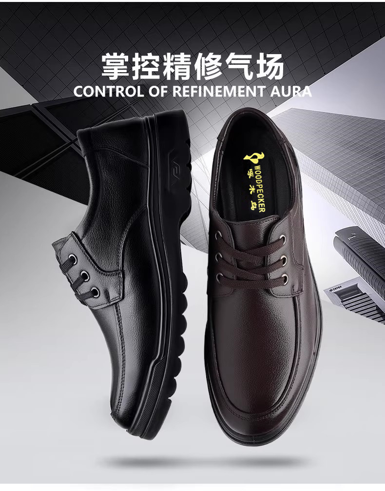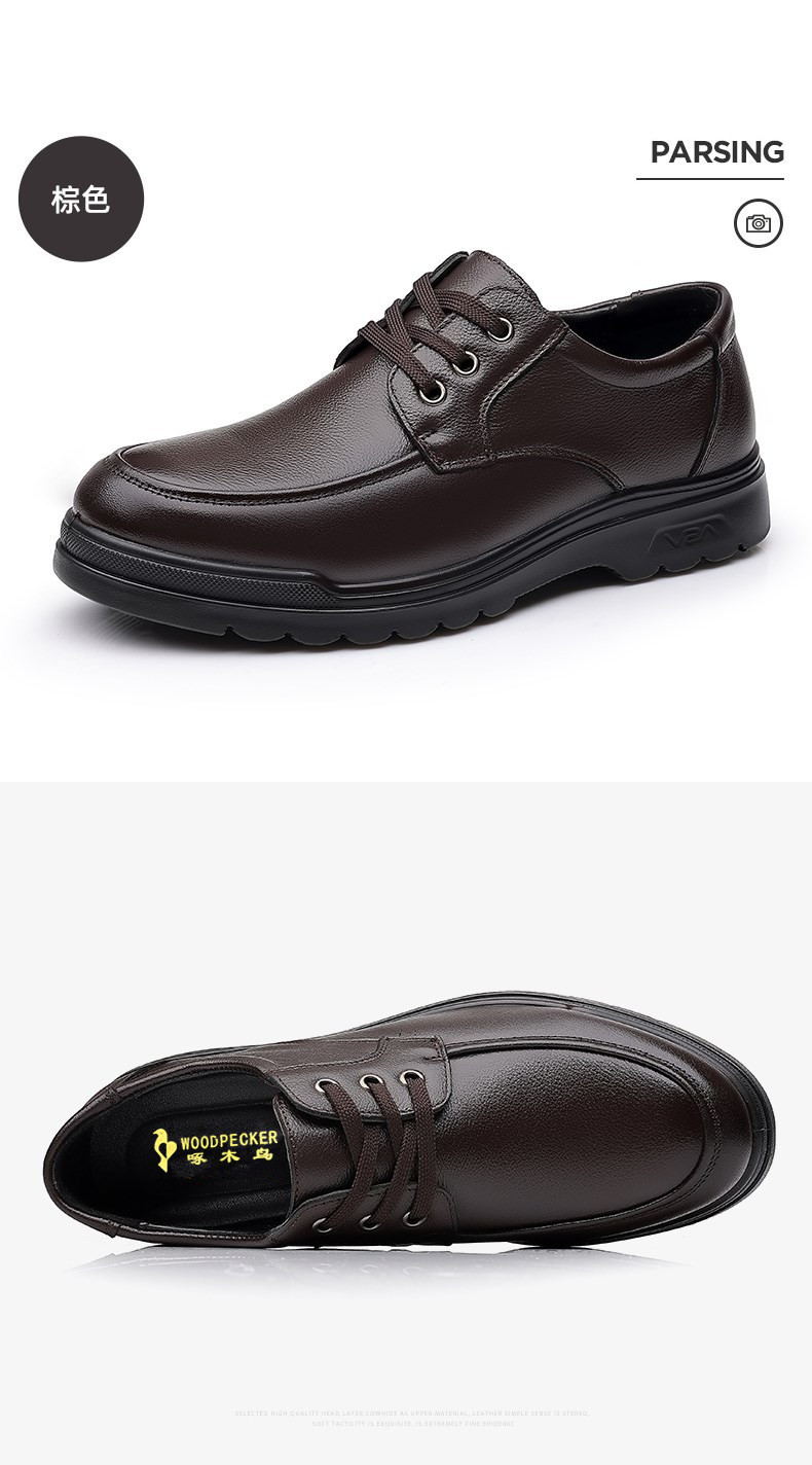 Woodpecker Men's Shoes, Autumn Fleece-Lined Leather Shoes, Men's Genuine Leather Soft-Soled Business Casual Shoes, Lightweight Non-Slip Dad Shoes