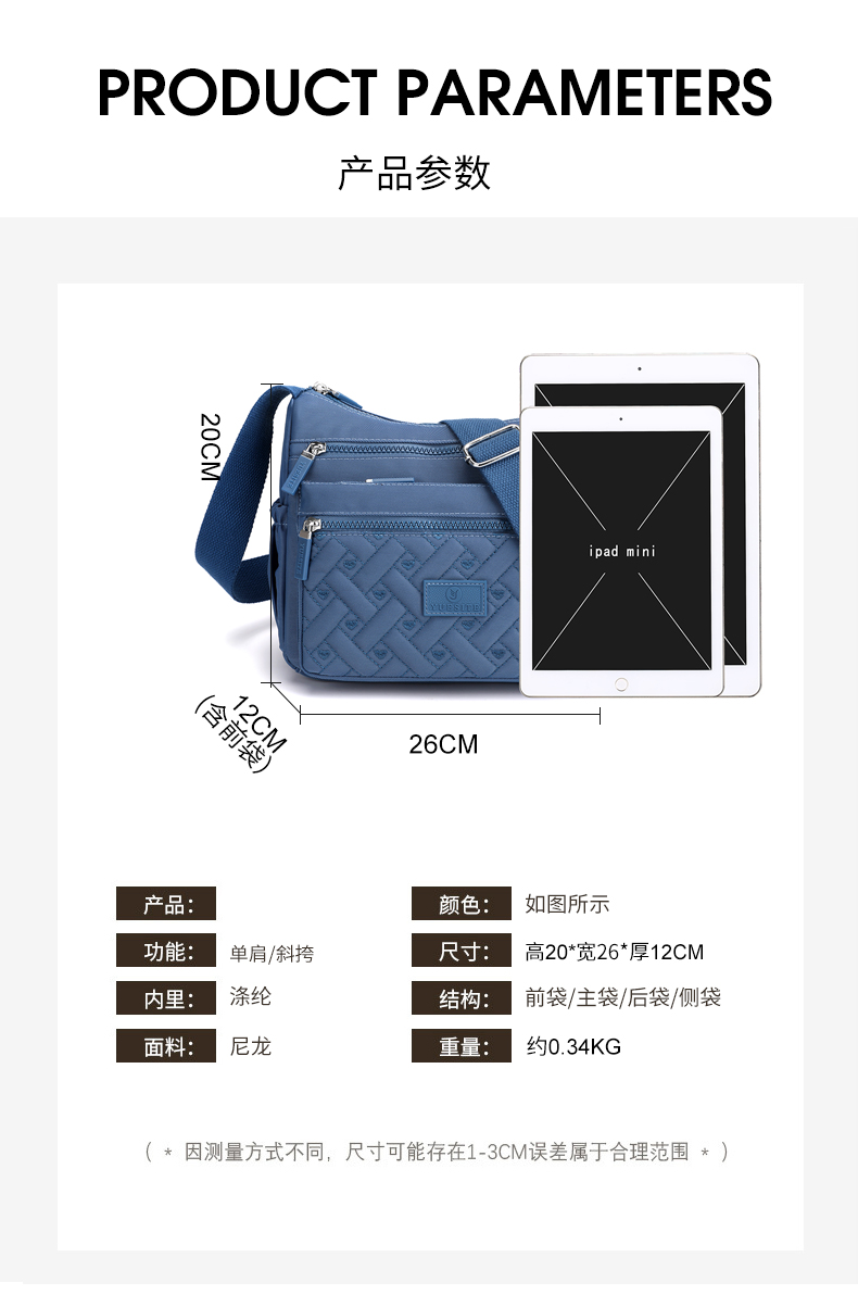 Single Shoulder Bag for Women, Waterproof Oxford Cloth, Versatile Multi-Layer Canvas for Middle-Aged Mothers and Grandmothers, 2025 Autumn New Crossbody Bag